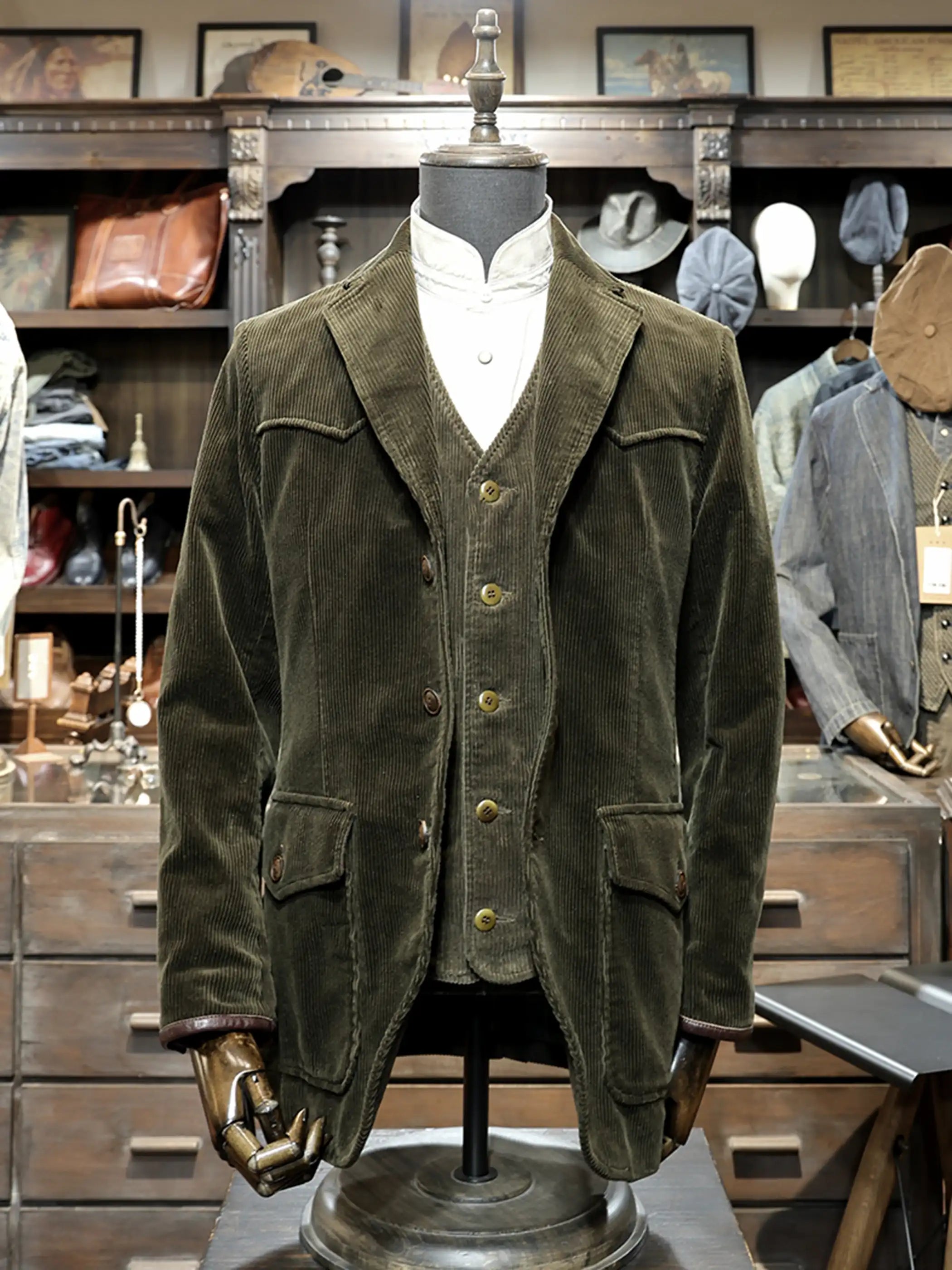 これ一着で、460gのヘビーコーデュロイとレトロな硫化染カラーが織りなす、存在感あふれるミドル丈ジャケットを楽しめます。