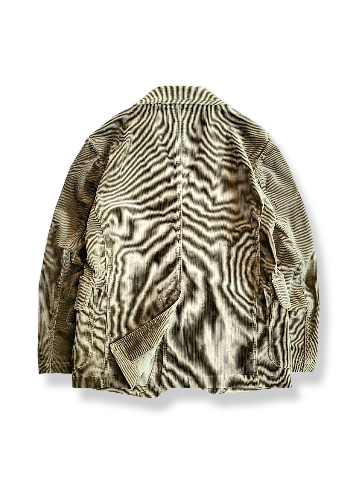 このコーデュロイスーツは、濃色のジーンズやレザーブーツと組み合わせることで、カジュアルながら洗練されたスタイルを演出できます。白やライトカラーのシャツと合わせれば、クリーンで洗練されたビジネスカジュアルなルックが完成します。