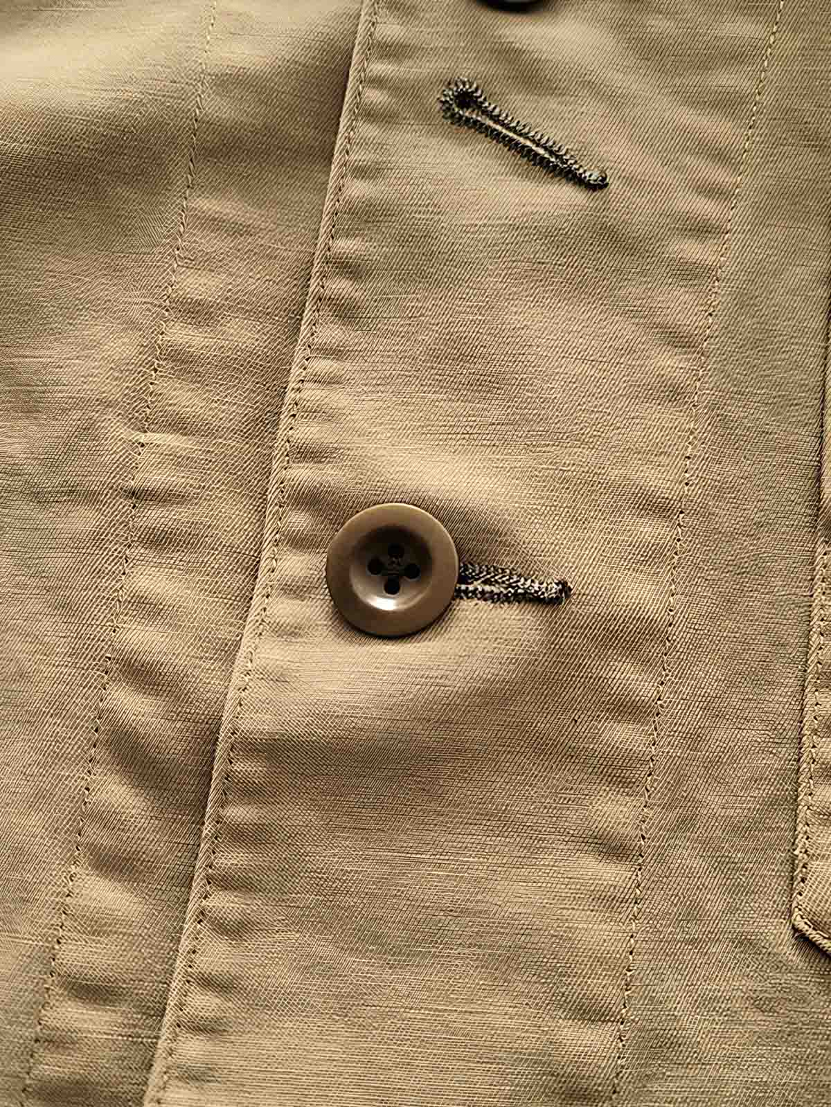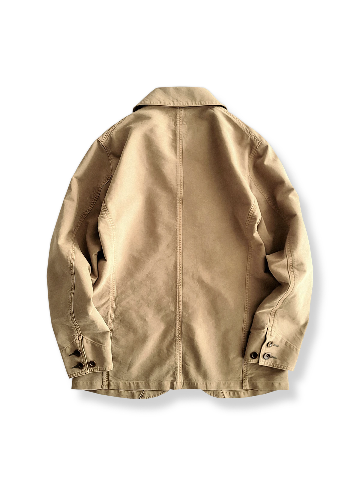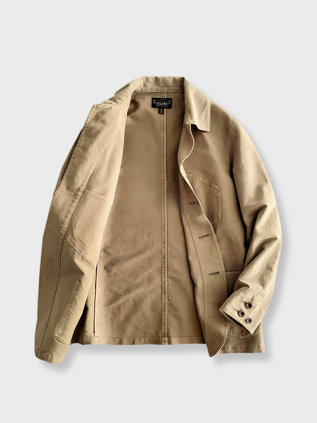 サファリジャケットの実用的なデザインをベースに、現代のファッションに合わせて再解釈されたアイテムです。探検や狩猟で用いられる機能的なポケットを備え、アクティブな印象を与えます。