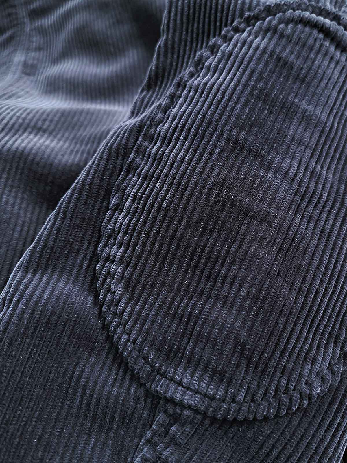 選ばれたコーデュロイ素材は、優れた保温性を持つだけでなく、立体的なストライプ効果が衣服の質感を高めます。シンプルなシングルブレストデザインと、精巧なポケットのディテールは、クラシックなメンズウェアへの敬意と、現代的なファッションの融合を示しています。
