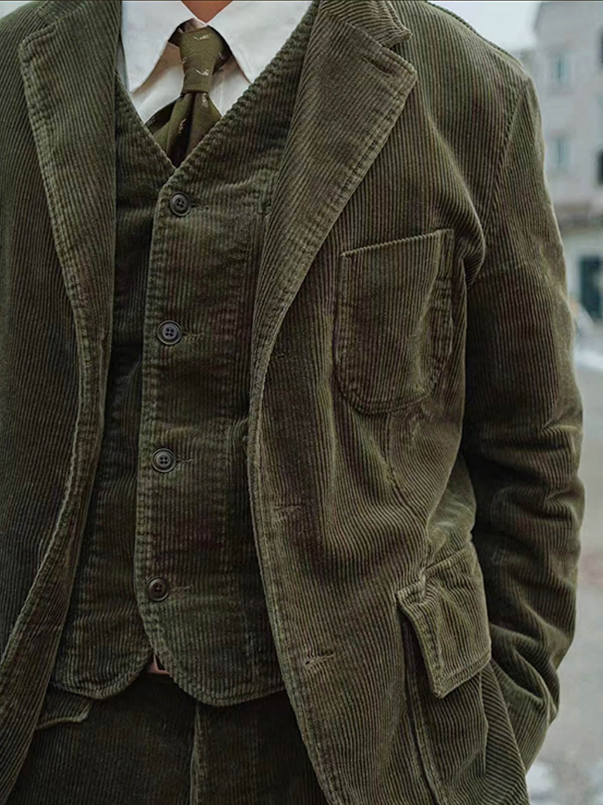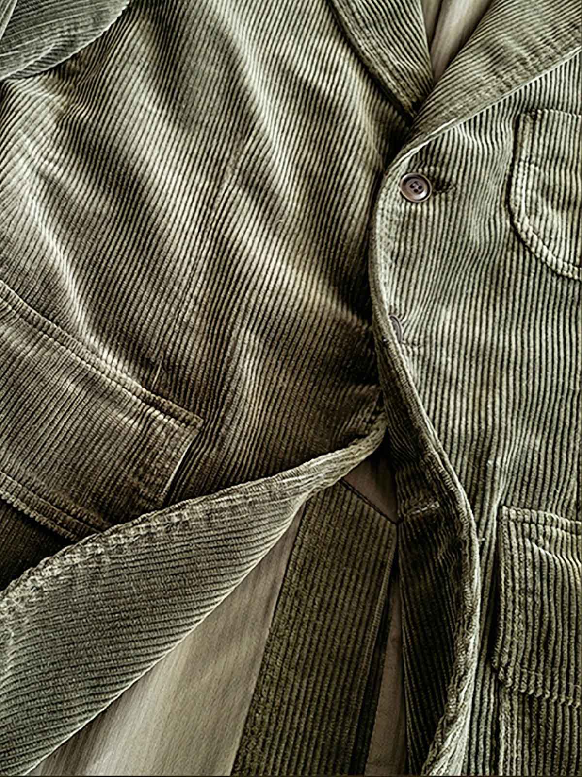 こちらは全綿素材のコーデュロイを使用した、アメリカンヴィンテージスタイルのカジュアルなスーツジャケットです。デザインは古典的でありながら、カジュアルな雰囲気を演出し、現代のファッショントレンドにもしっかりと根ざしています。
