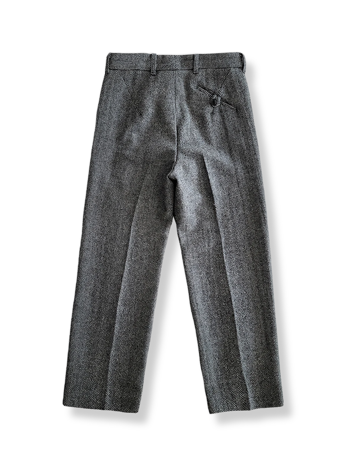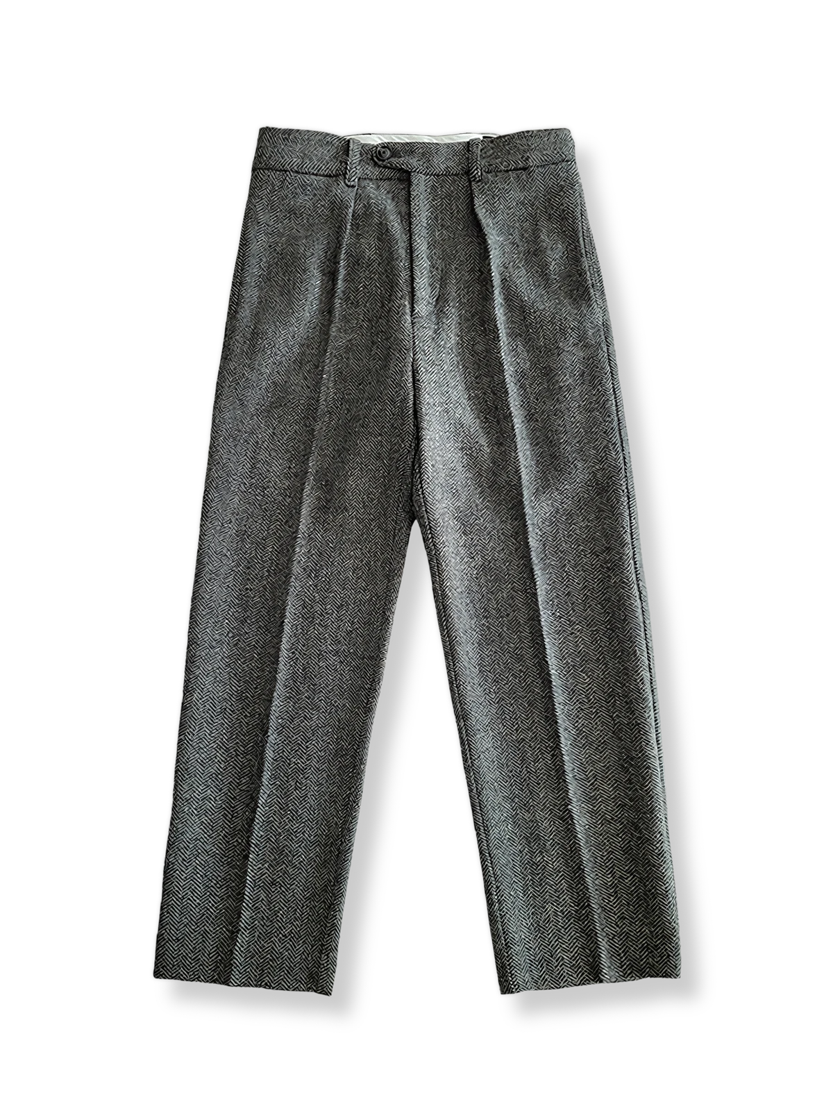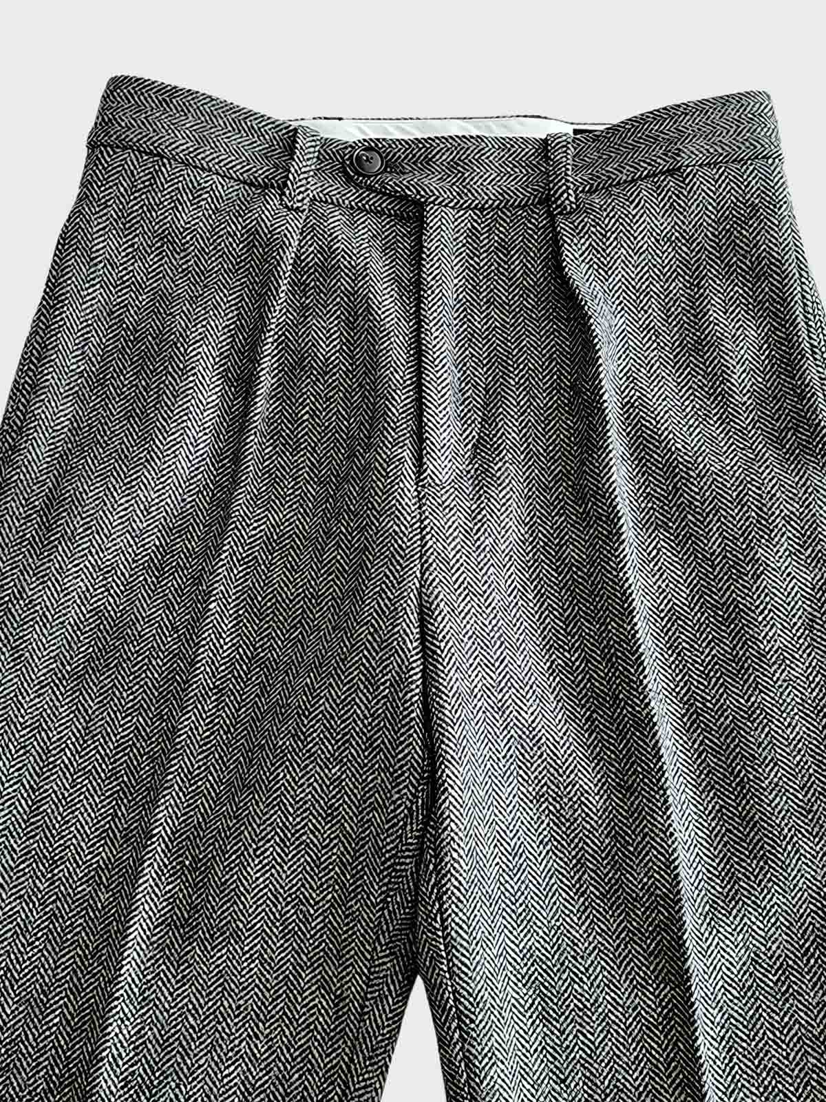 これらのスラックスは、英国の伝統的なヘリンボーン柄を特徴としています。元々は漁師や労働者の間で愛された耐久性のある生地で、今日では洗練されたビンテージスタイルを象徴するデザインです。