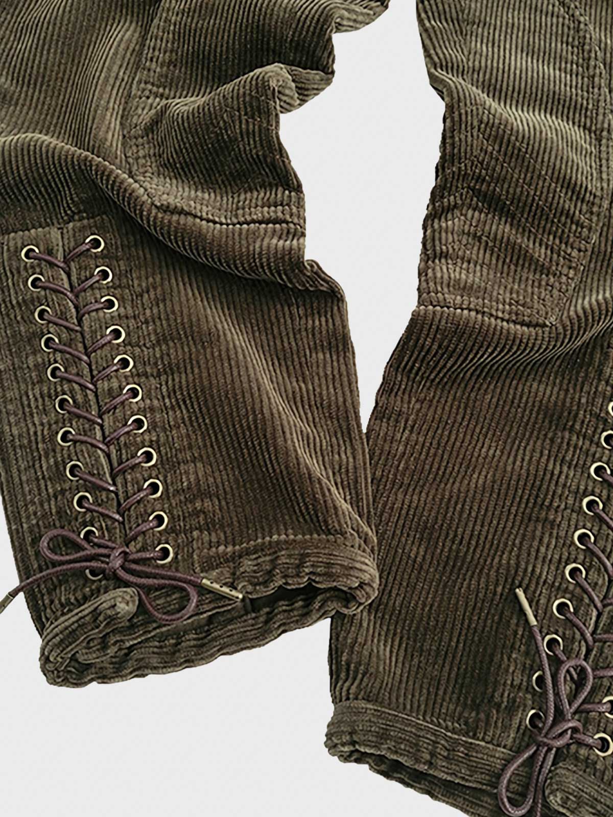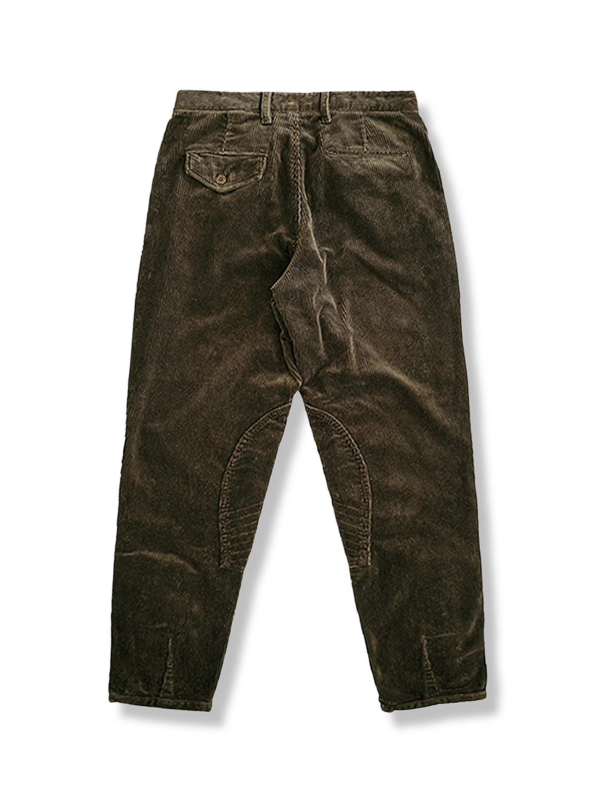 このコーデュロイジョッパーズは、高品質なコットン素材を使用し、アメリカンヴィンテージデザインと現代の工芸を融合させた一品です。独特なストライプ模様と柔らかい質感が特徴です。両サイドのストラップデザインは、ライダースタイルを強調し、調整可能で快適な着心地を提供します。膝部分の強化デザインにより、耐久性が向上し、ライディングやアウトドア活動に最適です。このジョッパーズのデザインは、クラシックなアメリカのライダースウェアにインスパイアされており、ディテールにこだわった独自のデザインで濃厚なヴィンテージ感を表現しています。ブーツやカジュアルなトップスと合わせることで、独自のスタイルを演出します。