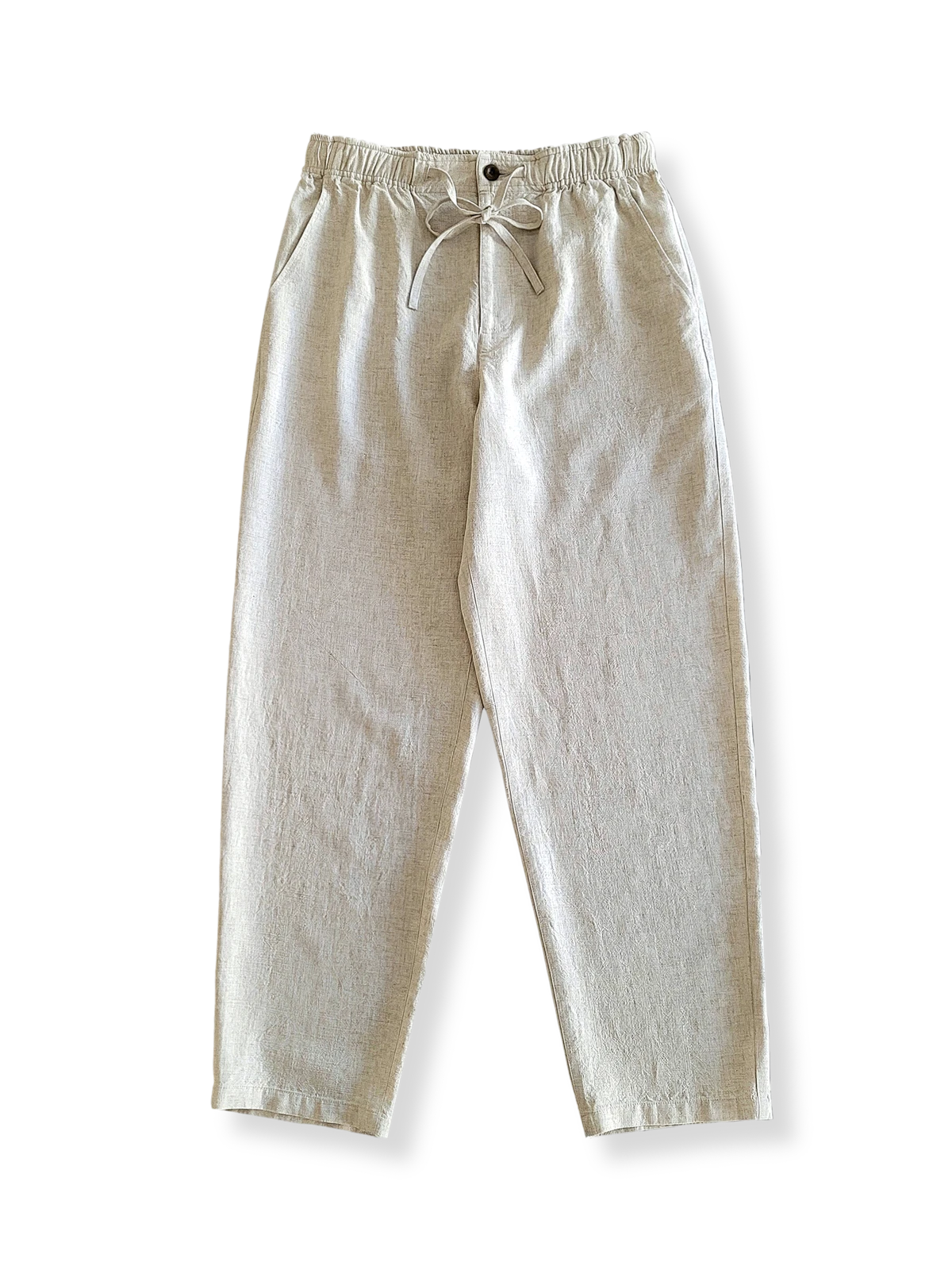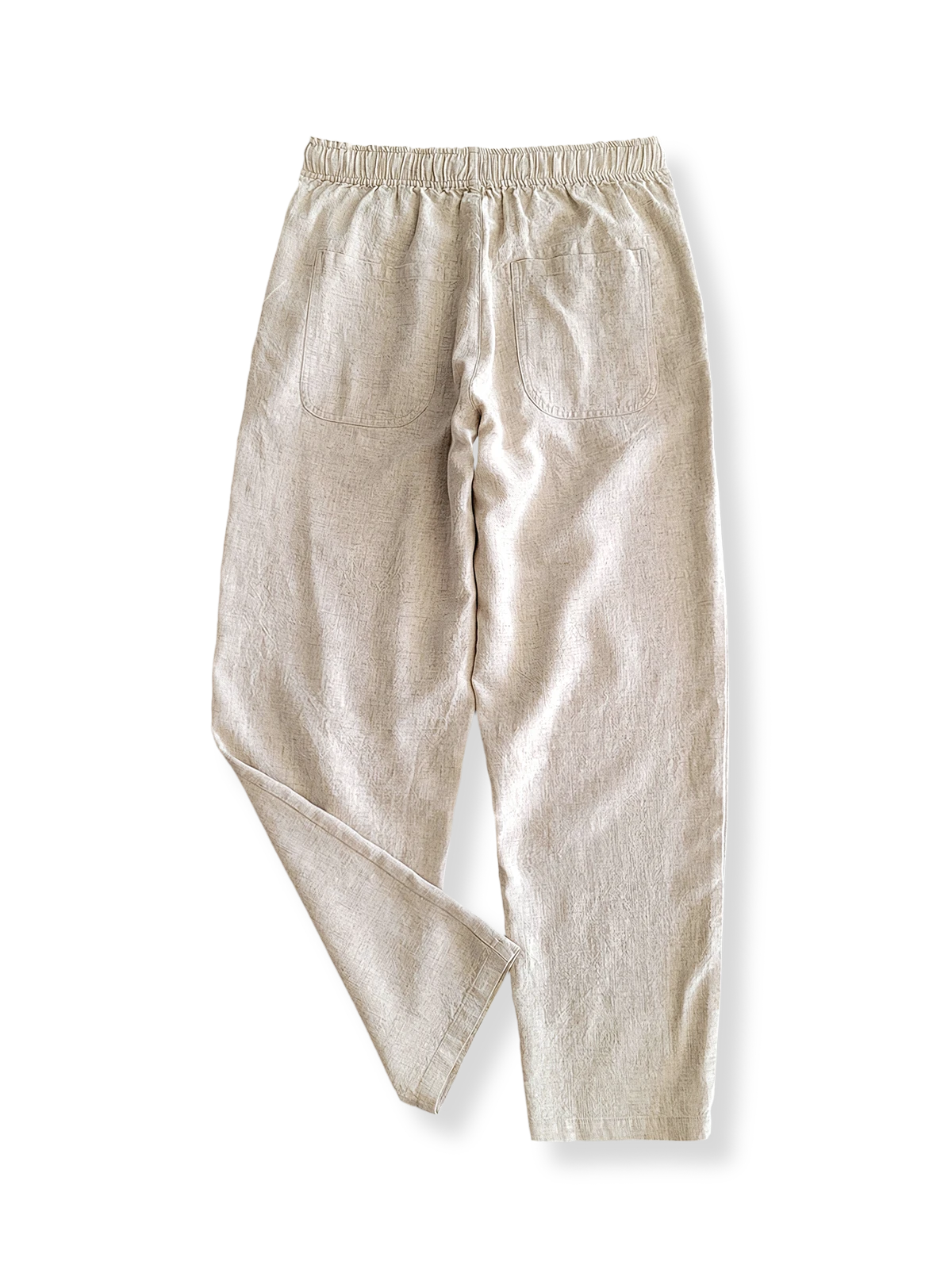 軽くて通気性の良いテンセルリネン素材で作られた、夏にぴったりのゆったりフィットパンツ。