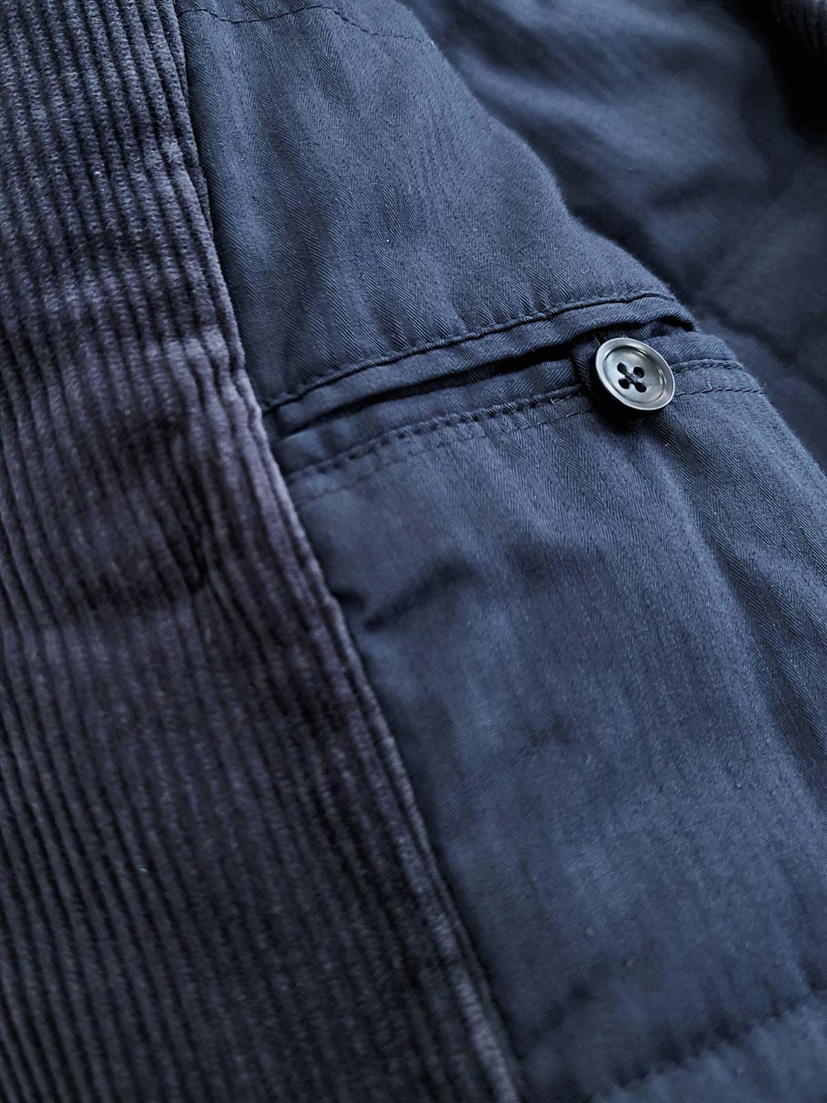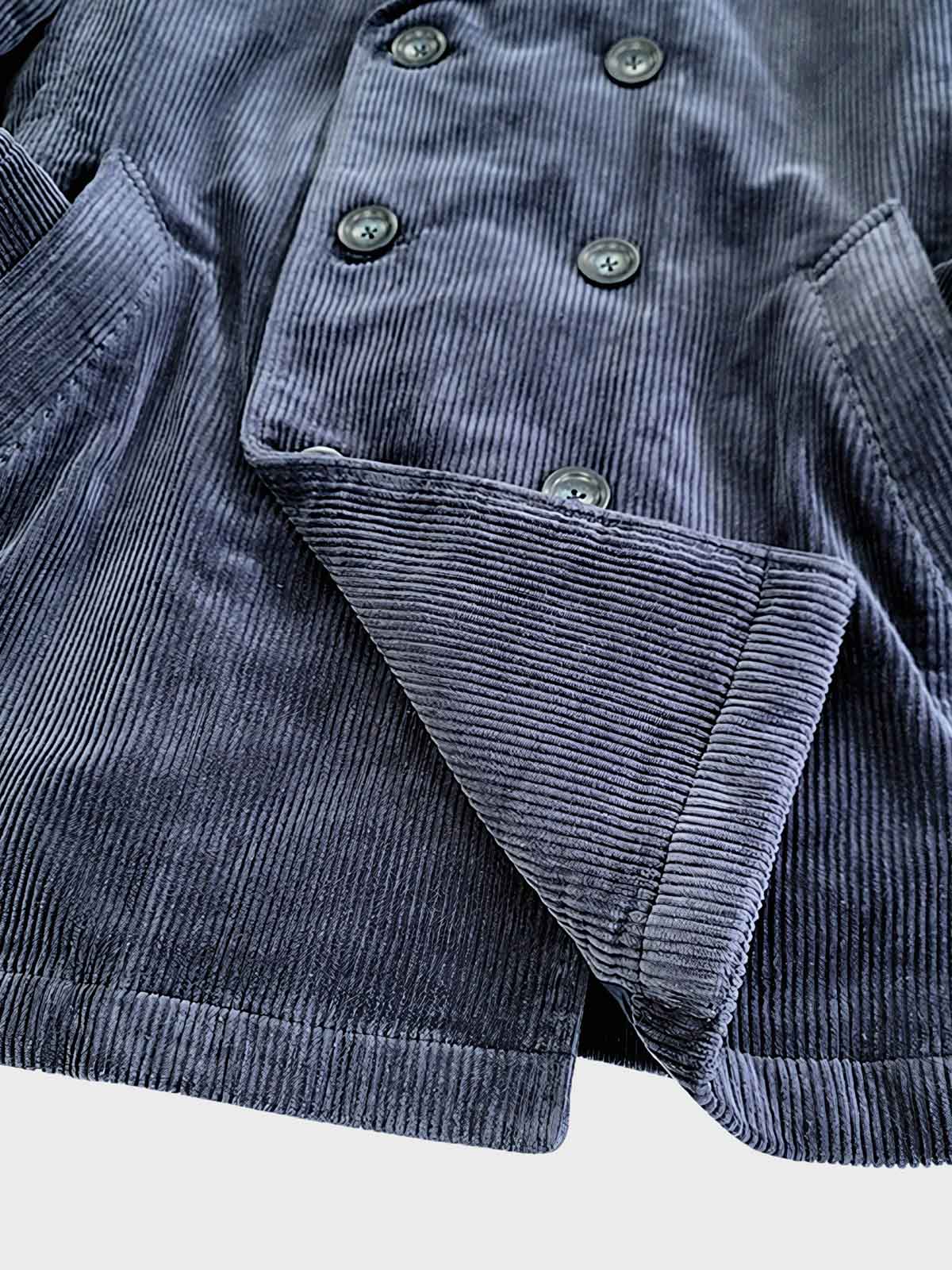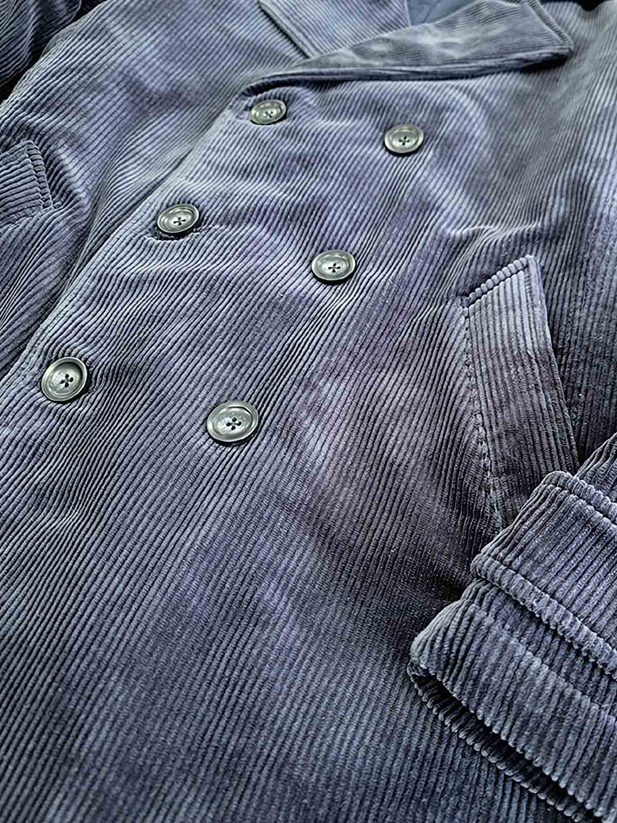 素材は高品質の綿100%コーデュロイを使用。耐久性があり、細かな織り目がコートに豊かなディテールと快適な触感を加えています。
