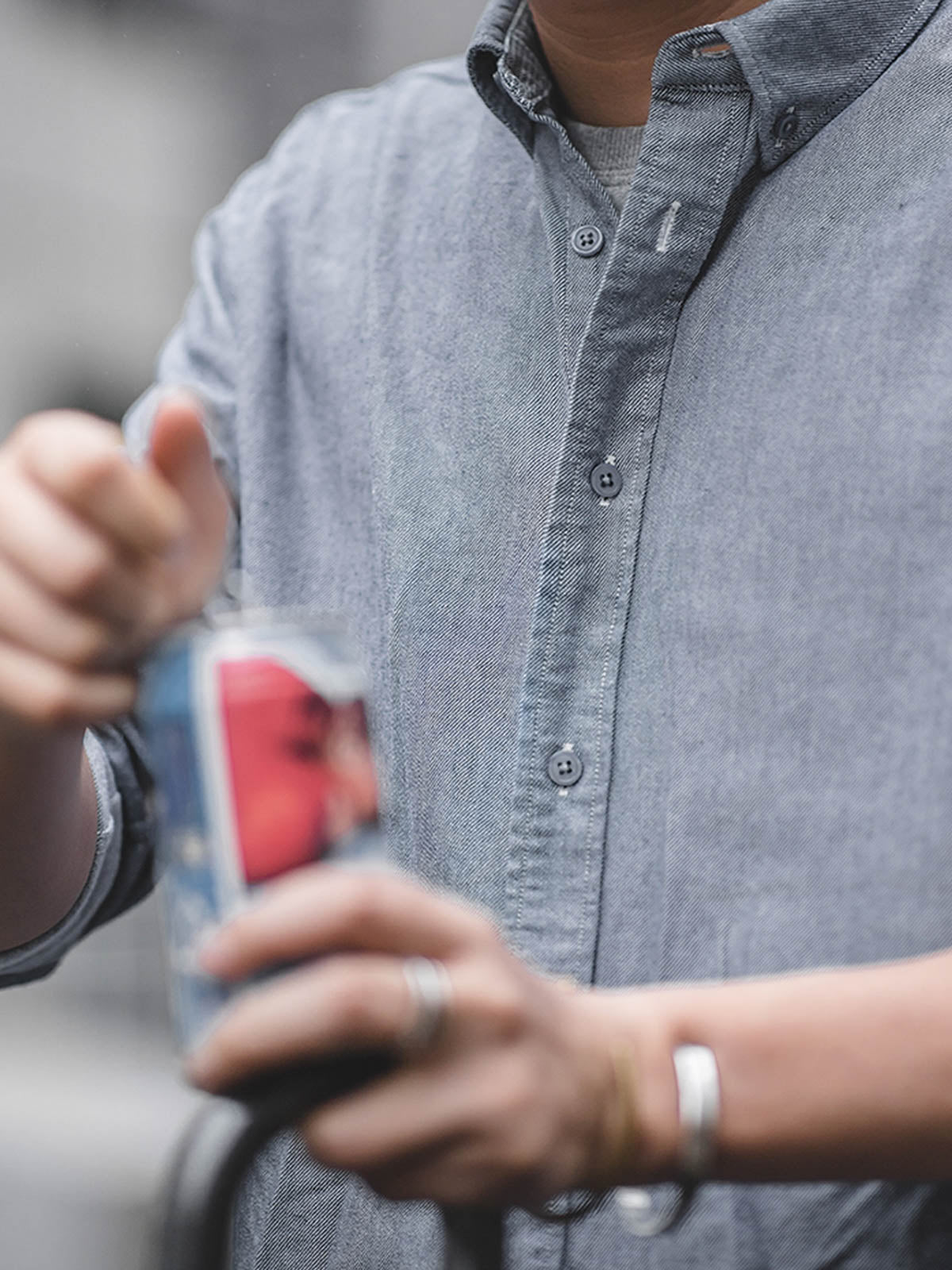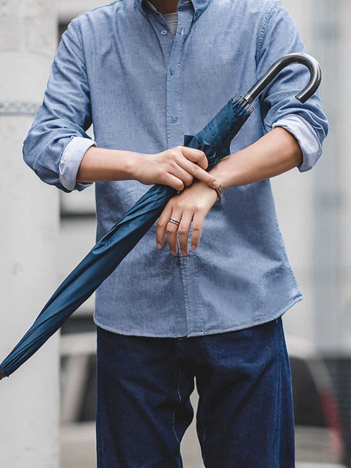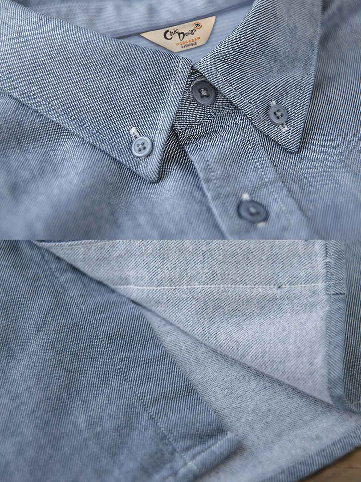 オックスフォード生地を使用しており、この生地は耐久性が高く、通気性に優れています。起毛加工により、生地にさらに繊細な肌触りが加わりました。シャツのボタンやステッチは細心の注意を払って設計されており、耐久性と美しさを保証しています。