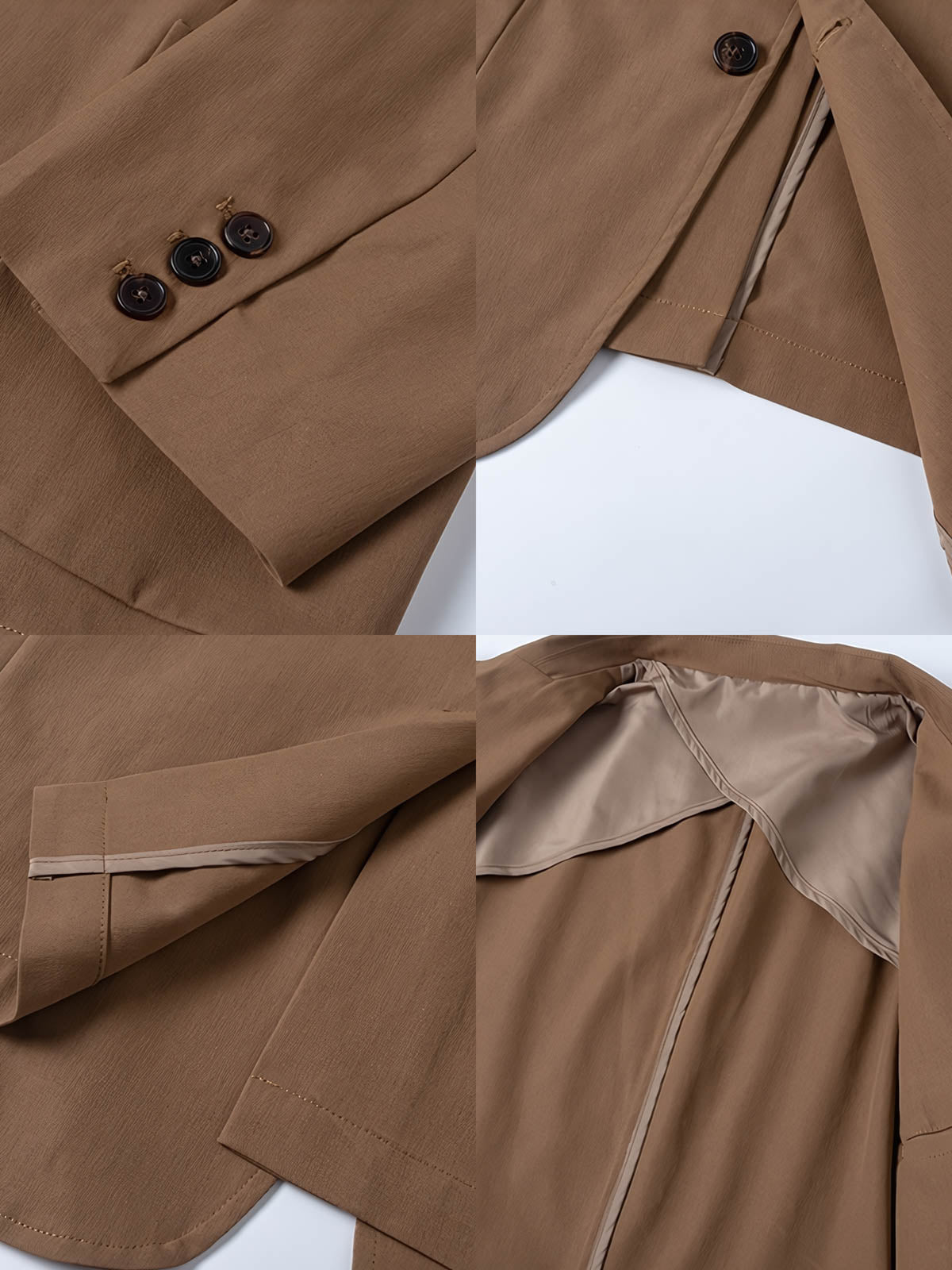 上質なポリエステル素材を使用しており、柔らかい手触りだけでなく、耐久性にも優れ、洗濯やお手入れが簡単です。精巧なダブルブレストデザインと実用的なポケットの配置は、ワークウェアの機能性を加えると同時に、熟練した製造技術を示しています。