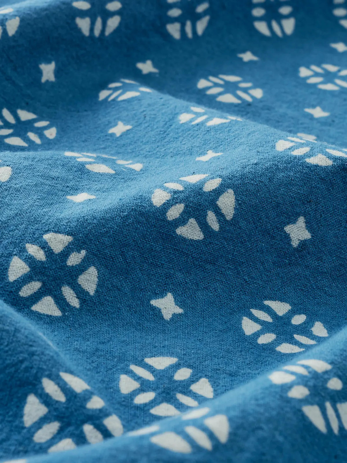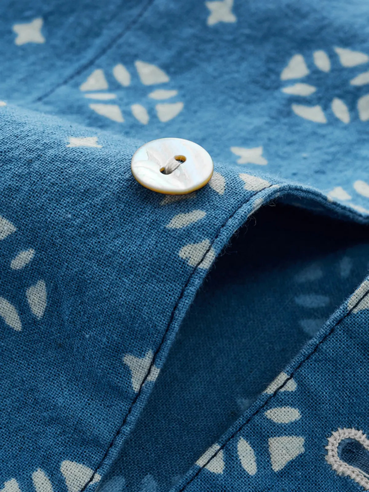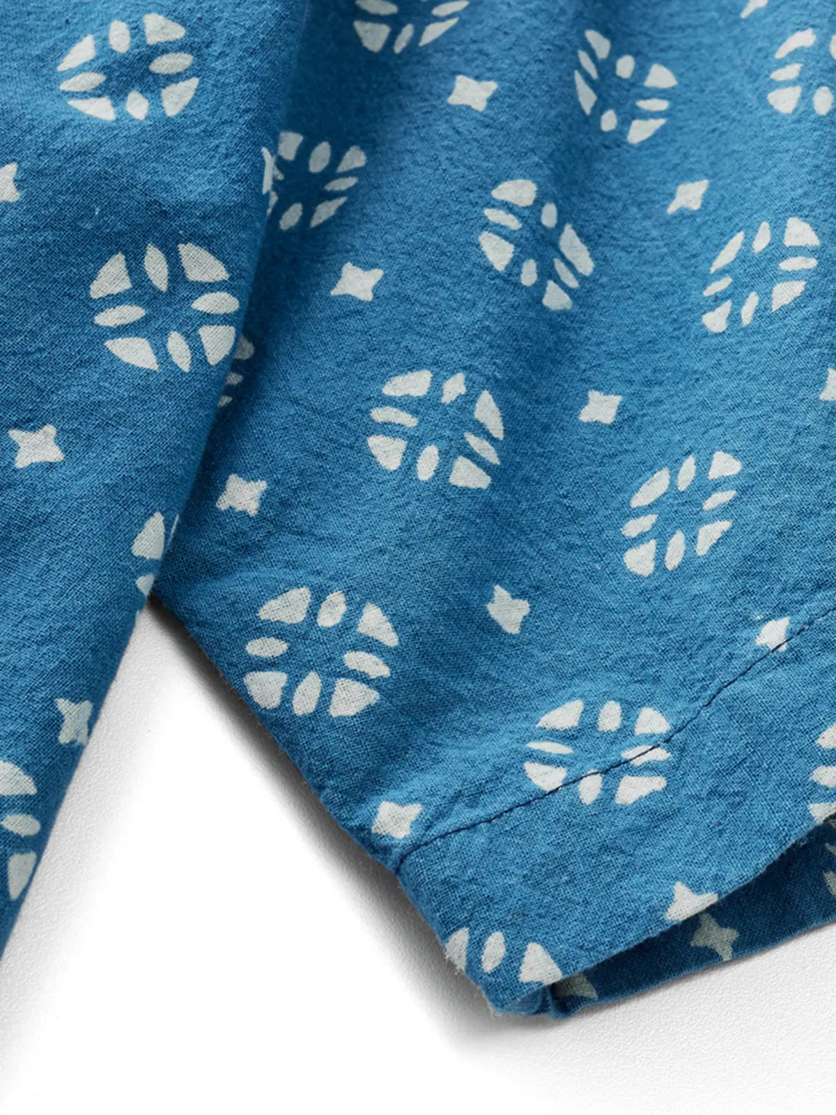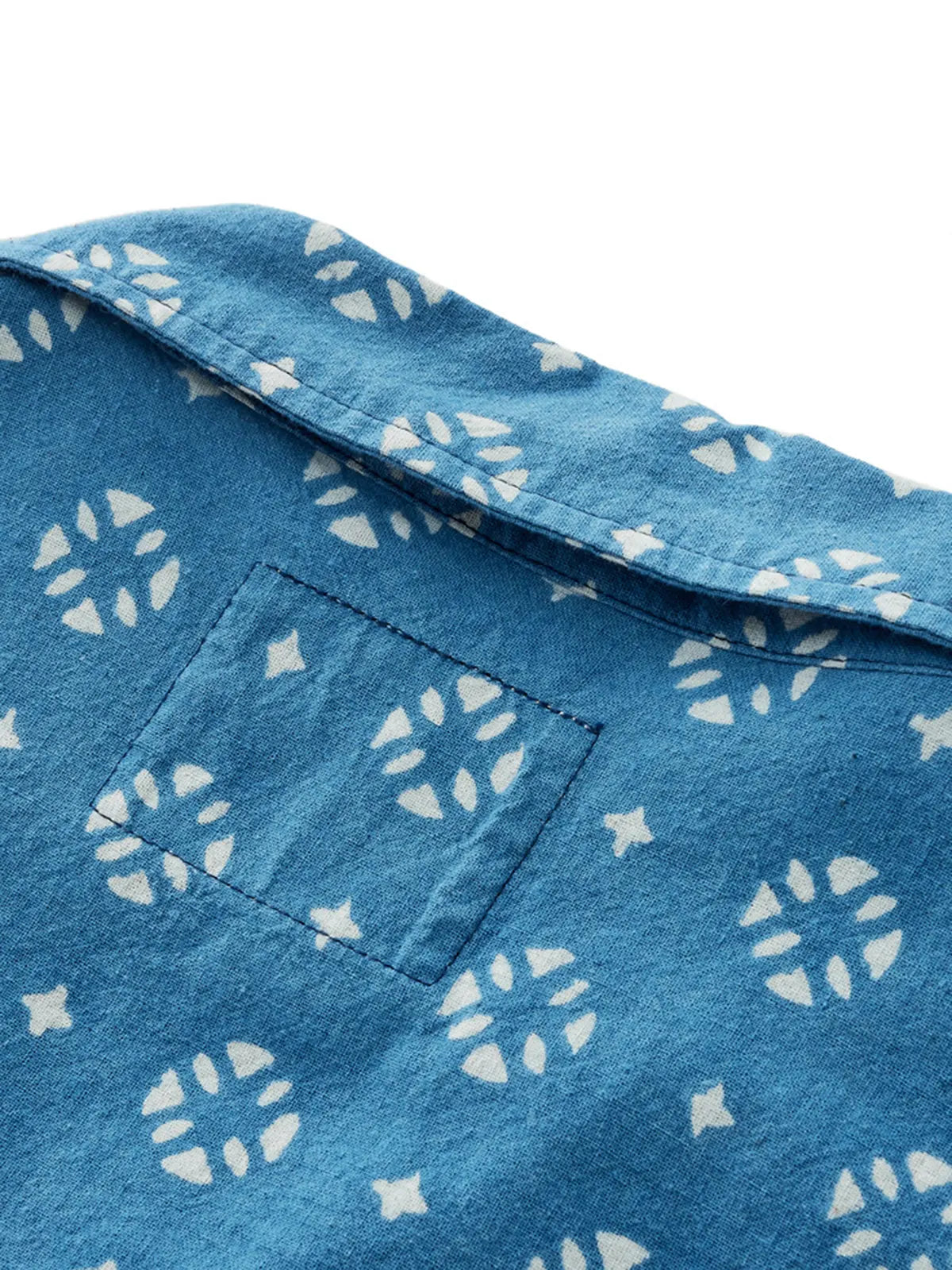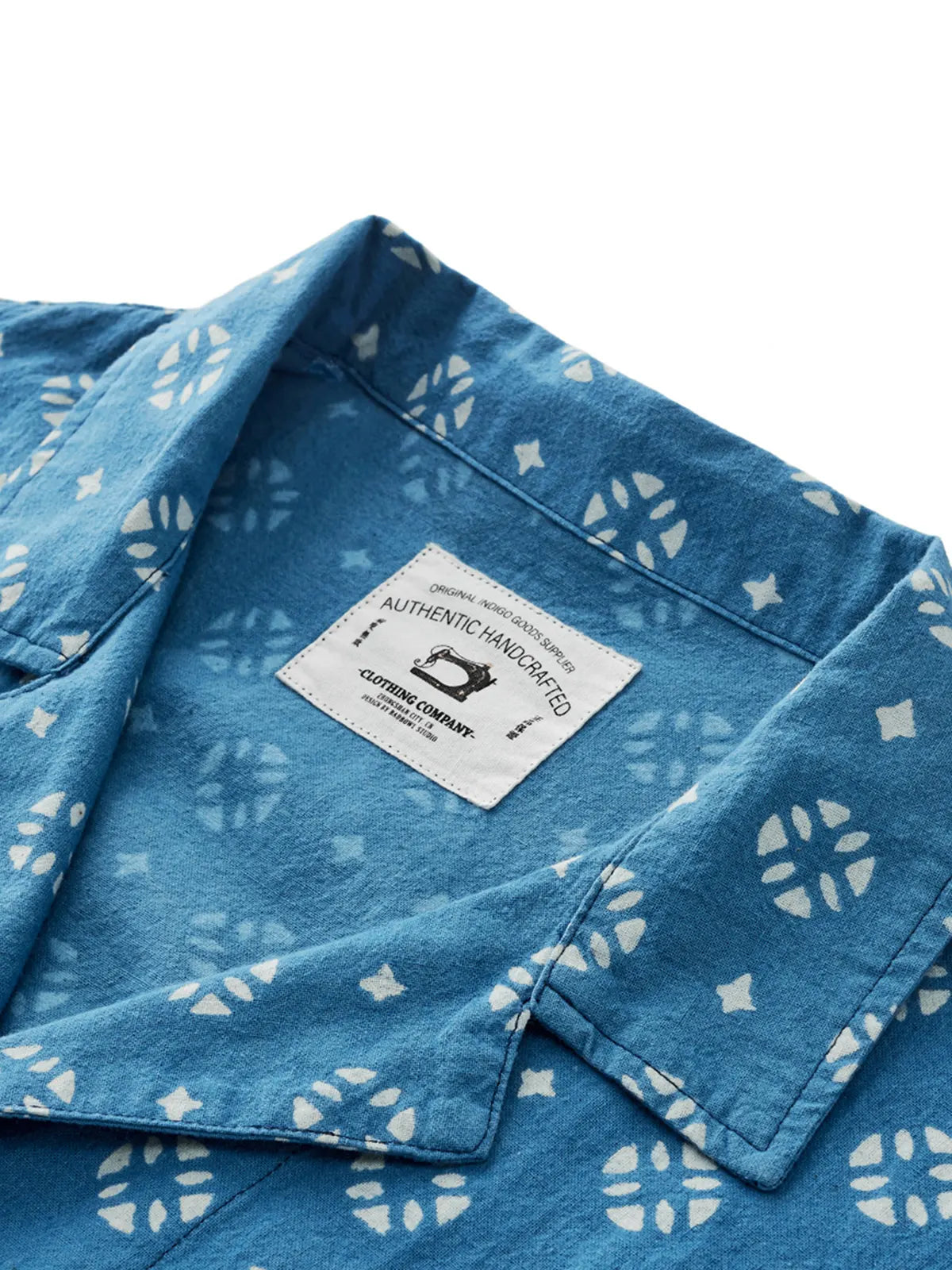 伝統的な植物藍染と手彫り防染で生まれる氷裂文様が美しい210gの薄手コットンキューバシャツ。