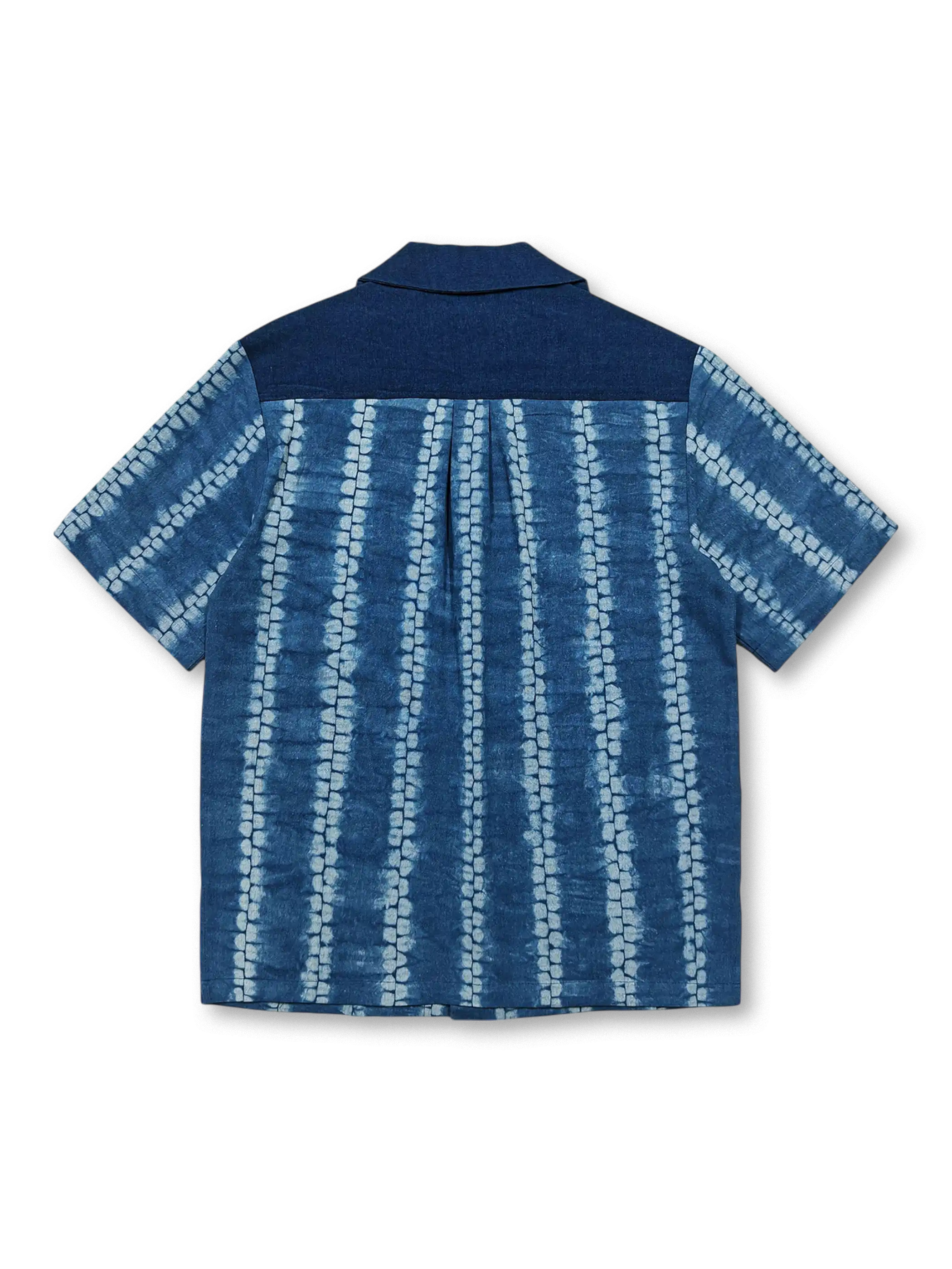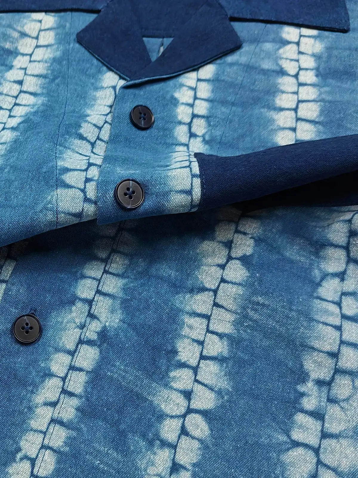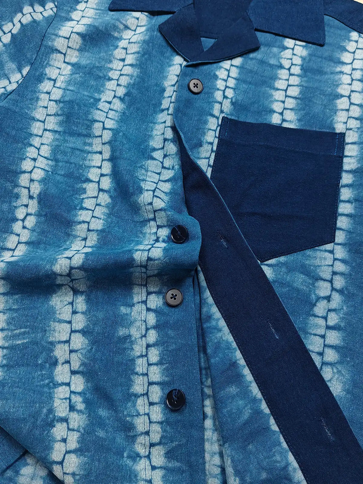 植物藍染のタイダイストライプが醸すエキゾチックな雰囲気を纏う薄手コットンキューバ襟シャツ。