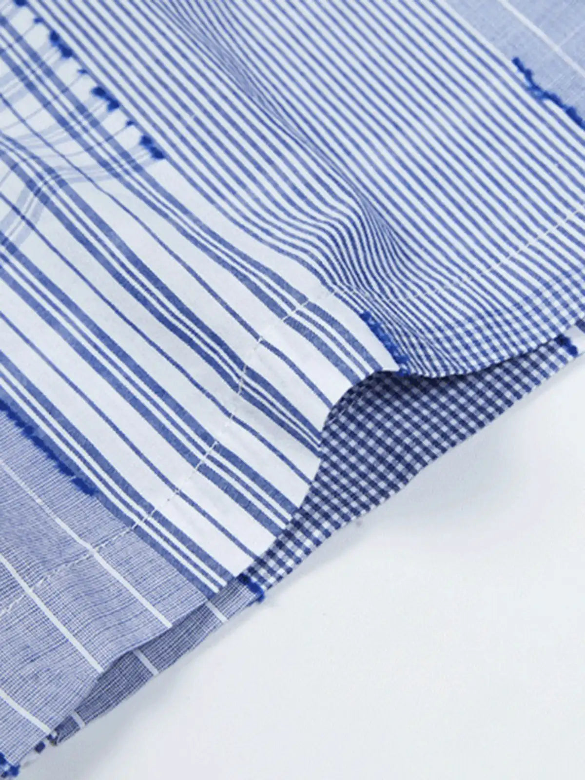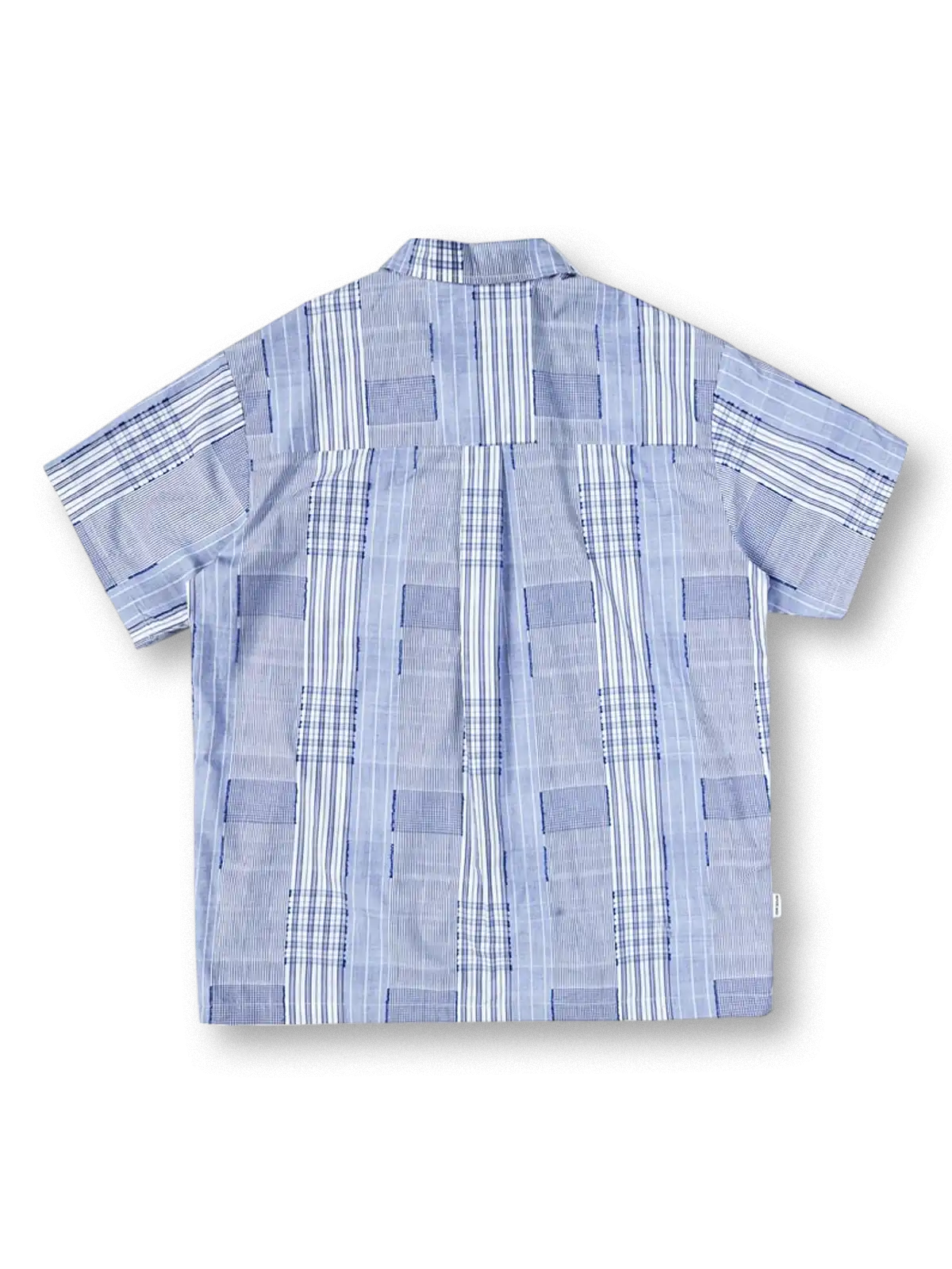 複数のチェック柄をパッチワークで組み合わせた、ゆったりボックスシルエットの夏向けキューバカラーシャツ。