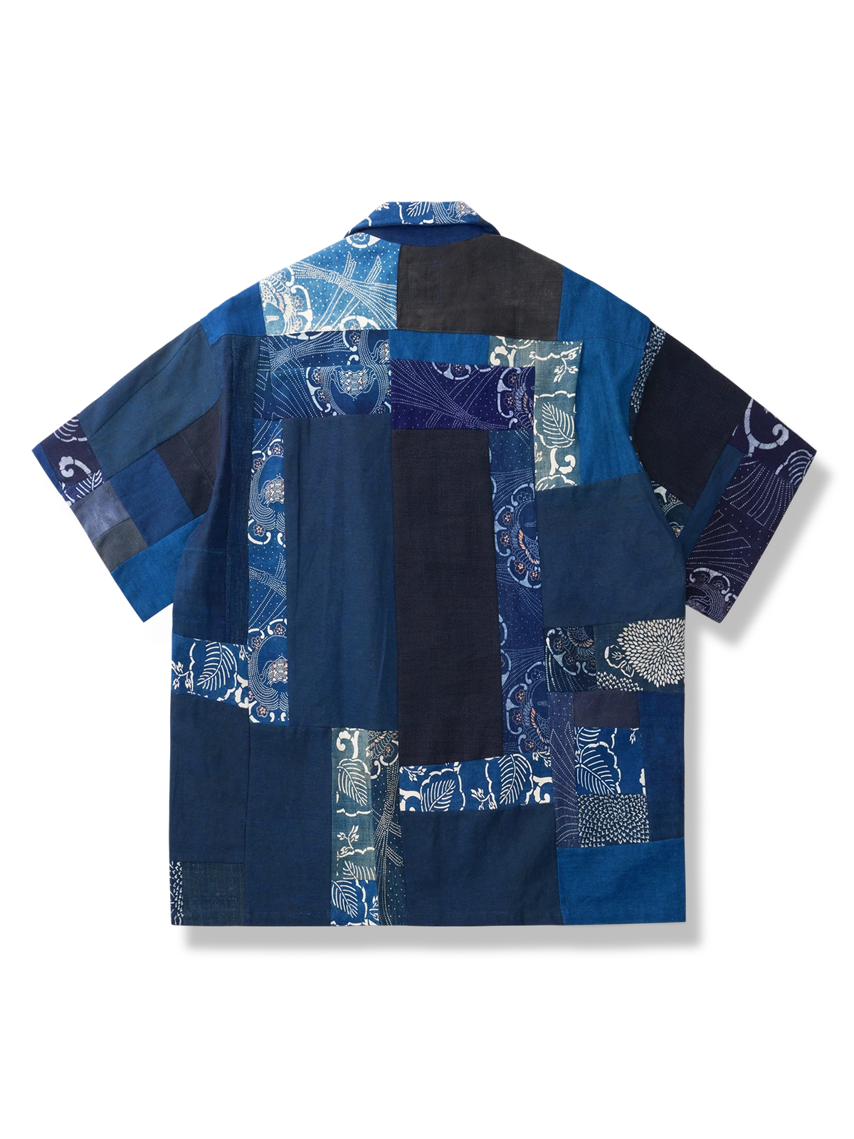 このシャツは、アンティーク手作り布地を使用し、各衣服がランダムにパッチワークされており、ファッション性と個性にあふれています。