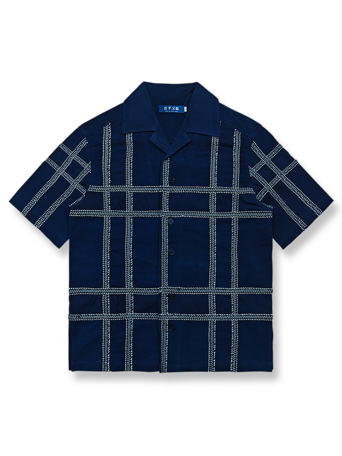 このシャツは、伝統的な植物由来の藍染め技術とチェック柄のジャカード織りが融合されたデザインを採用しています。藍染めはその鮮やかな色彩と環境に優しい特性で知られ、ジャカード織りは現代的な解釈を加えています。キューバカラーのデザインは1950年代のアメリカンカジュアルスタイルにインスパイアされ、リラックスしたレトロ感を加えています。