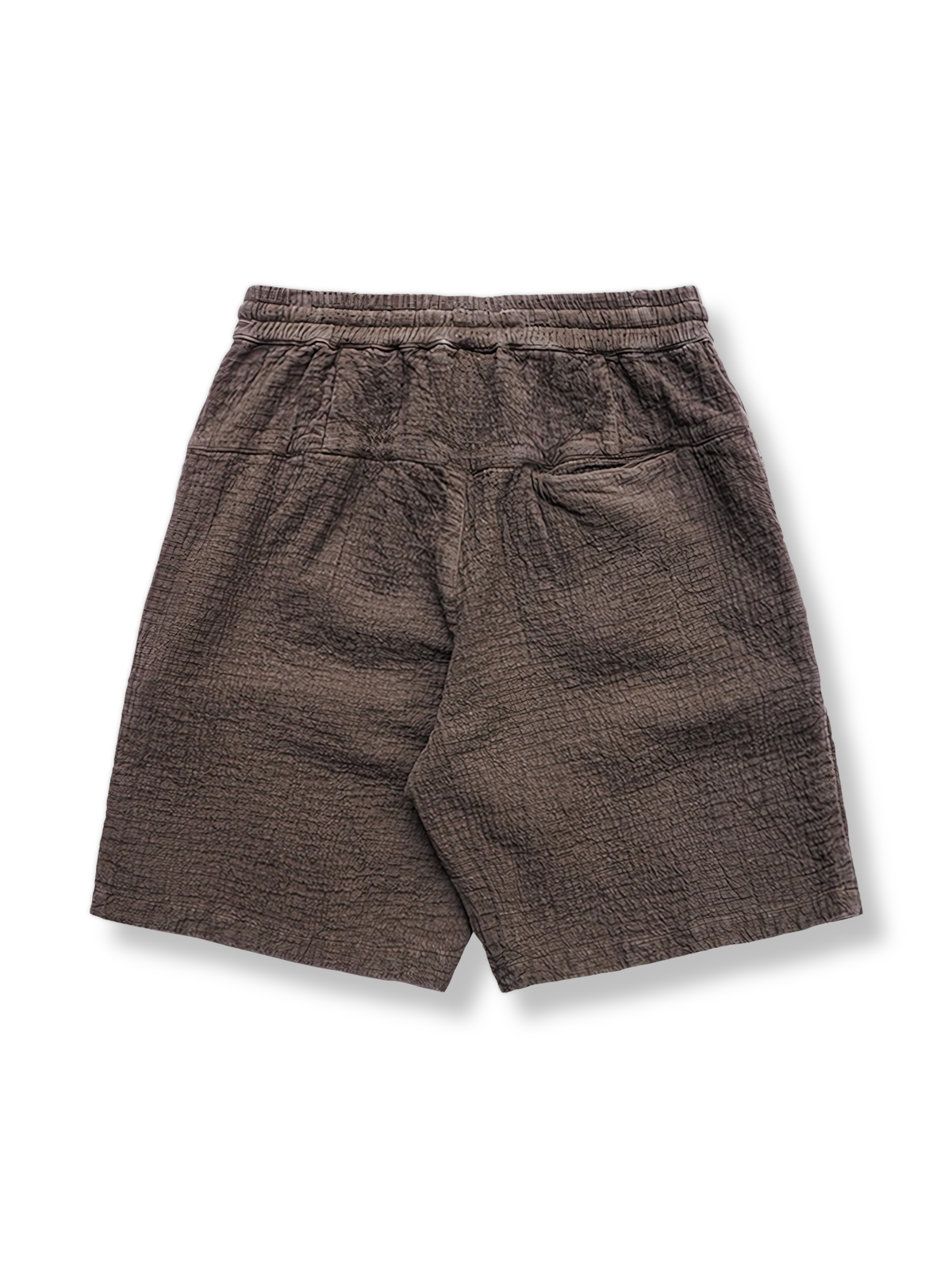 この手工古法植物染め剣道刺し子ショートパンツは、特別に織られた380グラムの刺し子生地を使用し、多重洗浄と草木染め技法によって自然なコーヒー色を実現しています。クリの殻から抽出された染料を使用し、タンニン成分が含まれることで生地の硬さが増していますが、着用や洗濯を重ねることで、徐々に柔らかく自然な風合いに変わります。ゆったりとしたカットデザインで、ウエスト部分はゴムと紐で調節可能なため、幅広い体型に適応します。生地の厚さは中程度で、柔らかく通気性があり、夏の着用に適しています。ウエストのゴムは約4-6センチメートル伸縮し、快適さと利便性を高めています。
