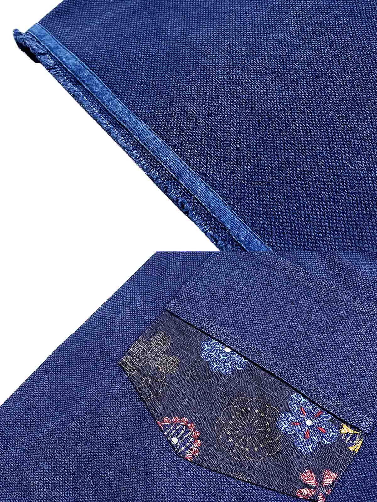 この五分丈ワークショーツは、100%コットン素材を使用しており、快適で通気性に優れています。独特の藍染め技法とパッチワーク刺し子デザインが施され、ショーツにヴィンテージ風の魅力と芸術性を加えています。リペア工芸を取り入れることで、耐久性が強化され、視覚的なレイヤー感が増しています。ルーズフィットのデザインは、快適さと動きやすさを提供し、ウエストには調整可能なドローコードが付いているため、フィット感と快適さが確保されます。日常のカジュアルなシーンやアウトドア活動に最適で、独特の個性とスタイルを表現します。