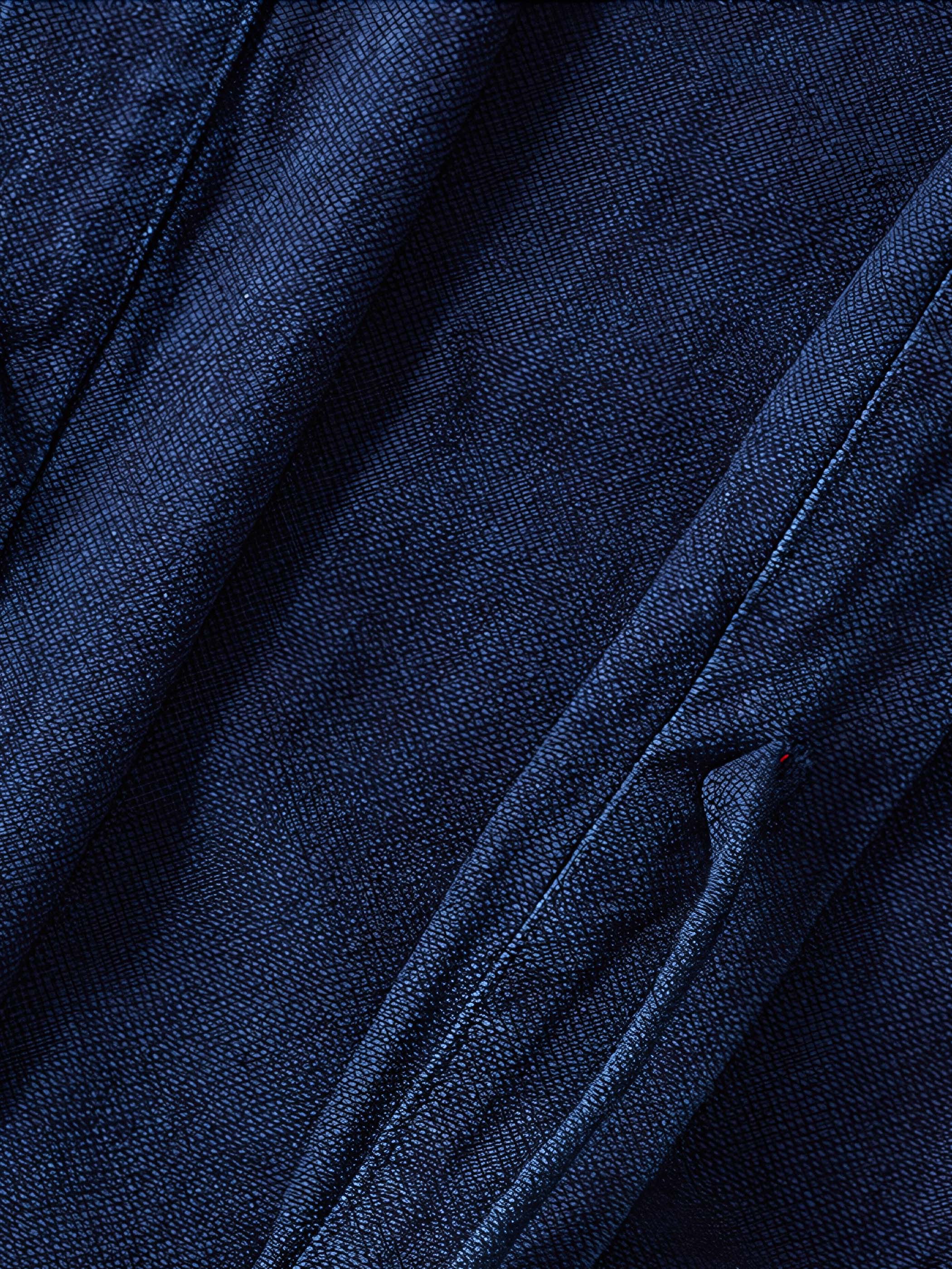 この藍染はんてんには、コットンリネン素材が使用されています。コットンの柔らかさとリネンのナチュラル感が併せ持たれており、肌触りも心地よく直接素肌に着ていても快適です。洗うほどに藍の渋さが深まり、色落ちする藍染の特性を生かしたデザインとなっています。