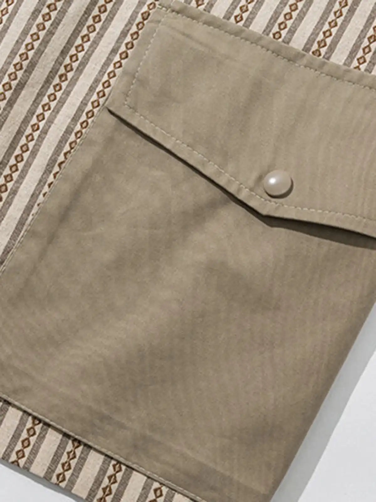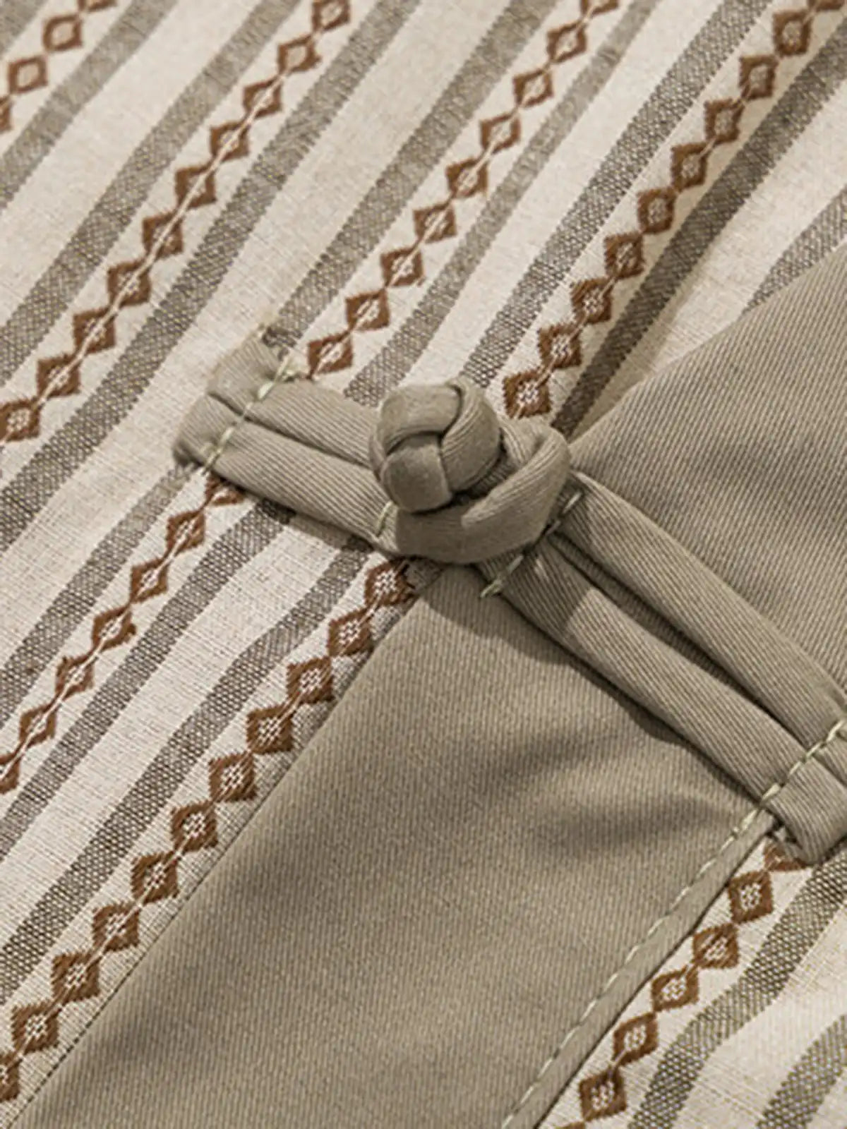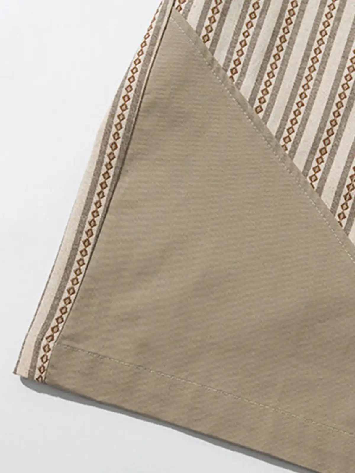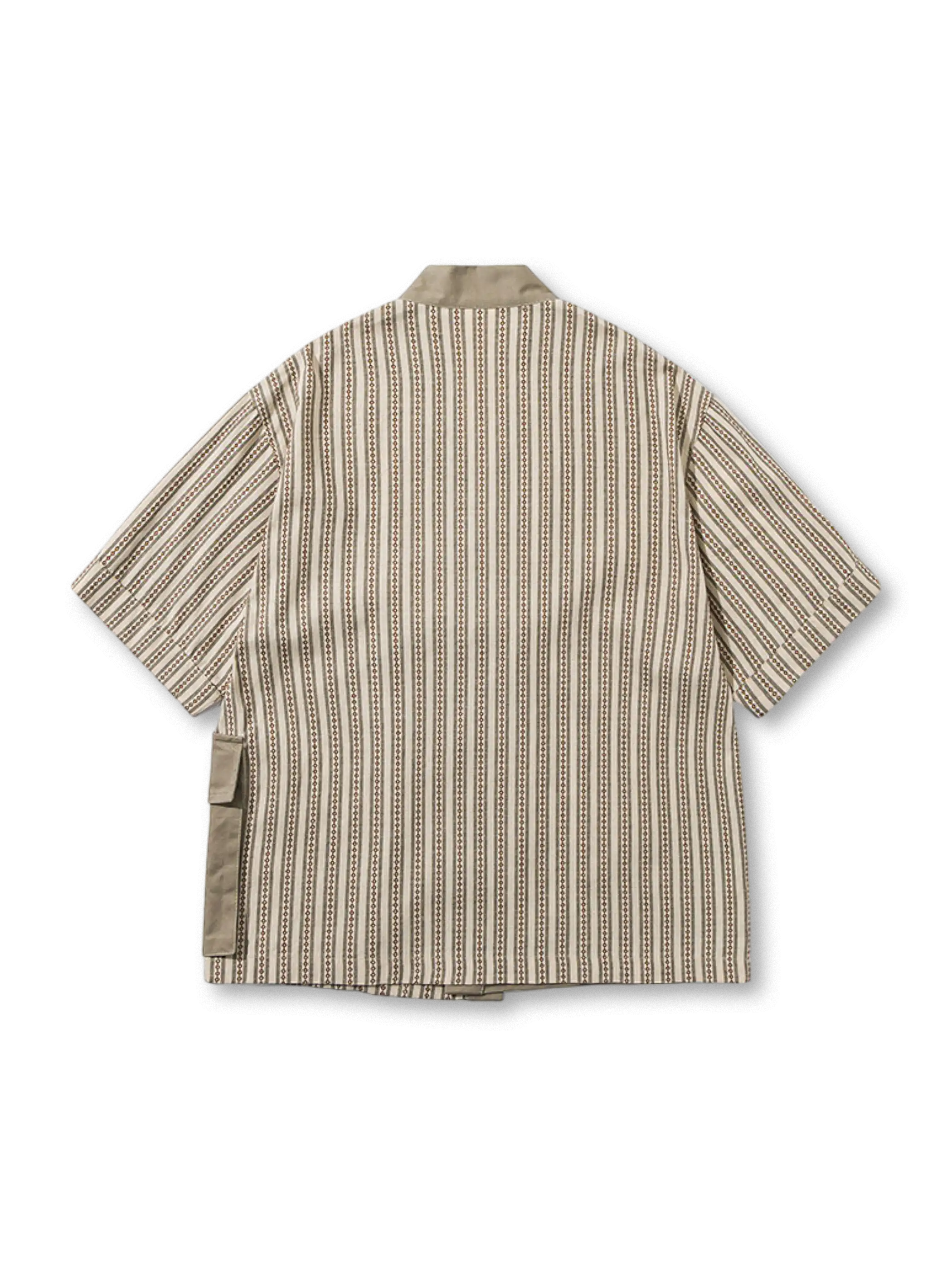 チェック柄部分と無地部分を切り替えることで、民族風かつモダンな雰囲気を両立。フロントは紐留め仕様で、さっと羽織るだけでコーディネートのアクセントに。胸元にはないシンプルさが、裾の大きめポケットで実用性とデザイン性を補完。全体がゆったりとしたシルエットで、カットソーやタンクトップの上に羽織るだけでリラックス感を演出し、春夏の軽いアウターとしても活躍する一枚。