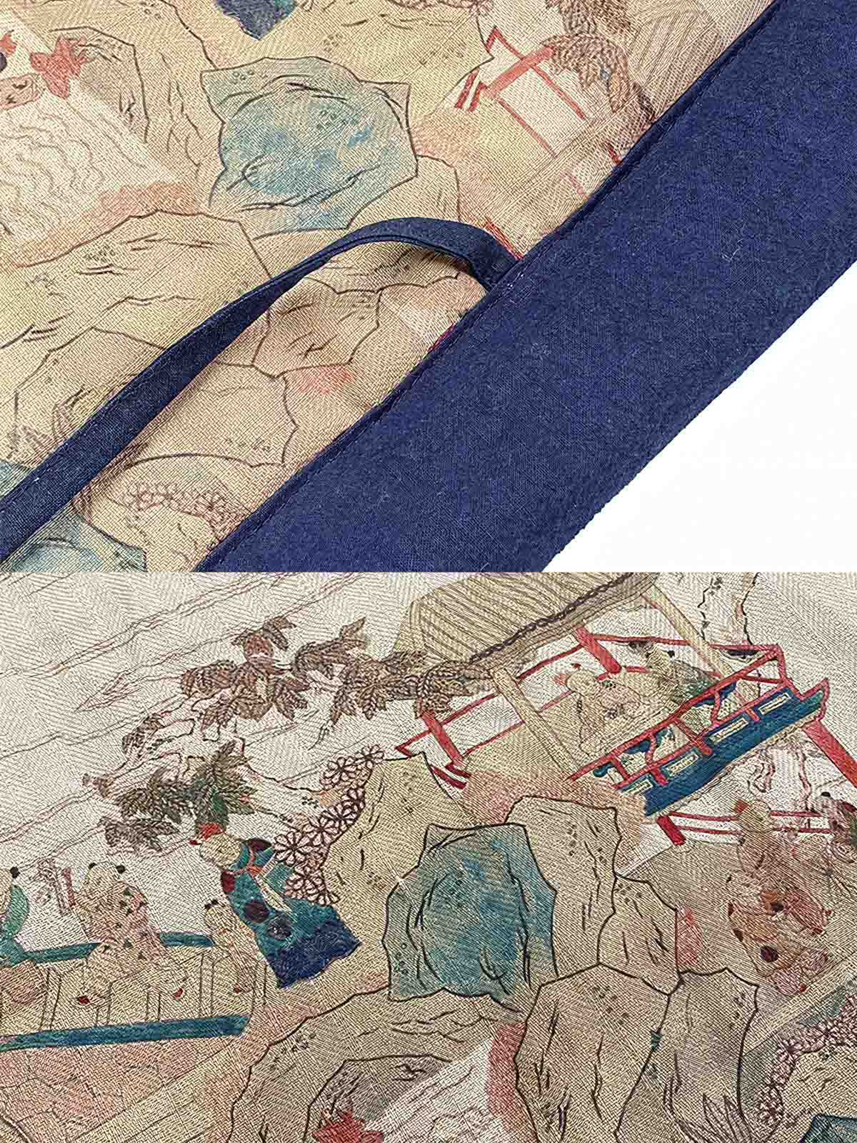 この衣服は藍染め技術を採用しており、これは長い歴史を持つ染色技法で、特に日本や中国の伝統的な服飾で重要な役割を果たしています。刺し子コットンの道服デザインは、東アジアの伝統的な服装からインスピレーションを得ており、パッチワークやパッチ要素は、レトロスタイルへの現代的な再解釈と持続可能なファッションへの関心を表しています。
