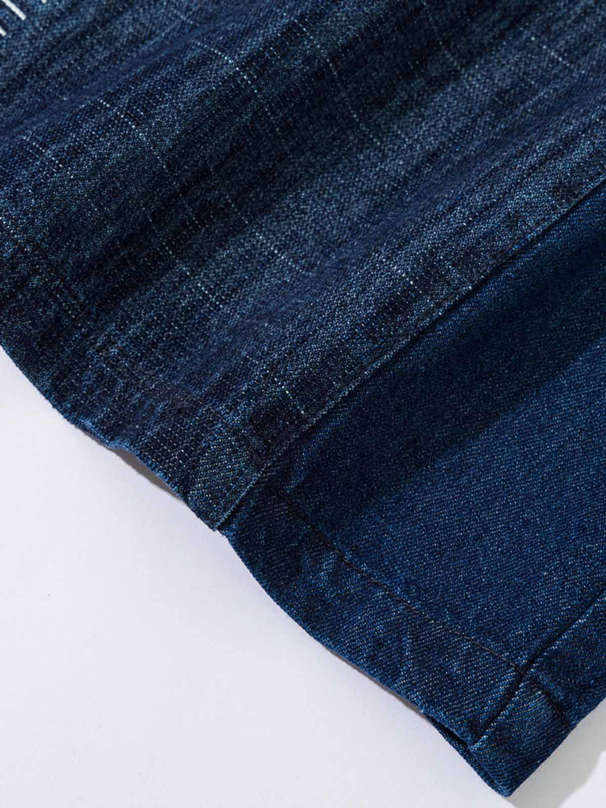 このシャツは、90%コットンと10%ポリエステルのジャガードデニム生地を使用し、丈夫でありながら柔らかな着心地を実現。ウォッシュ加工によって、自然でヴィンテージ感のあるテクスチャーを際立たせています。胸元と袖部分には大きなジャガードストライプが施され、立体的な層感と視覚的インパクトを与えています。ややゆったりとしたフィット感は、日常のカジュアルスタイルやアメリカンワークスタイルにもぴったりです。ポリエステルの含有により、耐久性としわ防止の効果もあり、ユニークなレトロなデザインと実用性、ケアのしやすさを兼ね備えたアイテムです。
