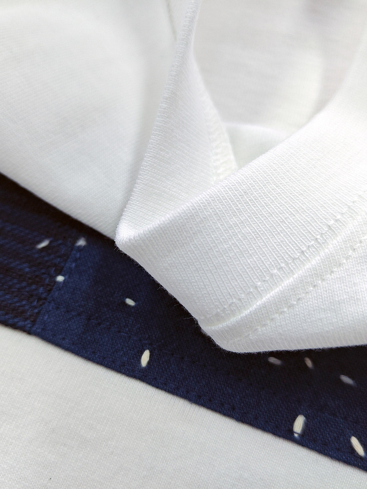 手作りの刺し子刺繍パッチがシンプルなデザインにヴィンテージ風を演出。