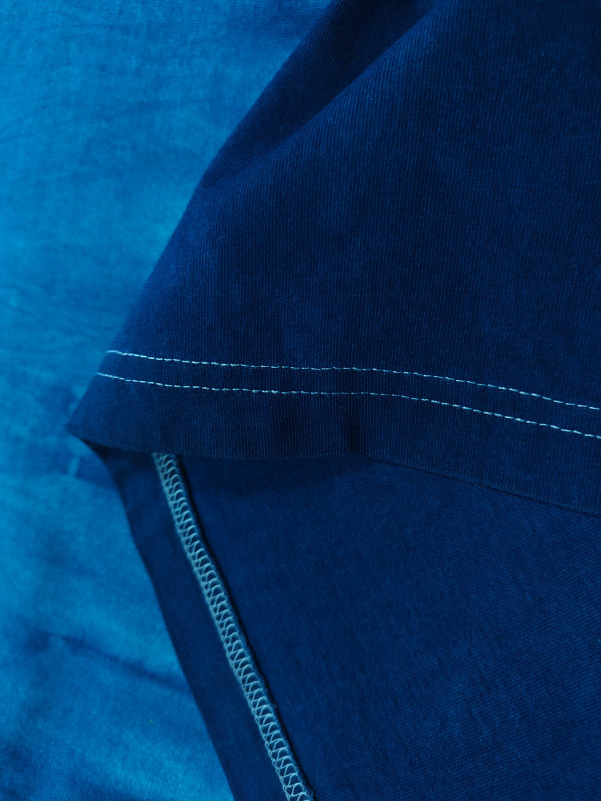 絞り染め技術を駆使したこのTシャツは、青のグラデーションで海の深みを表現し、古い染色技術と現代のファッションを融合させています。伝統との繋がりを重んじるこの技法は、Tシャツにアーティスティックでレトロな魅力を与え、現代のカジュアルスタイルに自然美学の追求を取り入れています。