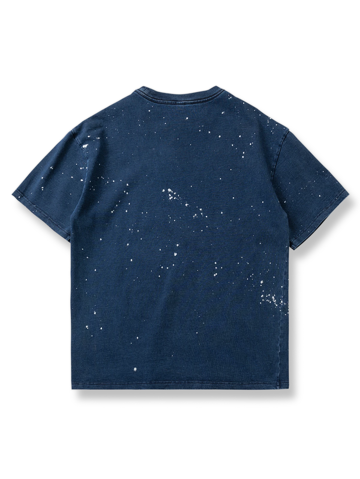 このTシャツは、伝統的なインディゴ染め技術と古代の織染技法にインスパイアされたスノーフレークプリントを組み合わせています。モダンな美学を取り入れることで、独特のレトロ感を醸し出しており、時代を超えたデザインが特徴です。