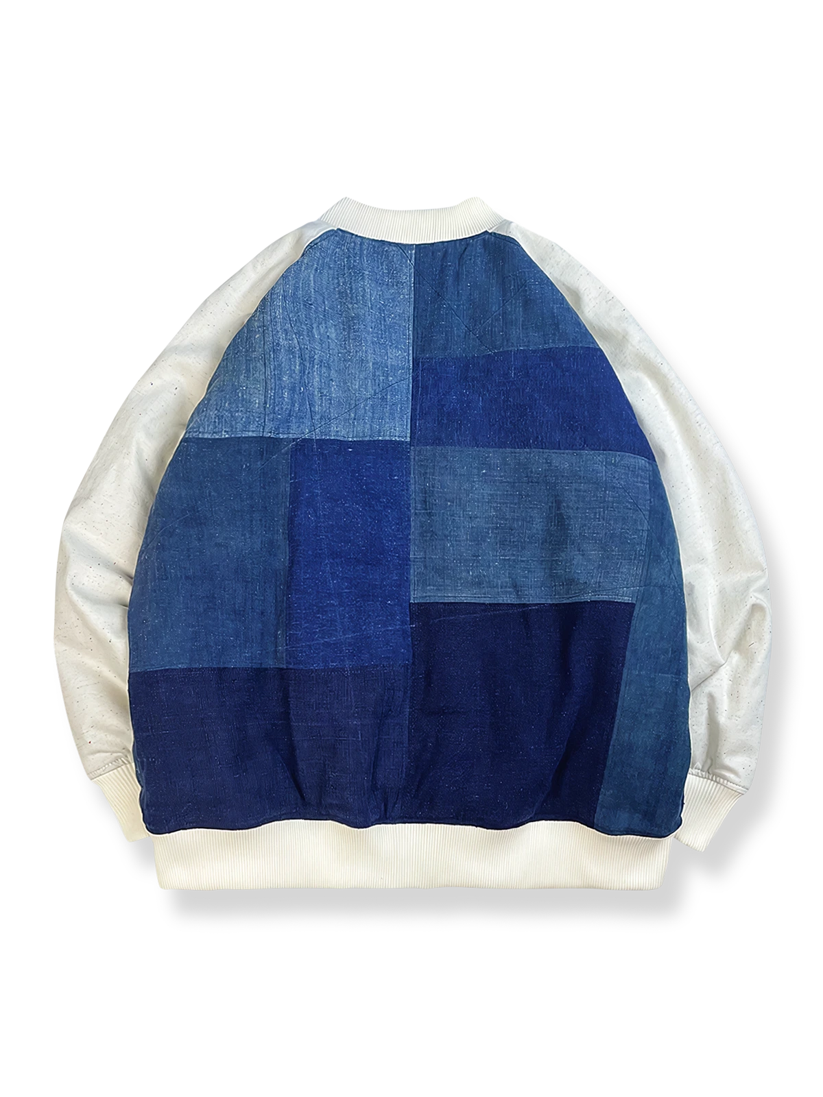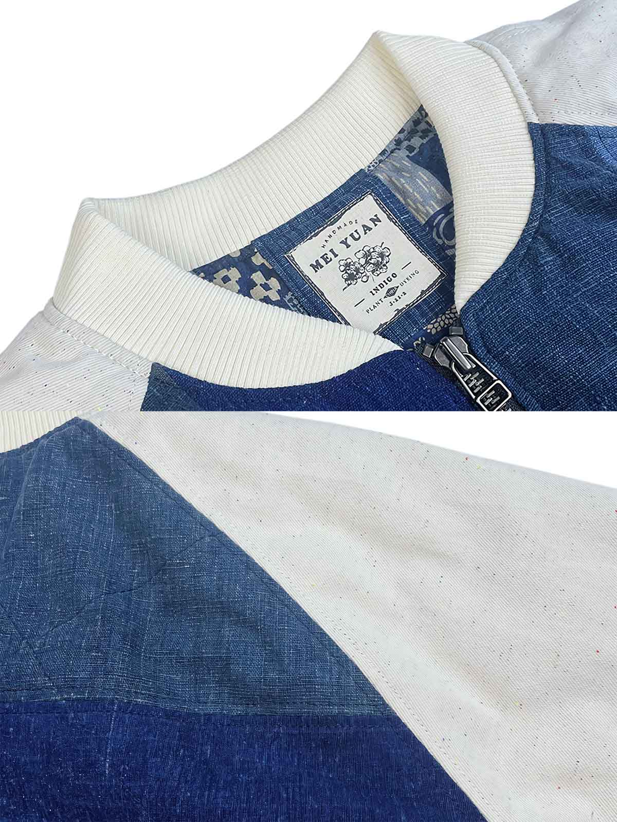 このジャケットは、伝統的な藍染め技術と現代のカジュアルウェアのスタイルを融合させたデザインです。藍染めは、数百年の歴史を持つ江戸時代からの染色技術で、深い青色とユニークなパターンで知られています。布地を繰り返し染めることで、豊かな青の層を作り出し、自然と人工の調和を象徴しています。このジャケットのデザインは、和服や作業服からのインスピレーションを受けており、その構造や素材の選択にも表れています。