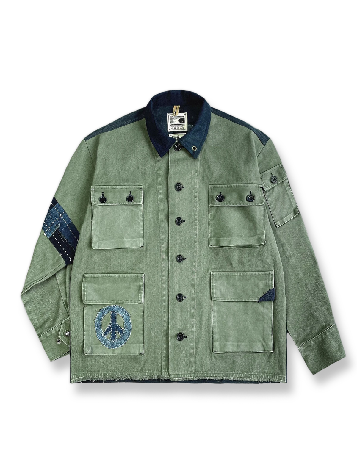 藍染めと刺繍のパッチワーク要素は、クラシックなミリタリースタイルに文化芸術の息吹を注入しています。ウォッシュ加工された生地は柔らかく快適で、着用するほどに色と質感が独自のヴィンテージ効果を発揮します。