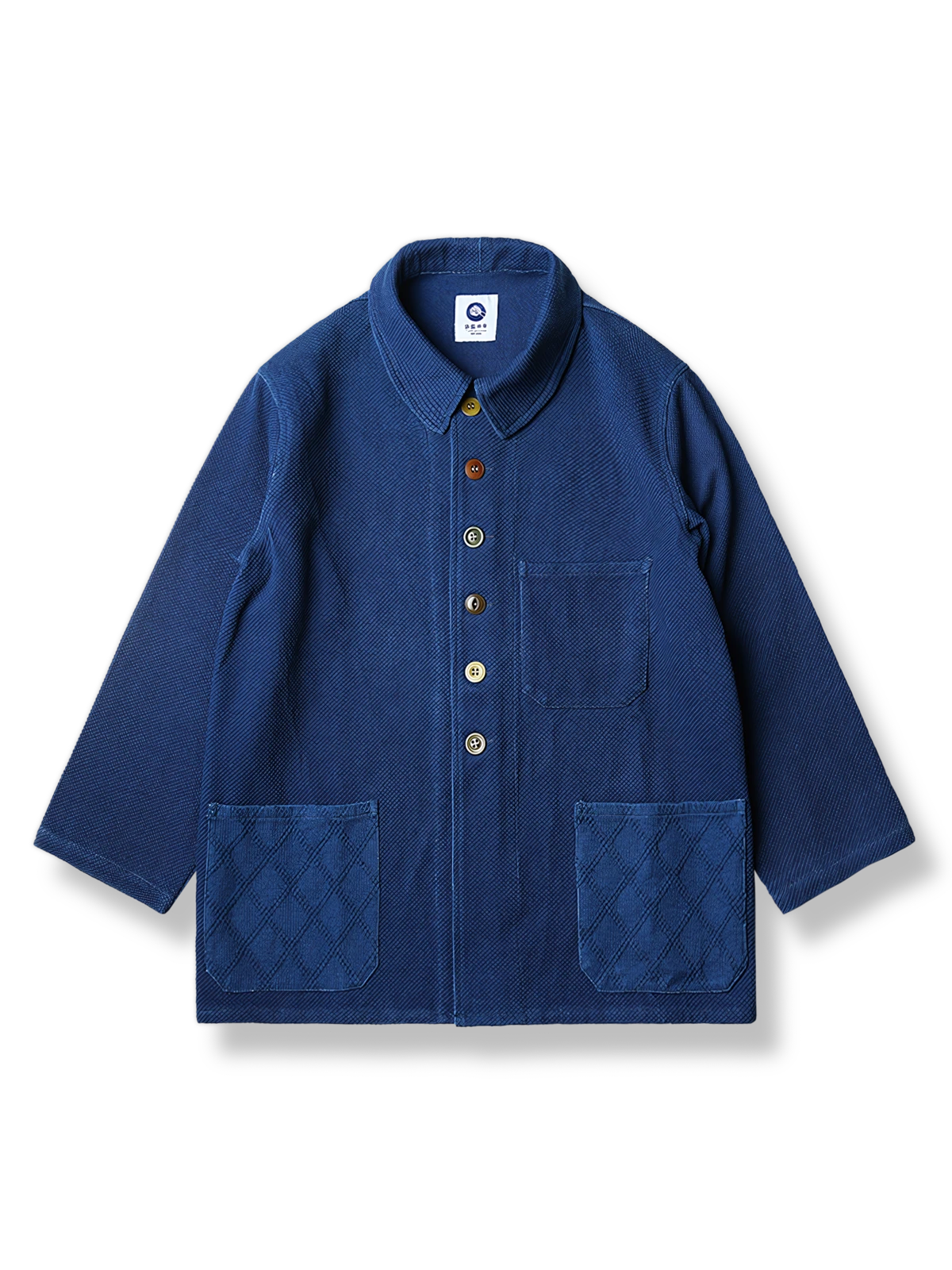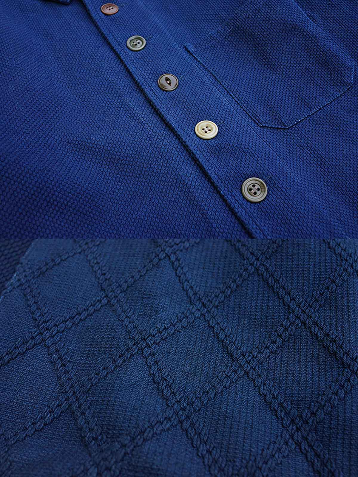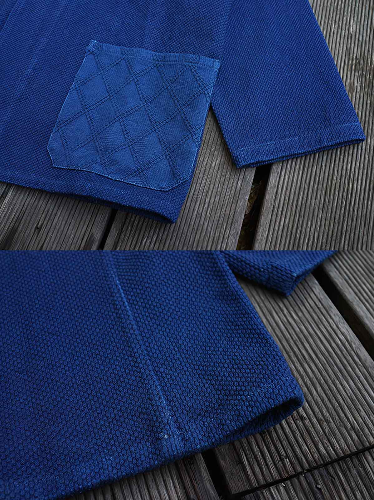 厚手のコットン素材を使用しており、日常の摩擦に強く、着込むほどに個性的な風合いを出してくれるでしょう。天然素材のボタンが前立てに施されており、自然と伝統技術の組み合わせを強調しています。大きなパッチポケットは実用性に優れ、キルティングのダイヤモンドパターンが高品質な工芸を際立たせています。