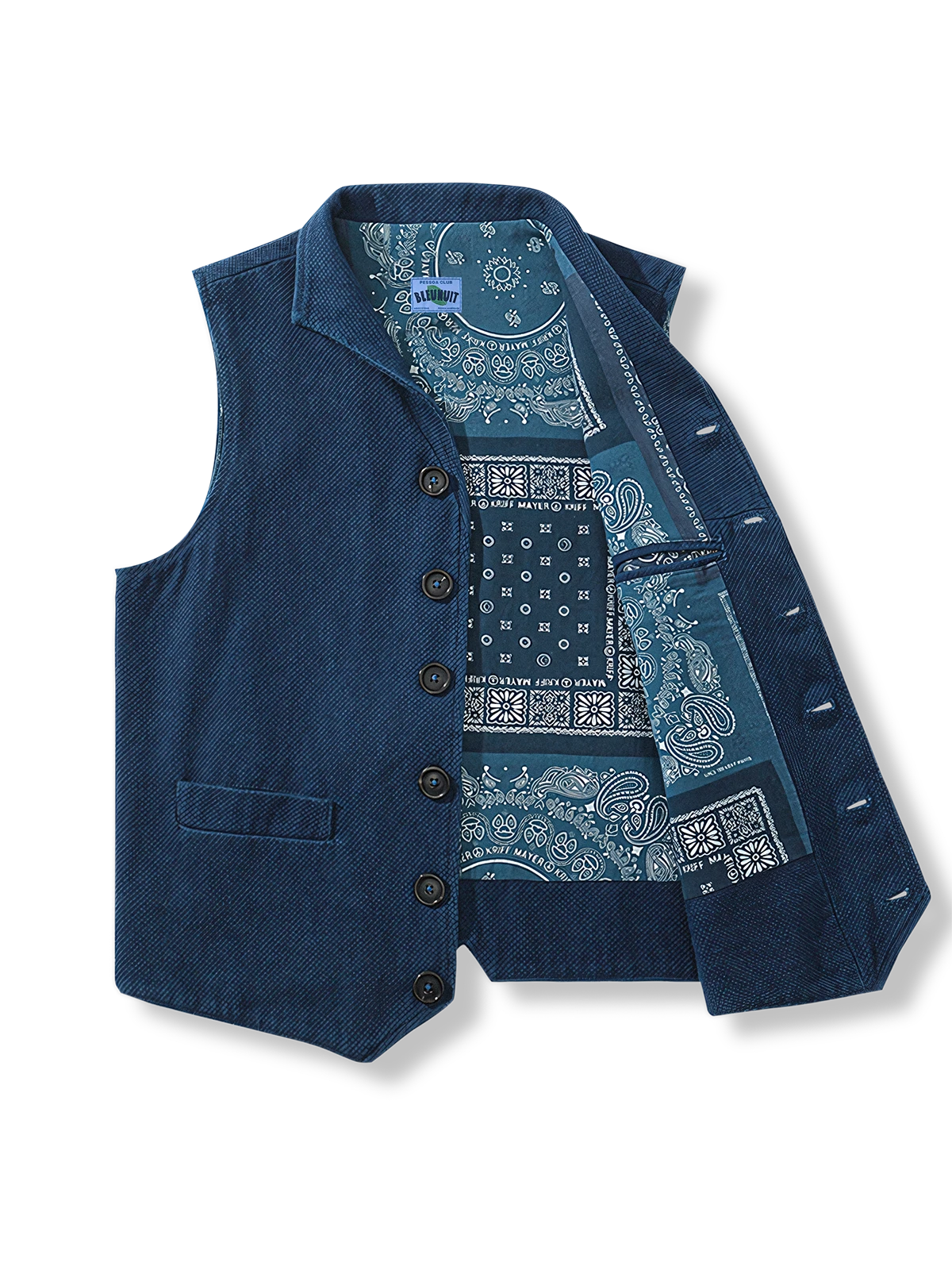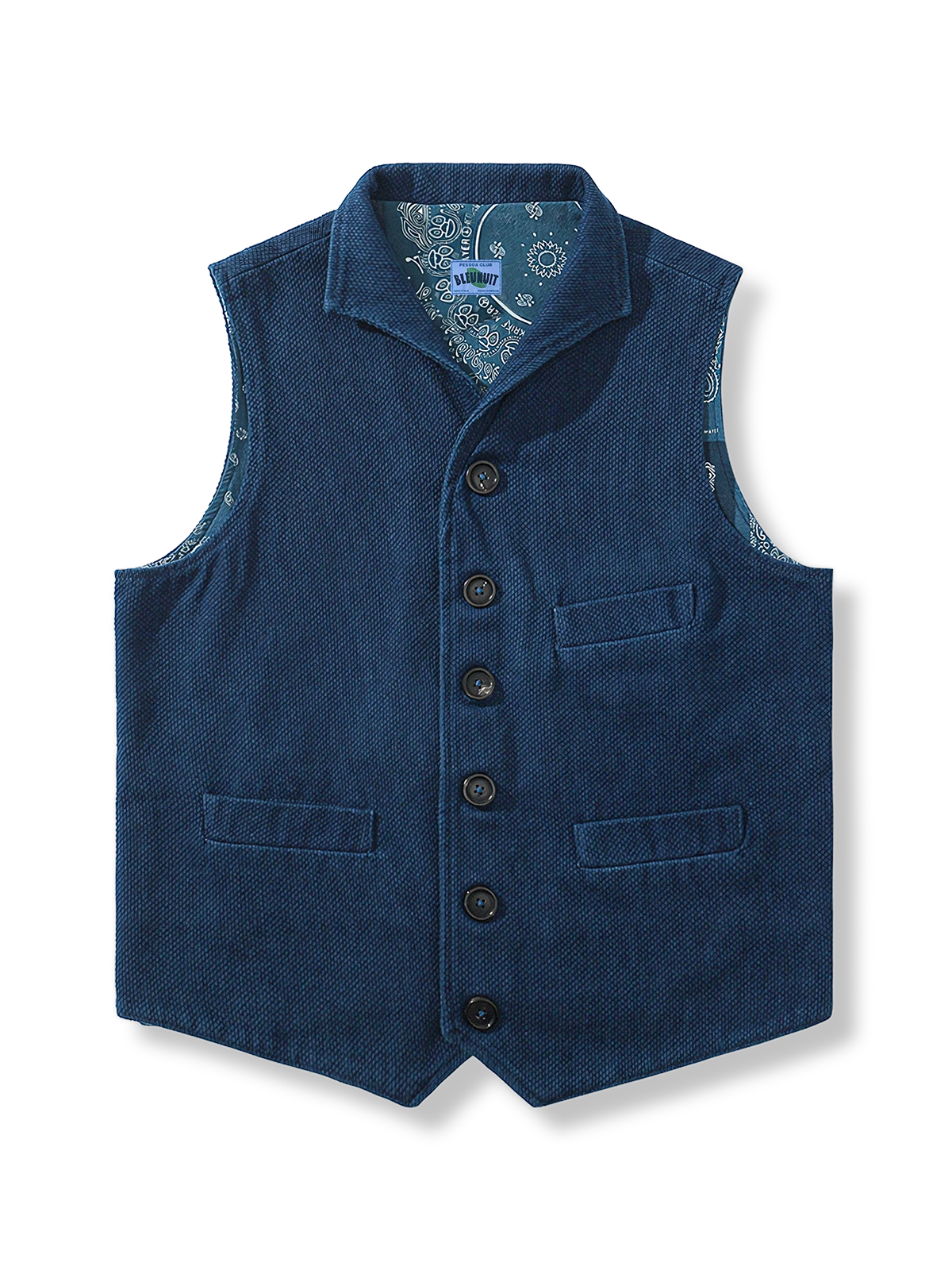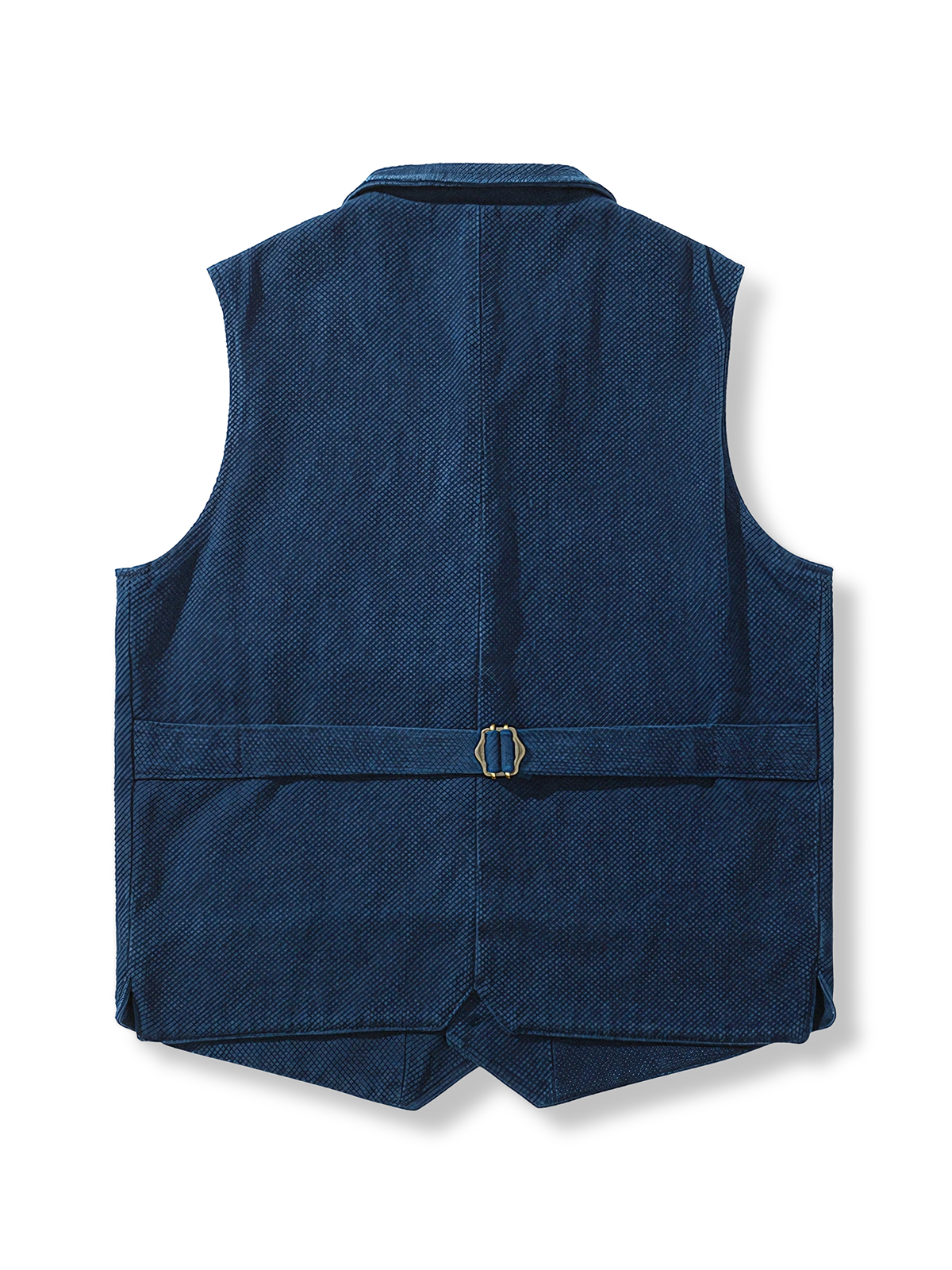 本アイテムは1930年代のノッチラペルベストをモチーフにしており、450gのヘビーウェイト素材を使用しています。色落ちの良い素材を採用し、柔らかく肌に馴染むように仕上げました。さらに、3つの実用的なパッチポケットと後ろのウエストベルトで、自分自身の好みに合わせた着こなしが可能です。