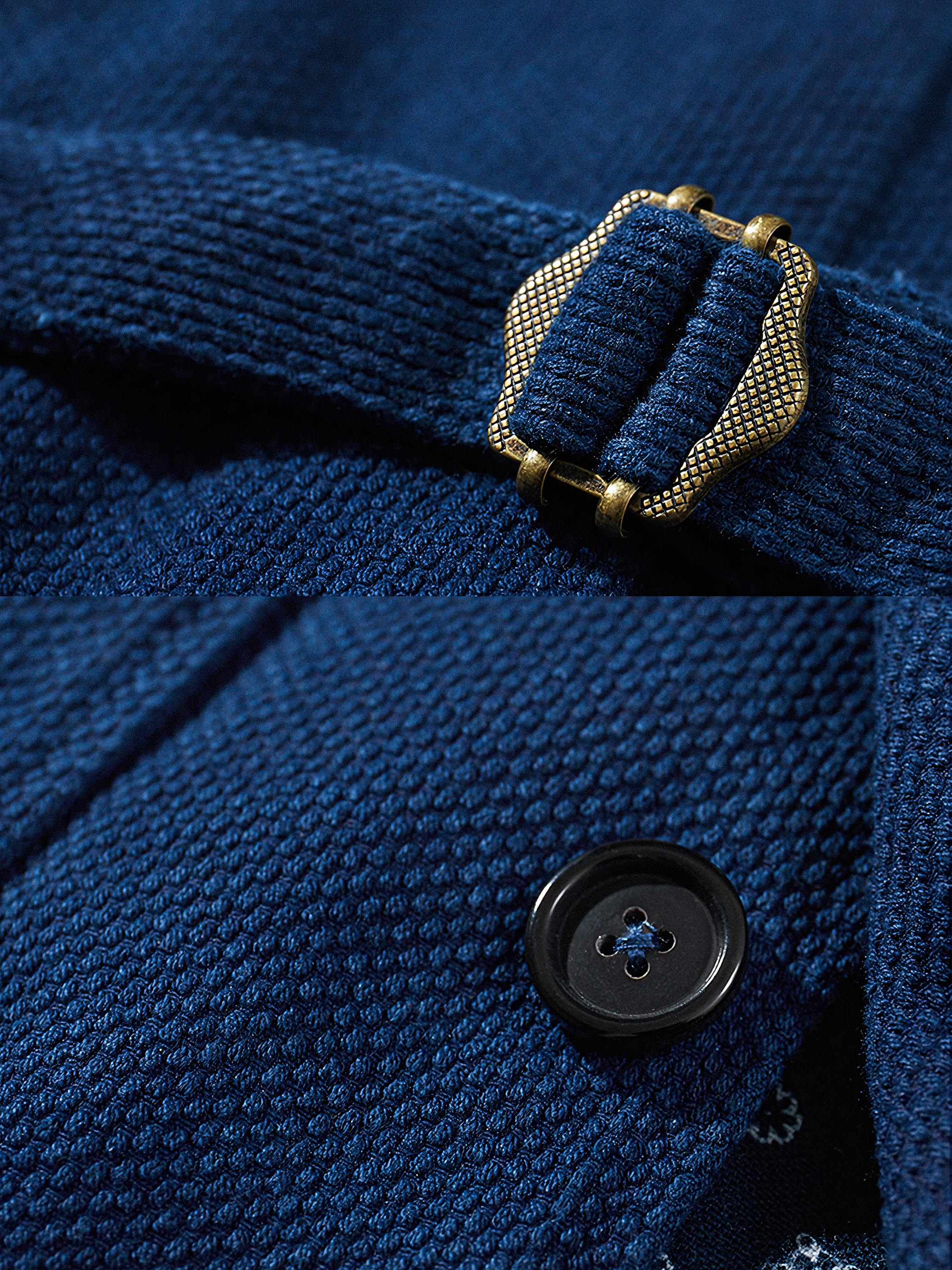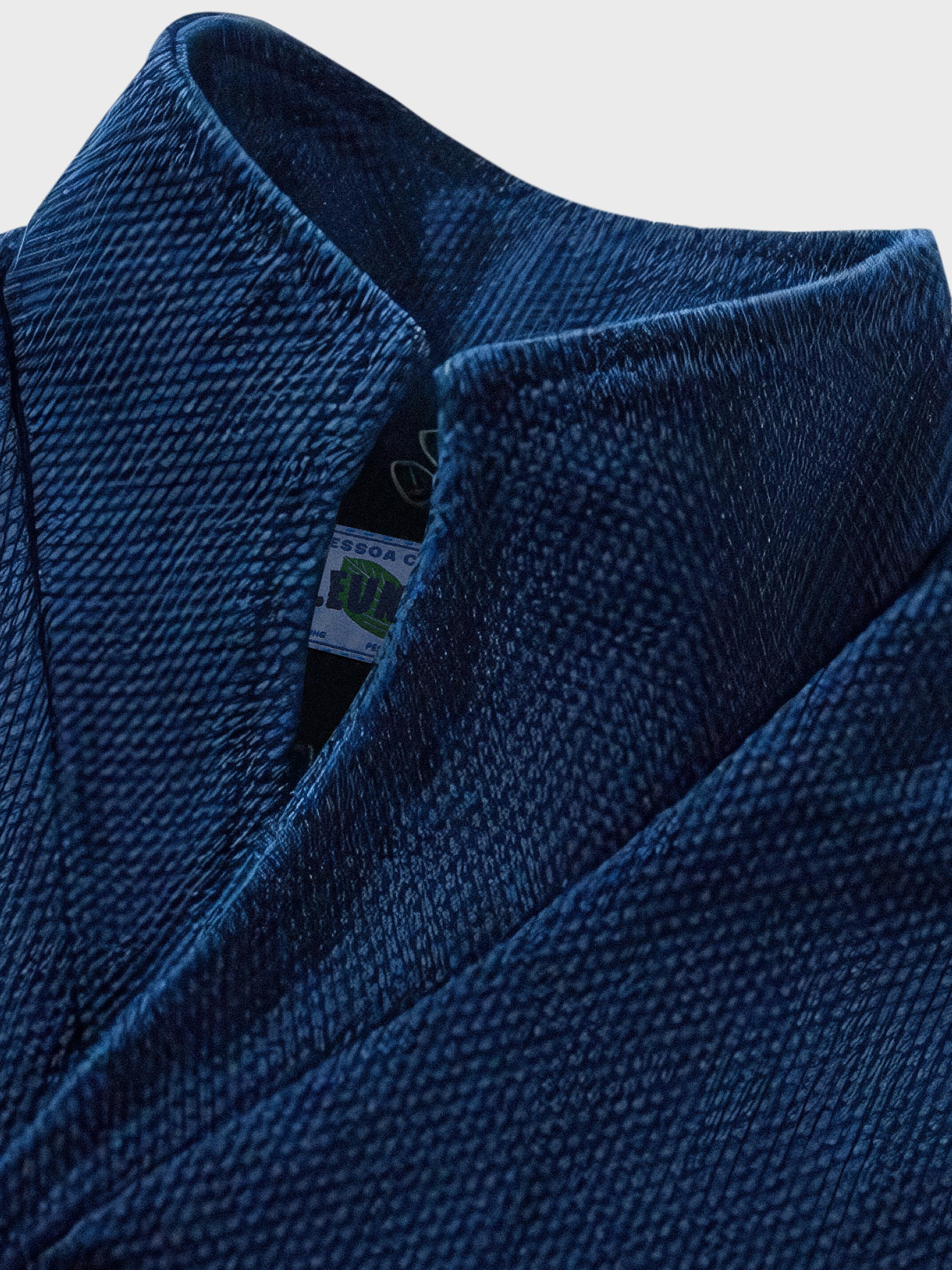 剣道着のような表面の凹凸感が特徴的な刺し子素材を使用し、軽さと快適性を追求しました。