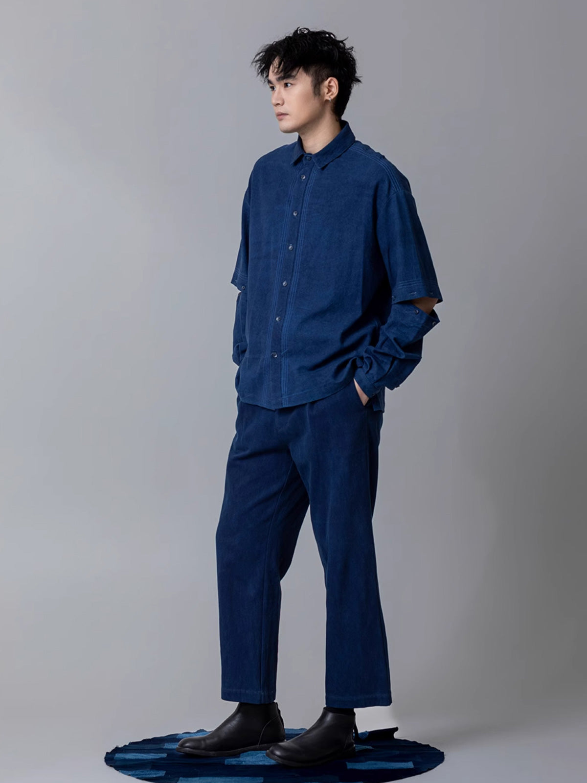 シンプルなホワイトやダークカラーのシャツをインナーとして、ベストのテクスチャとパッチワークディテールを引き立てます。ストレートジーンズやカジュアルパンツを合わせることで、リラックスしたカジュアルスタイルを実現します。キャンバスシューズやレザーシューズを追加することで、都市的で洗練されたカジュアルルックを完璧に演出できます。