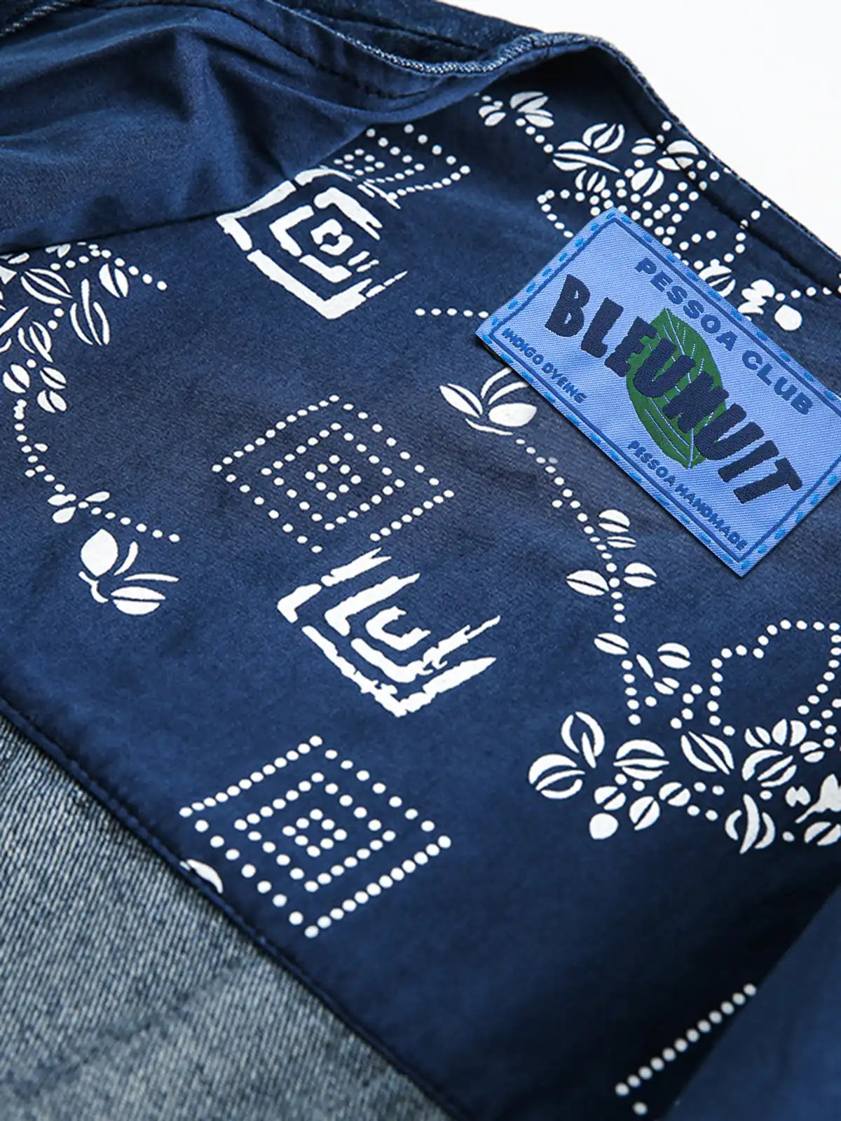 職人が手作業で植物染めしたインディゴデニムを用い、着込むほどに味わい深く変化する色味を実現。胸元にはスマートなウェルトポケット、腰部には大容量のパッチポケットを配し、日常の携行品を整理できる機能性を確保。裏地にはバンダナ柄プリントをあしらい、見えない部分にもこだわりを演出。クルーネックTやミリタリーパンツとのレイヤードで、大人のワークスタイルに個性をプラスします。