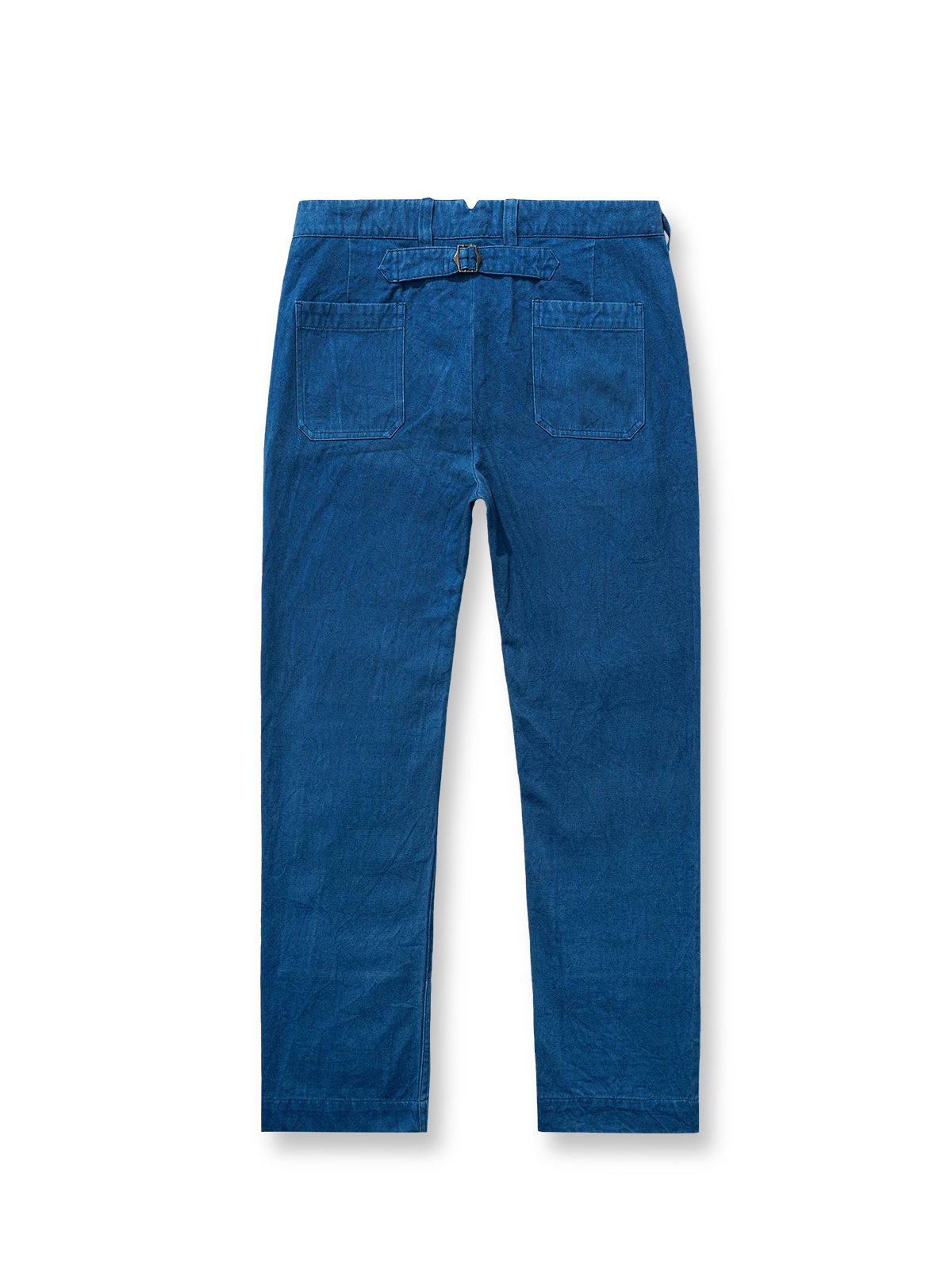 この作業服パンツは藍染めのパッチワークデザインを採用しており、異なる青色のパッチワークで視覚的に層次感とデザイン感を増やしています。