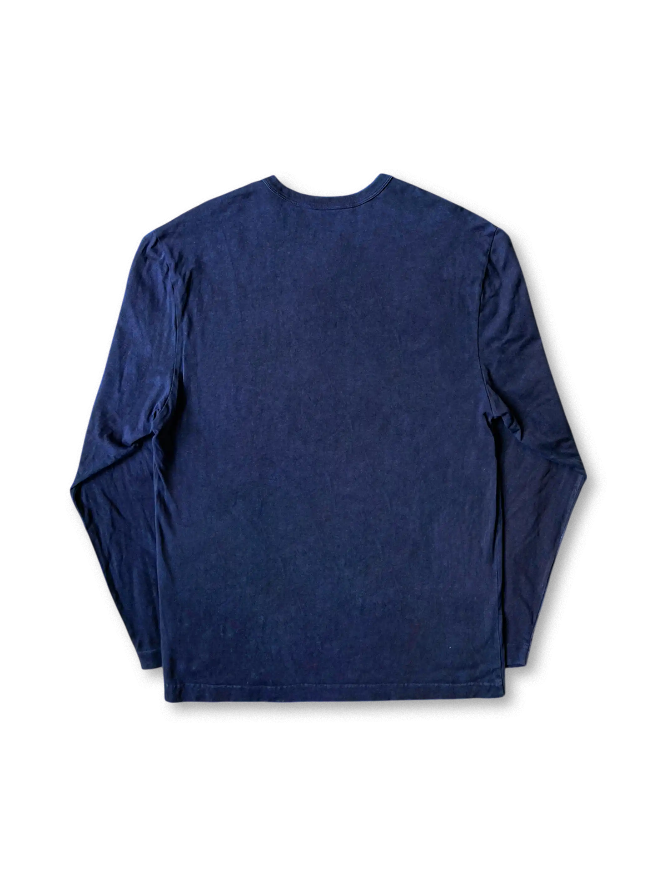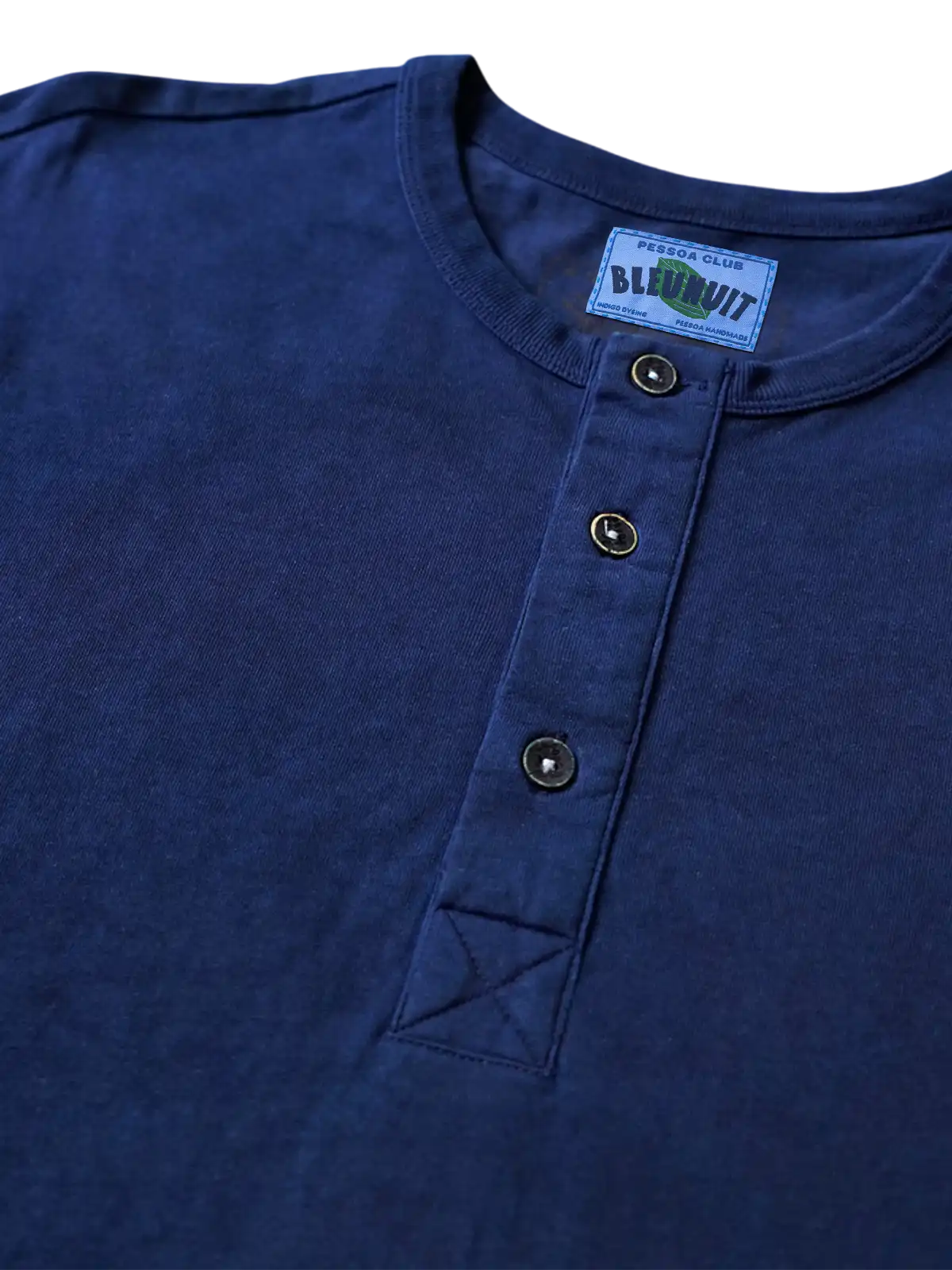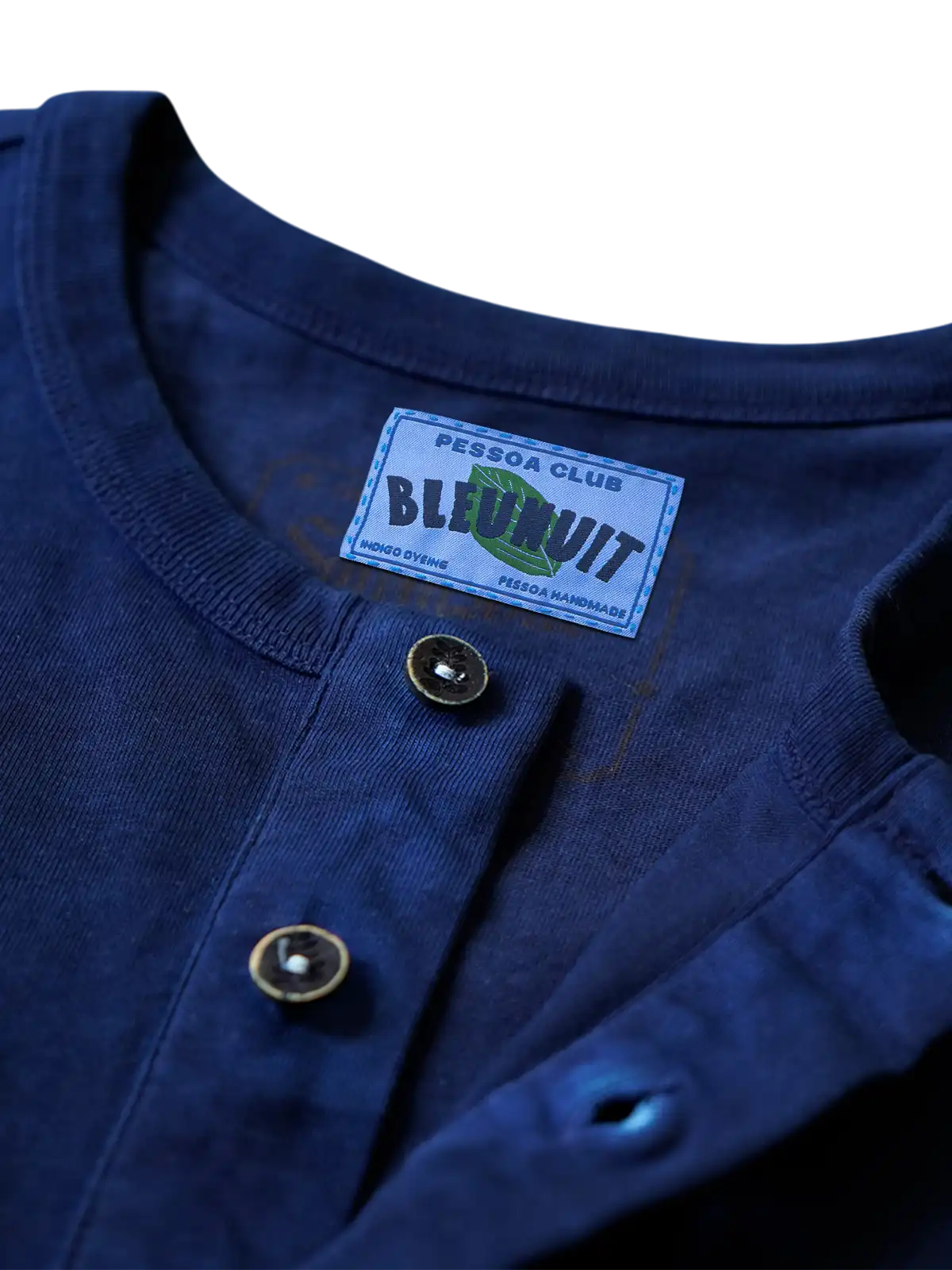 260g双糸コットンの重厚感と伝統的植物藍染めが織り成す、本格派長袖ヘンリーネックTシャツ。
