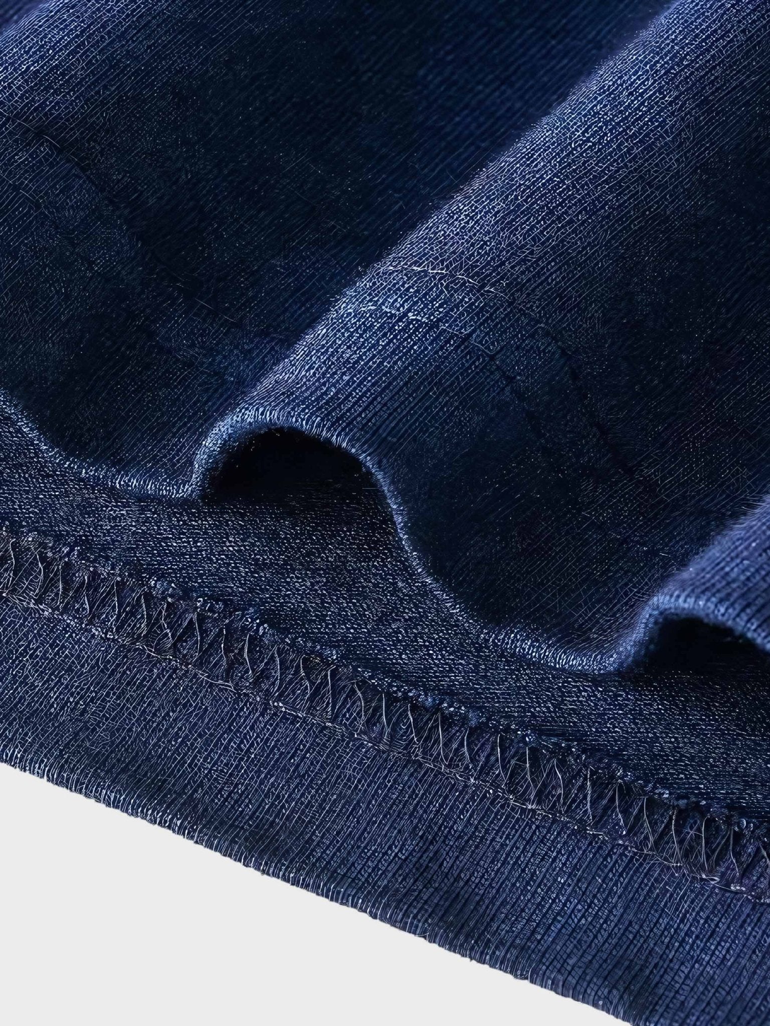 100%コットンの生地は、しなやかさと耐久性を兼ね備えて、吸汗性と速乾性にも優れています。夏の季節はもちろん、季節を問わず快適に着用いただけます。藍染とウォッシュ加工を施して、柔らかな肌触りを実現しています。