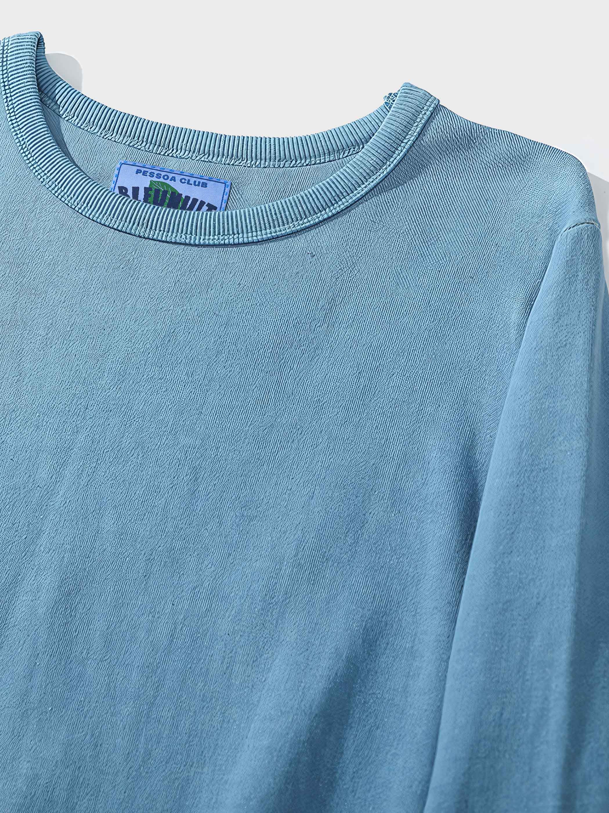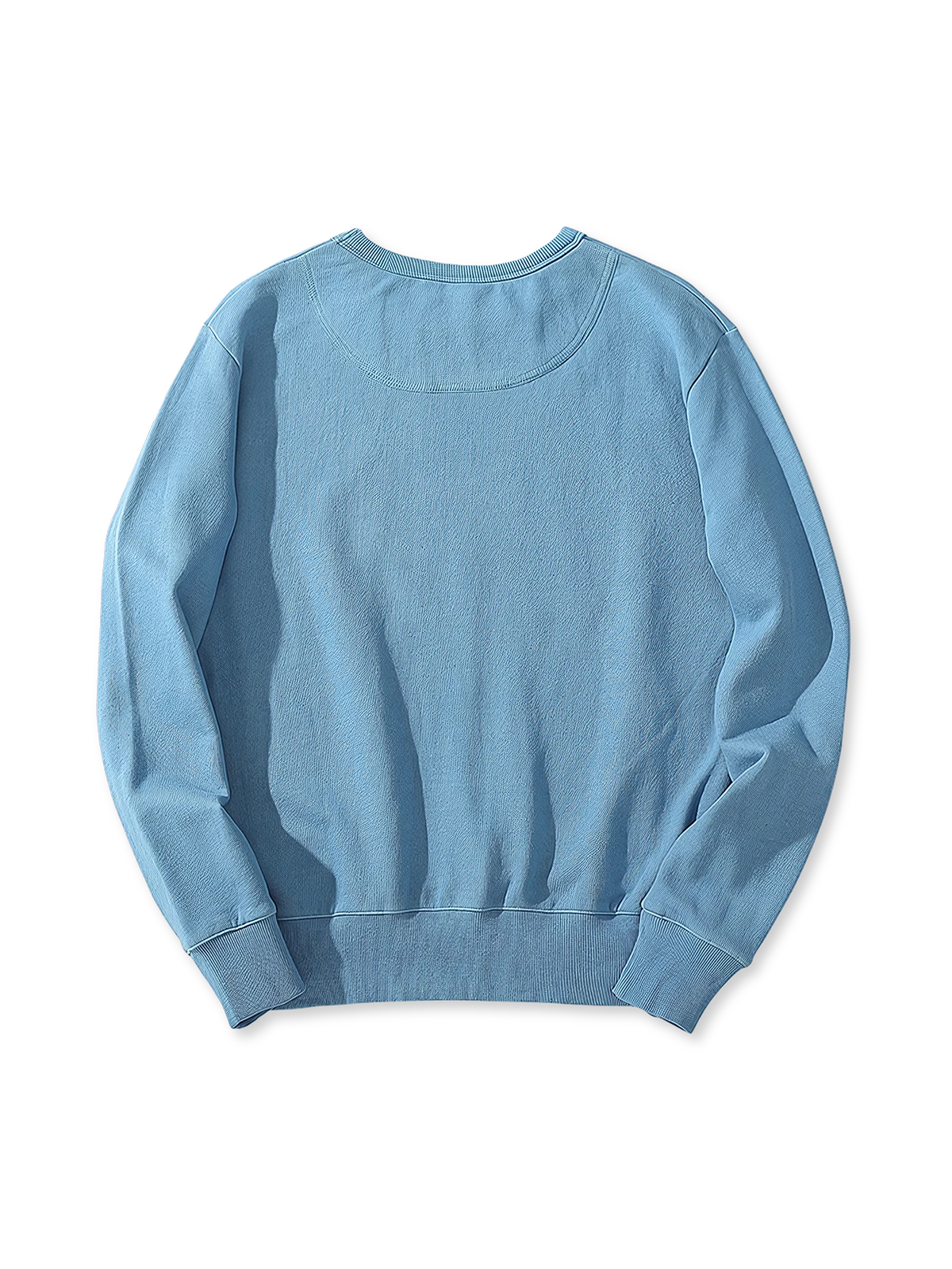 天然染料を使用した伝統的な染色手法を施した、重厚感のあるヘビーウェイトスウェットです。手作業で染め上げているため、何回も繰り返し手間暇をかけて仕上げました。