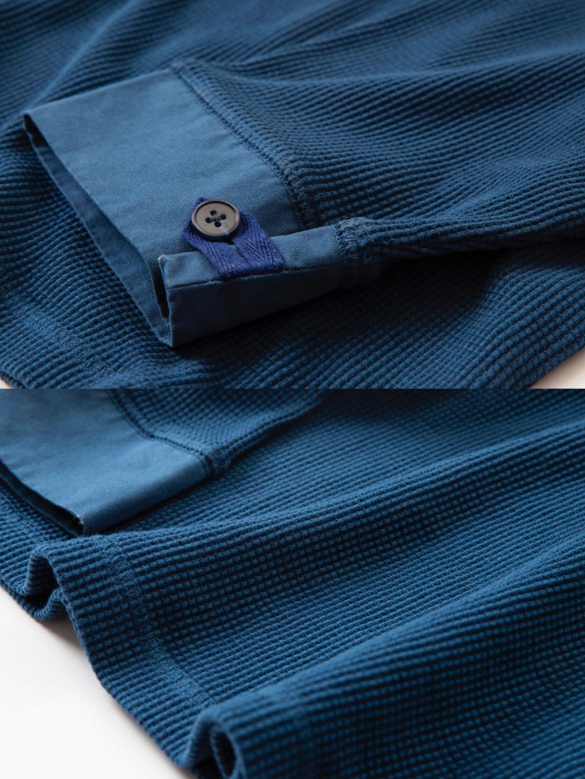 伝統的な藍染技法と現代的なカジュアルデザインを組み合わせ、自然なヴィンテージ感を演出するパーカ。