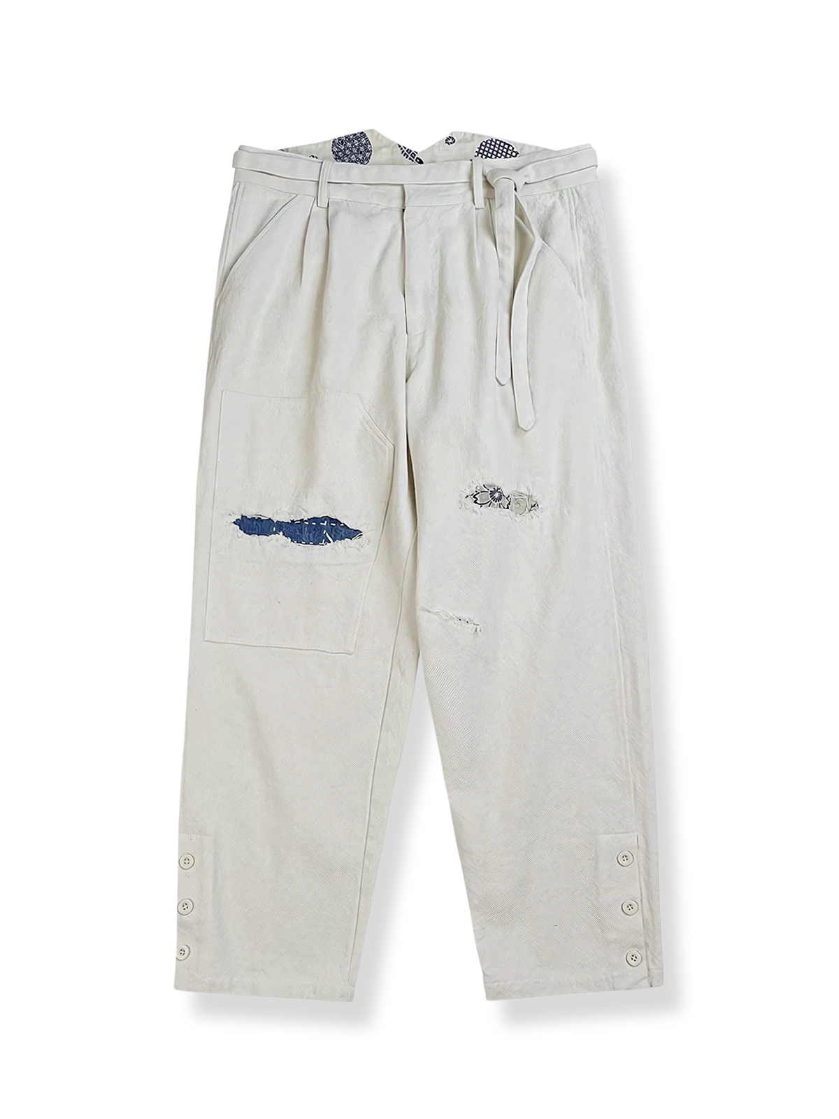 パンツに施された各パッチは、丁寧にデザインされており、手作業のアート感を強調し、服にストーリーを加えています。水洗い加工により、コットン生地はより柔らかく変形しにくいため、快適な着用感とパンツの形状の安定性が保証されます。