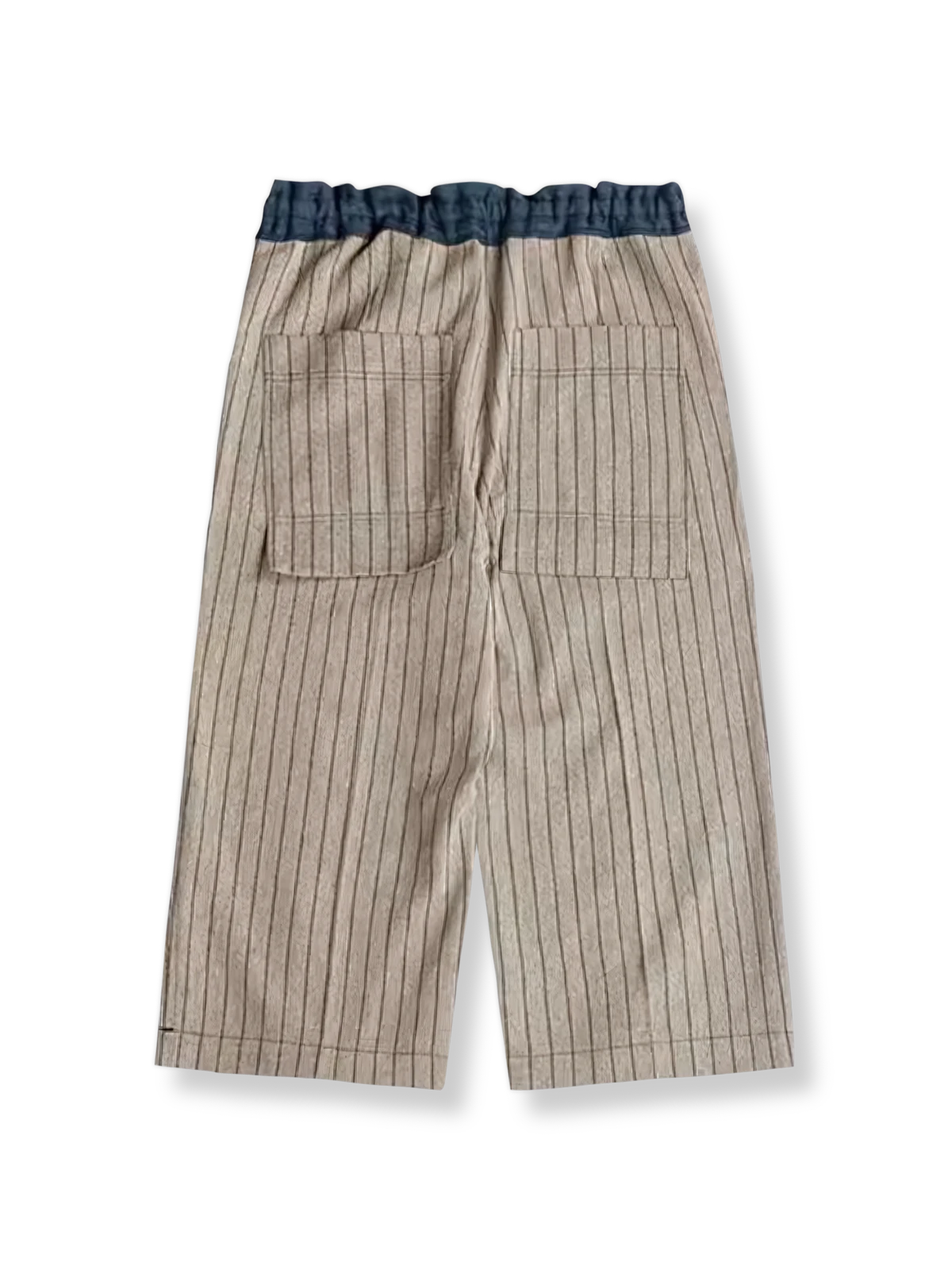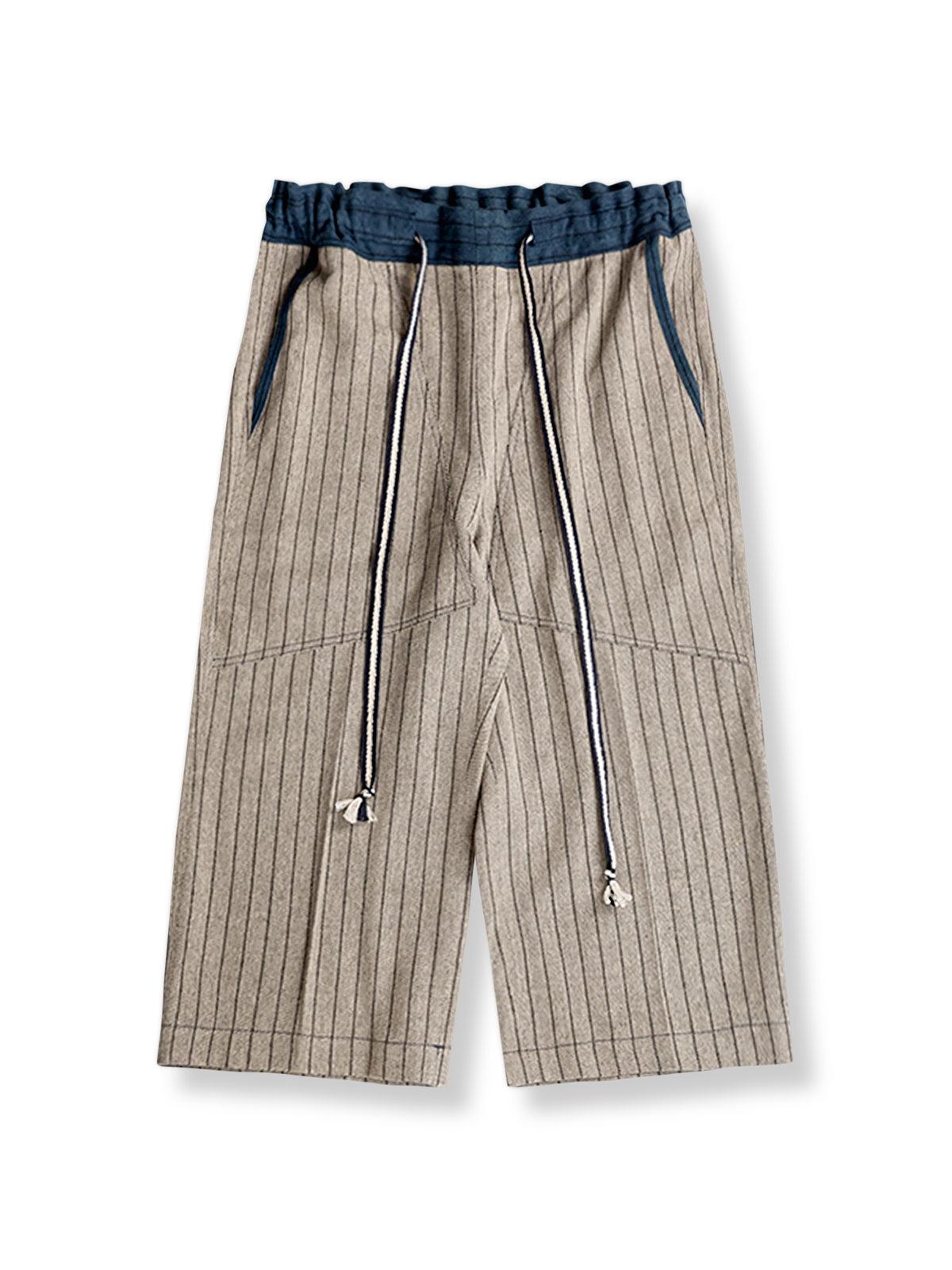 クラシックなストライプ模様が特徴のこのコットンリネン7分丈パンツは、レトロなスーツパンツの要素と現代のカジュアルパンツデザインを組み合わせています。ストライプは19世紀から紳士服の象徴的な特徴であり、この長い歴史を継承し、デザイナーは軽やかな素材と短い丈を巧みに採用して、現代的な解釈を加えました。