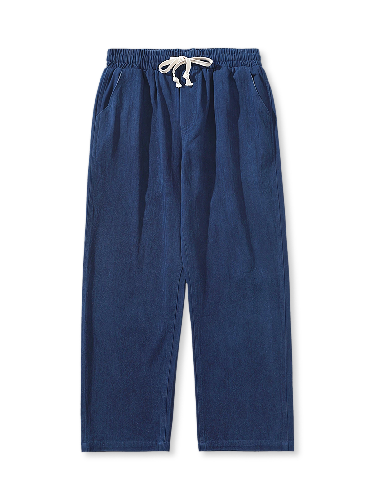 本アイテムは、余計な装飾がなく、植物由来の天然藍を使用した伝統的な藍染めで、ビンテージ感が魅力的なパンツです。ゆったりとしたシルエットでウエスト部分にゴムが入っているので、快適な着用感を実現しています。模様の形状としては、ゆるいV字が縦横に連続して組み合わされており、独特のデザイン性も魅力の一つです。