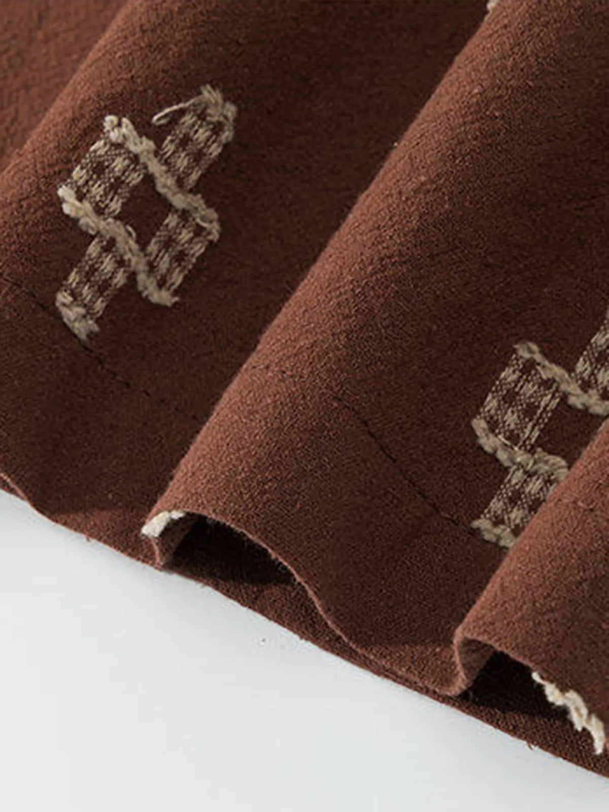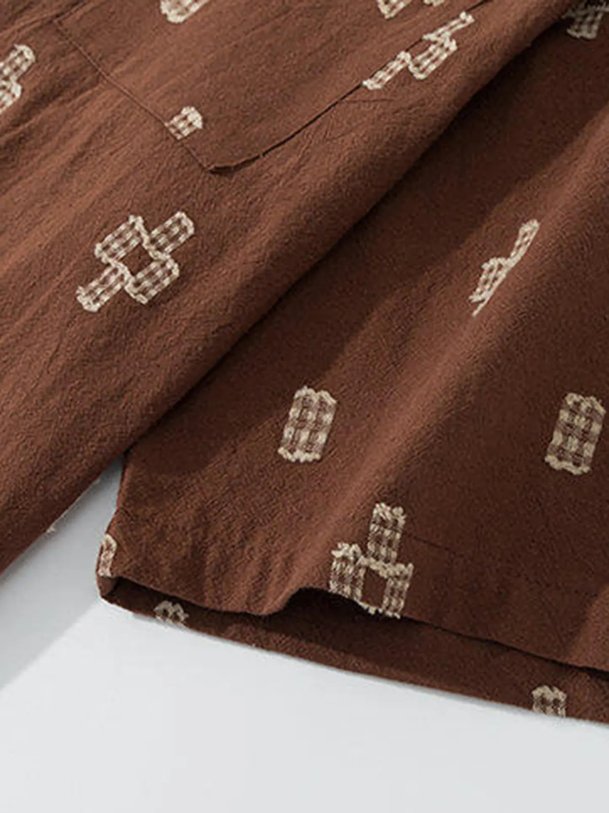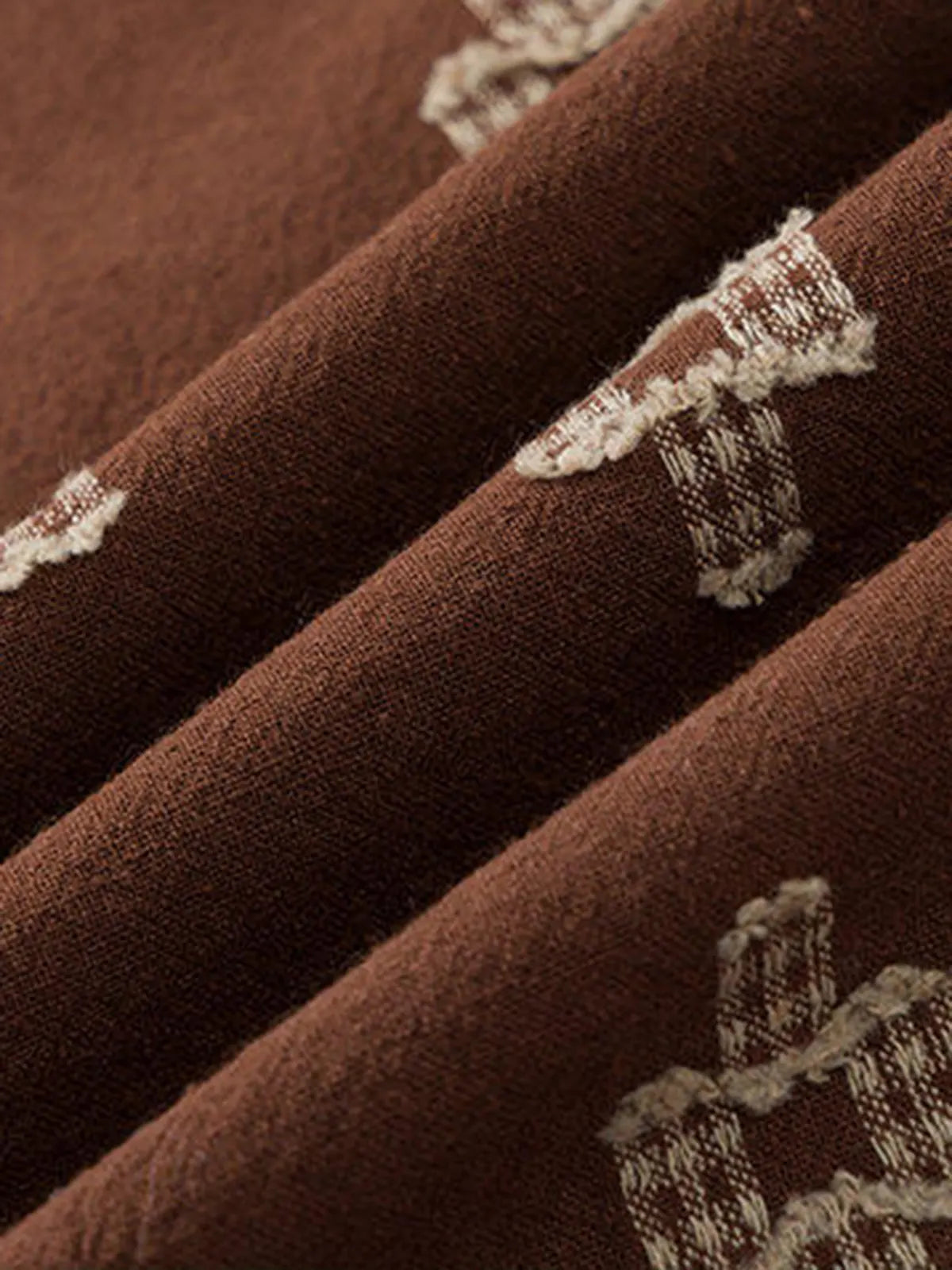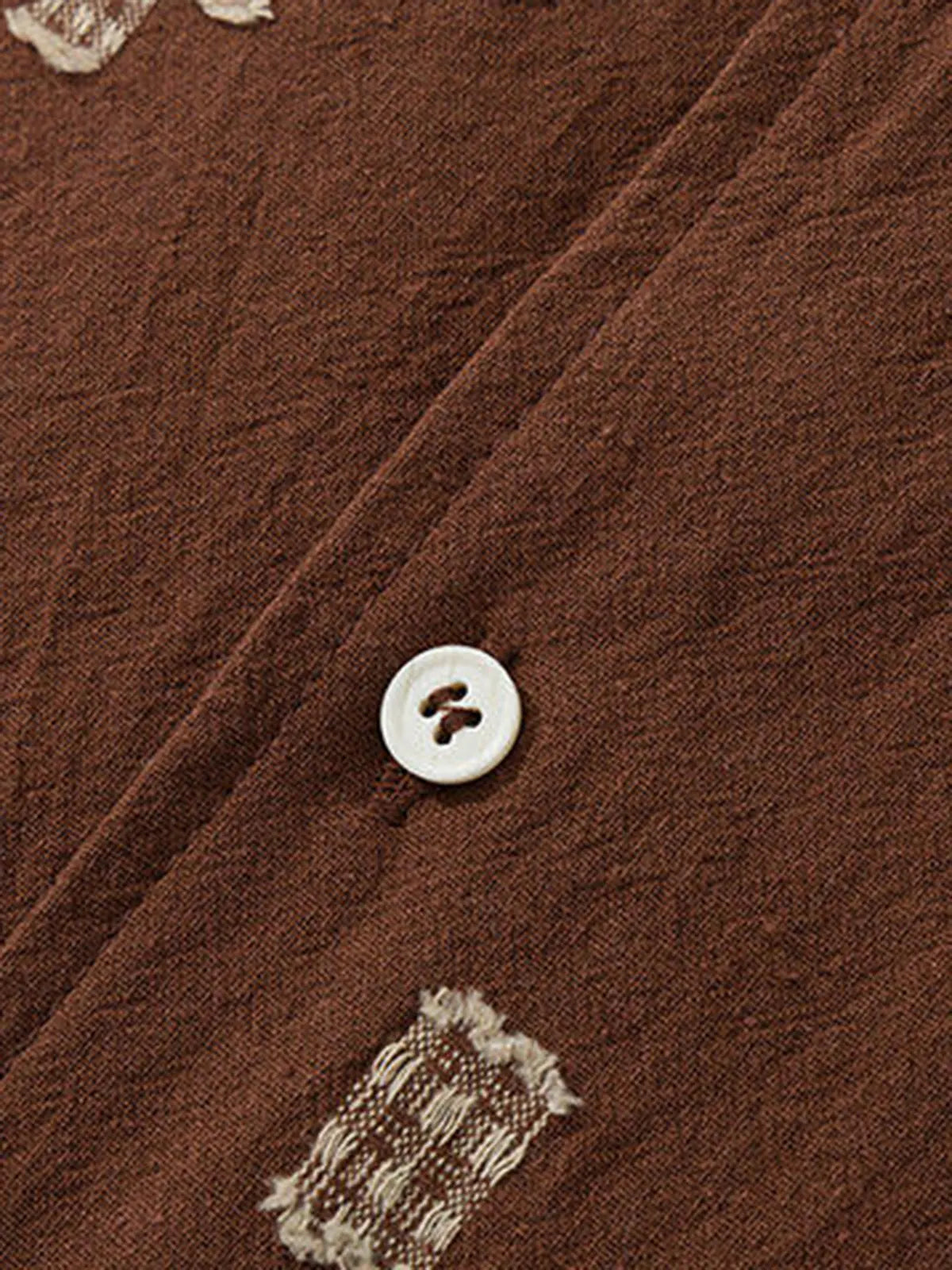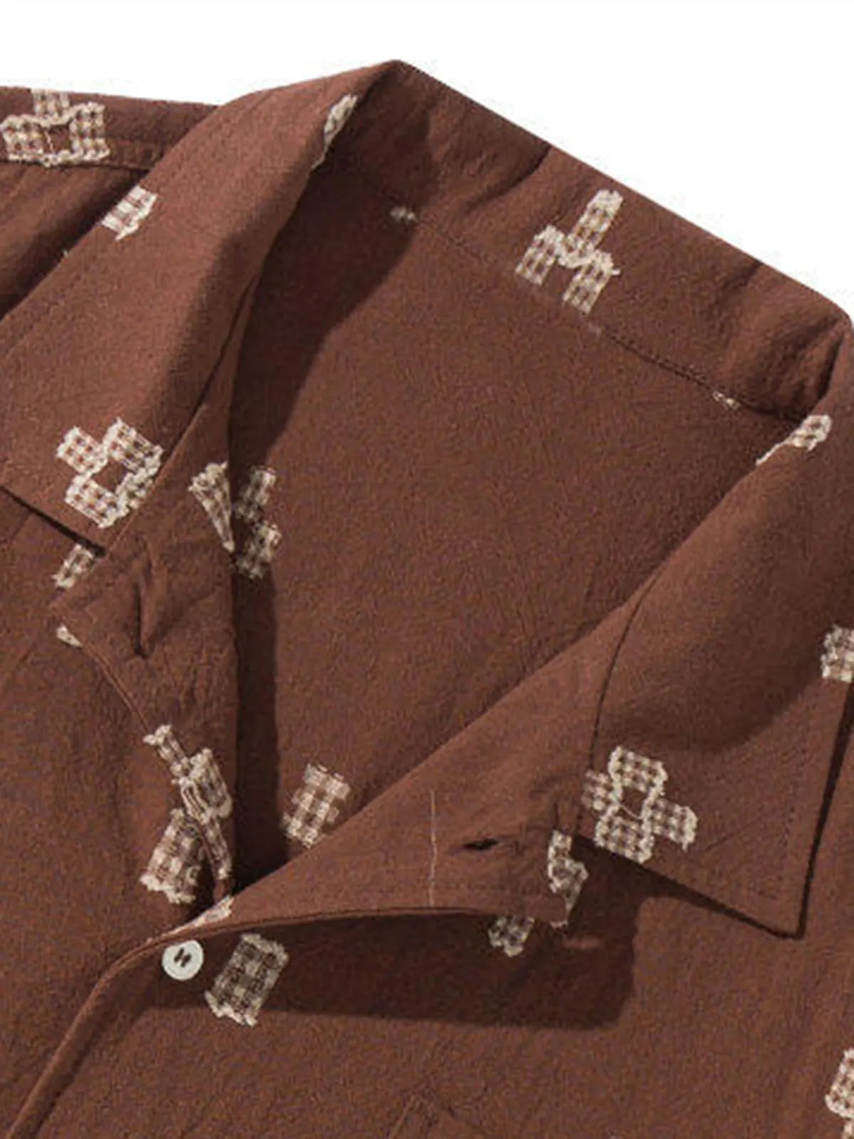 大胆なクロス刺繍が映える、リラックス感あふれるオープンカラーシャツ。