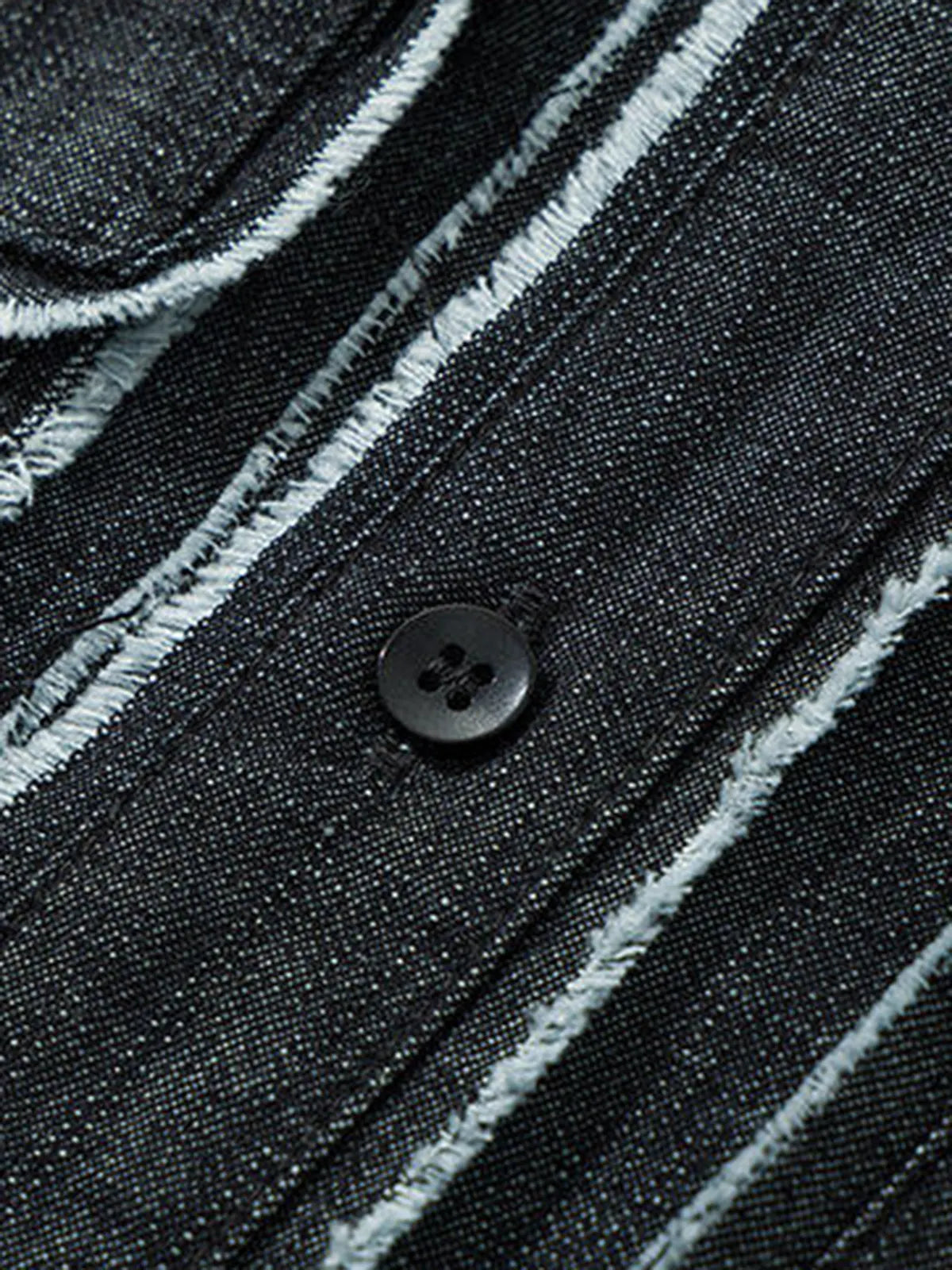 85%コットン×15%ポリエステルのデニム生地をヴィンテージライクにウォッシュし、ほつれた縁取りを施したゆったりシルエットの夏用半袖シャツ。