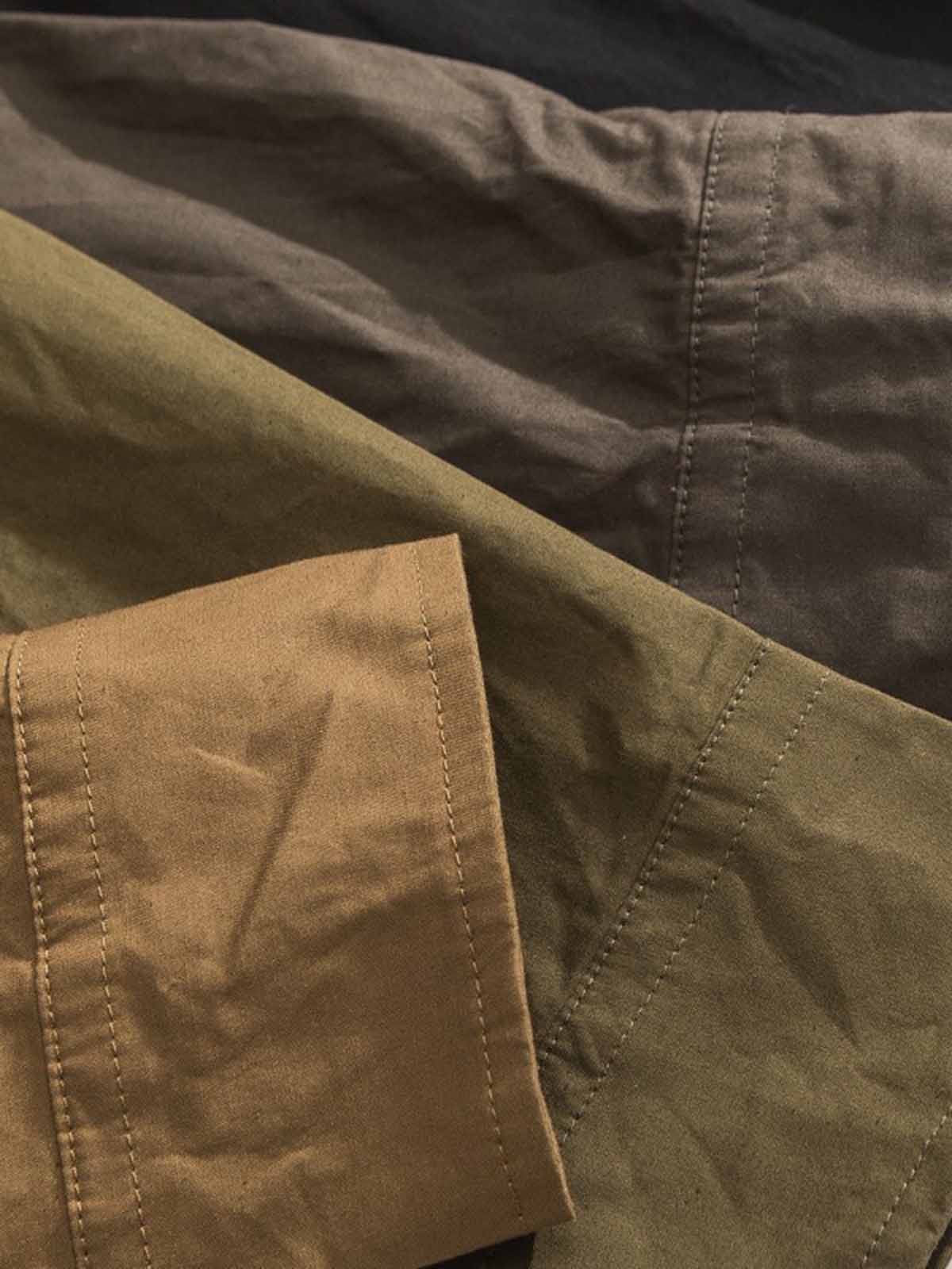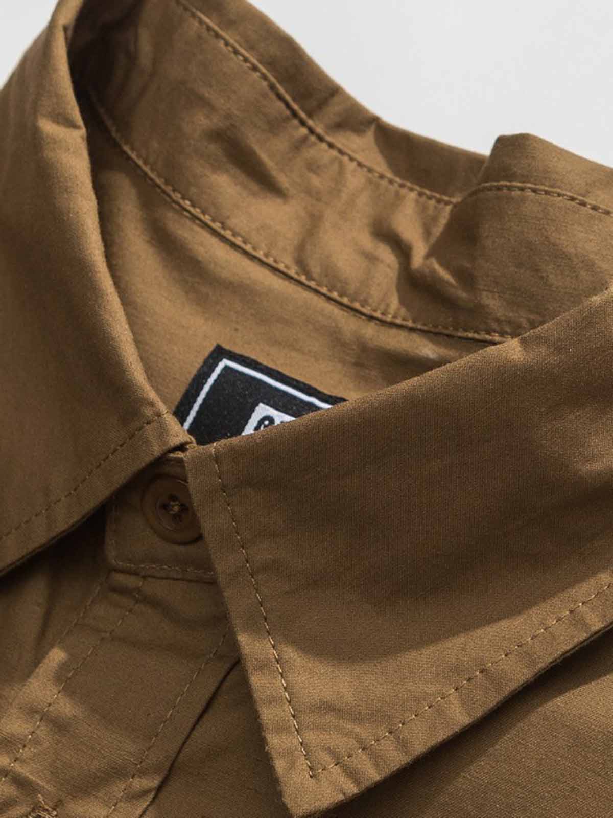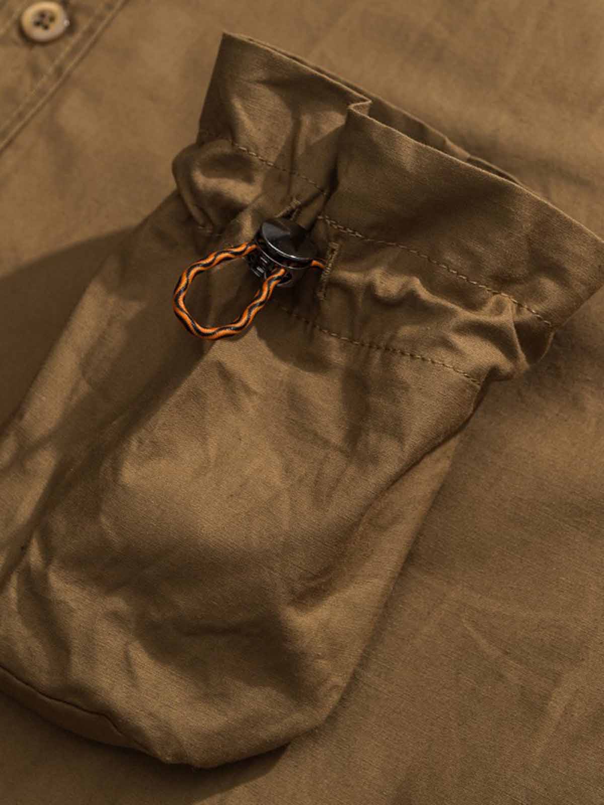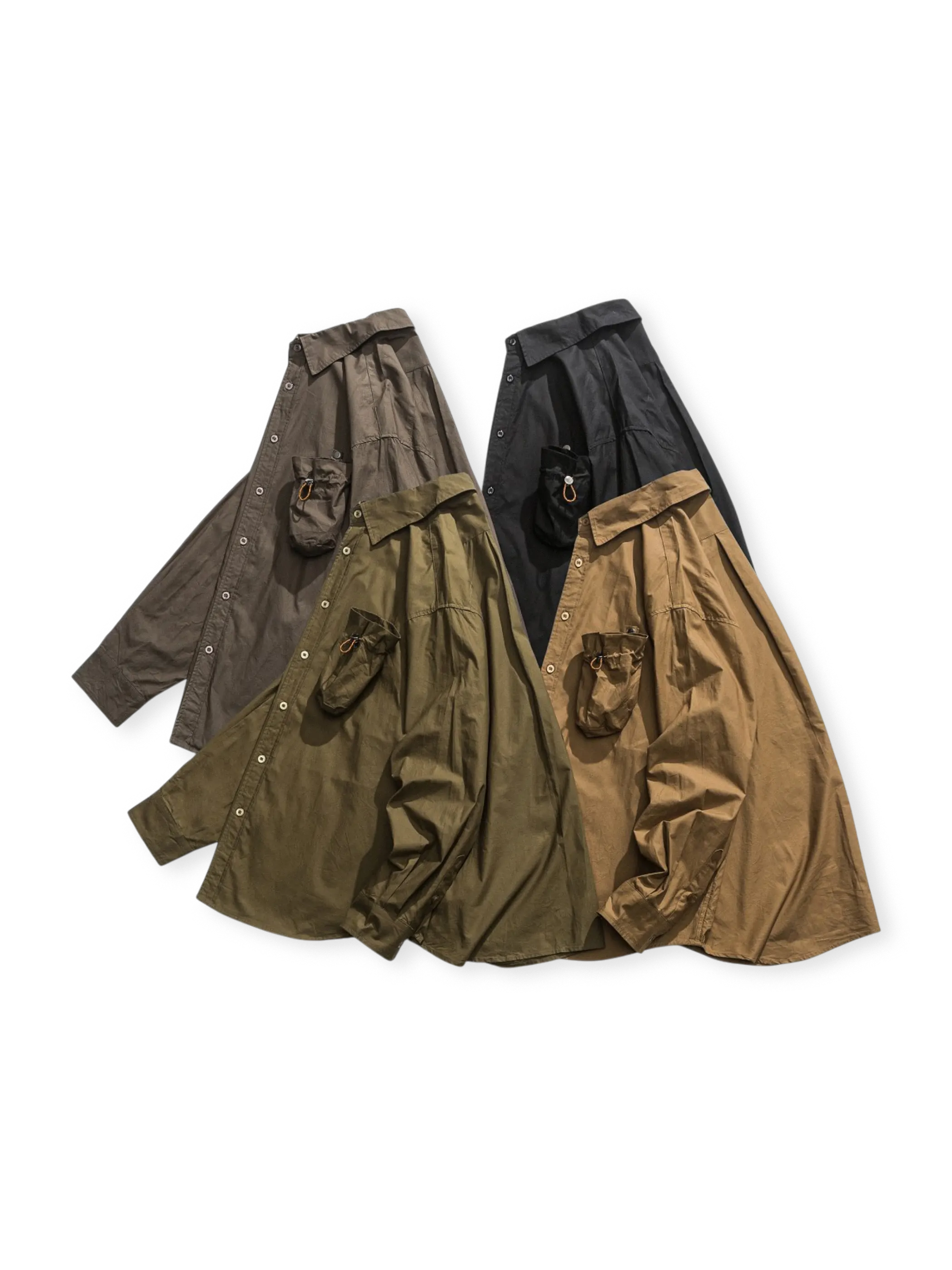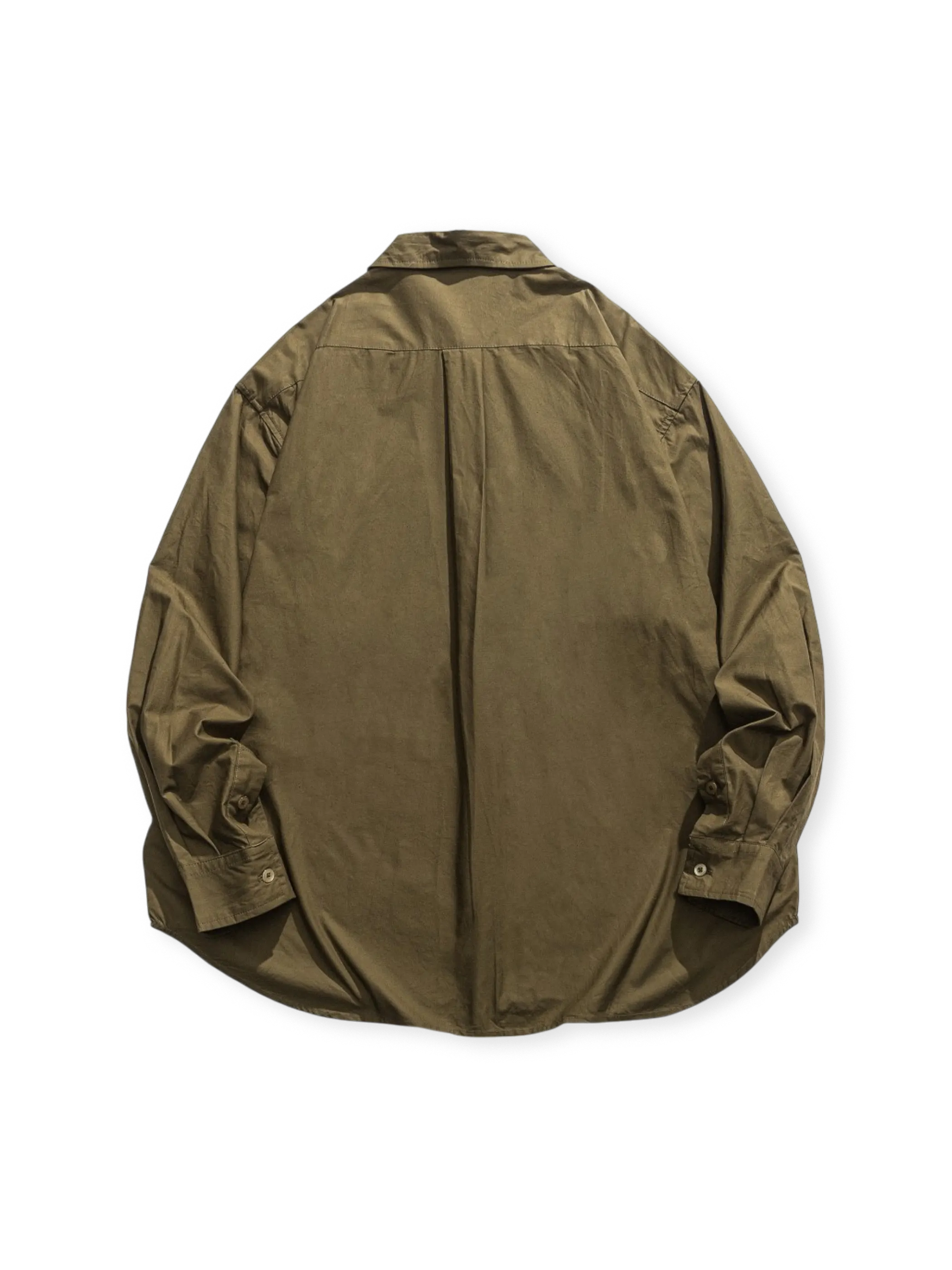 ゆったりとしたシルエットと収納機能が際立つ、シンプルでヴィンテージ感のあるワークシャツ。