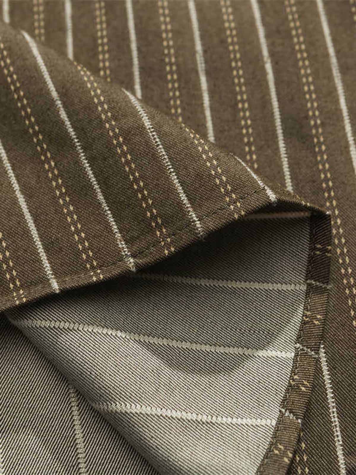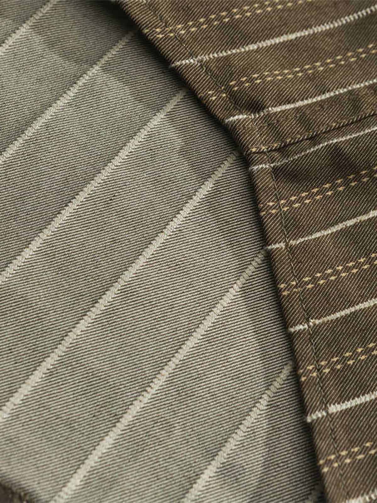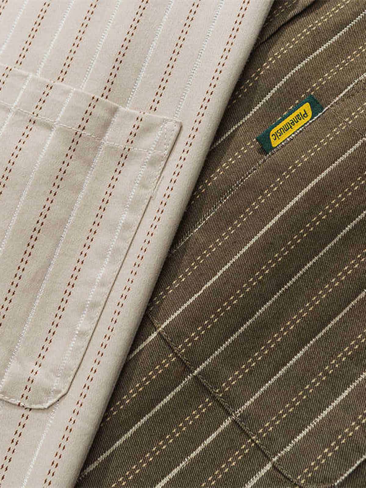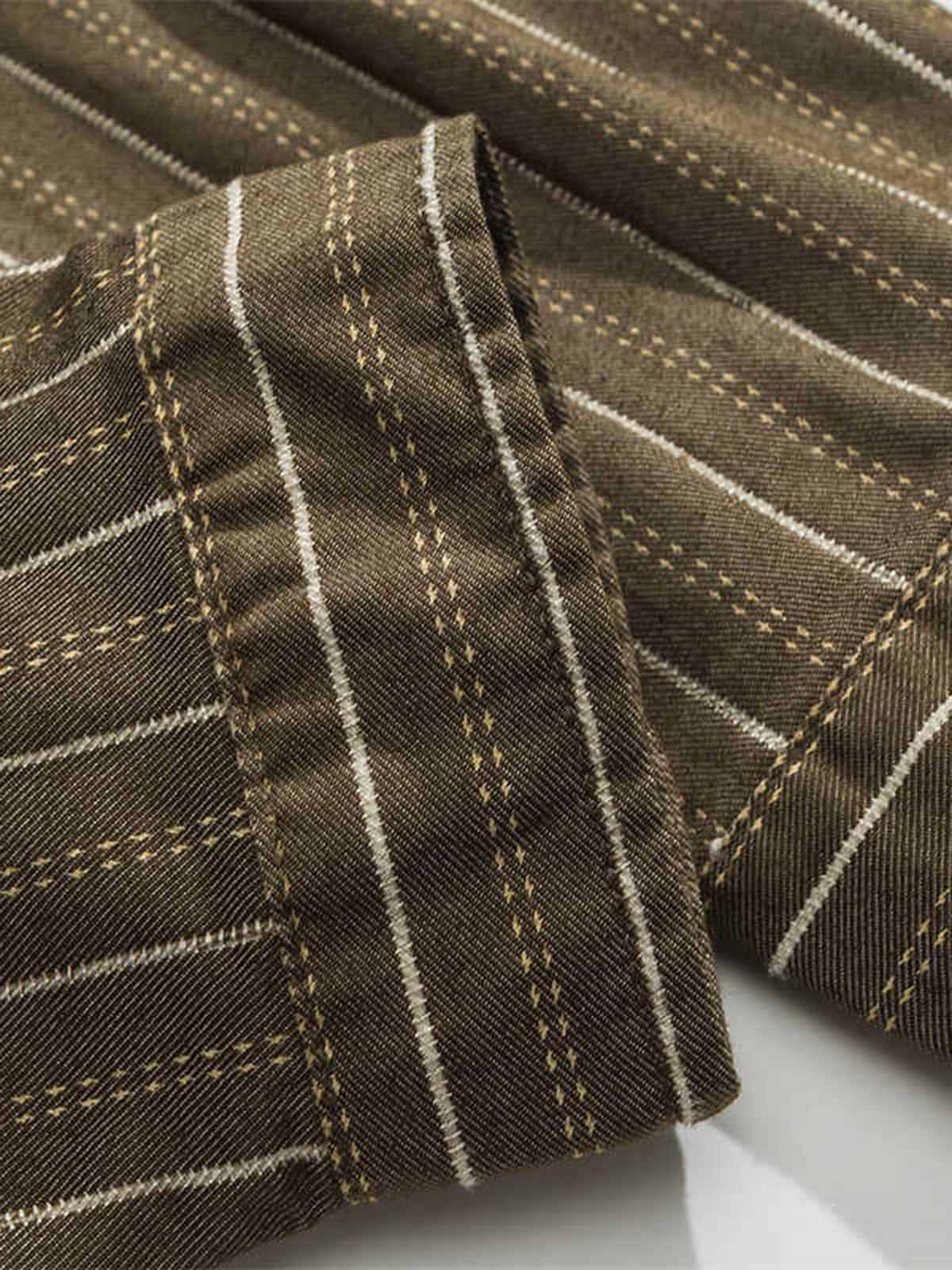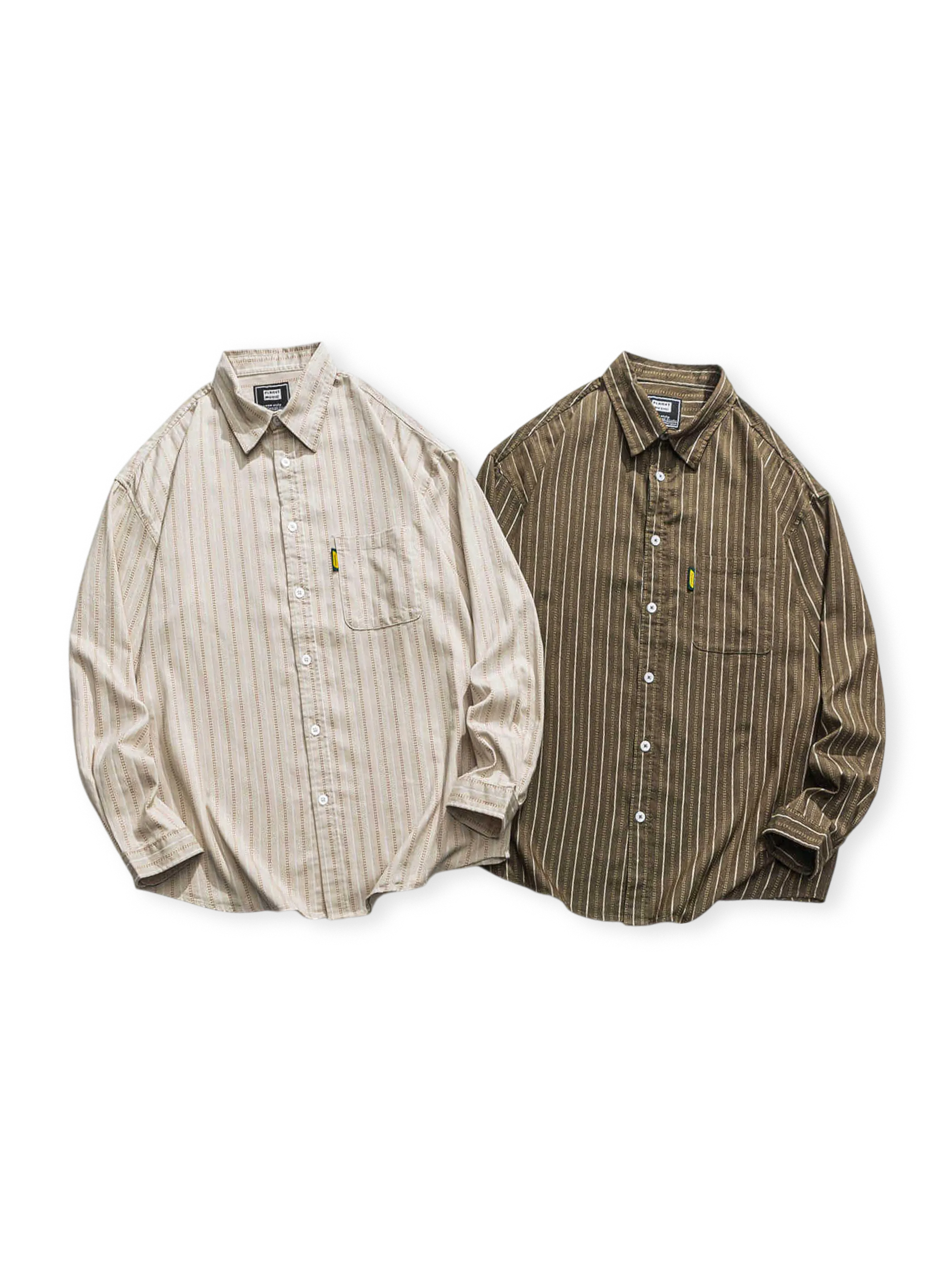 軽量ストレッチストライプ生地とルーズシルエットで、シティボーイスタイルを象徴するレトロロングスリーブシャツ。