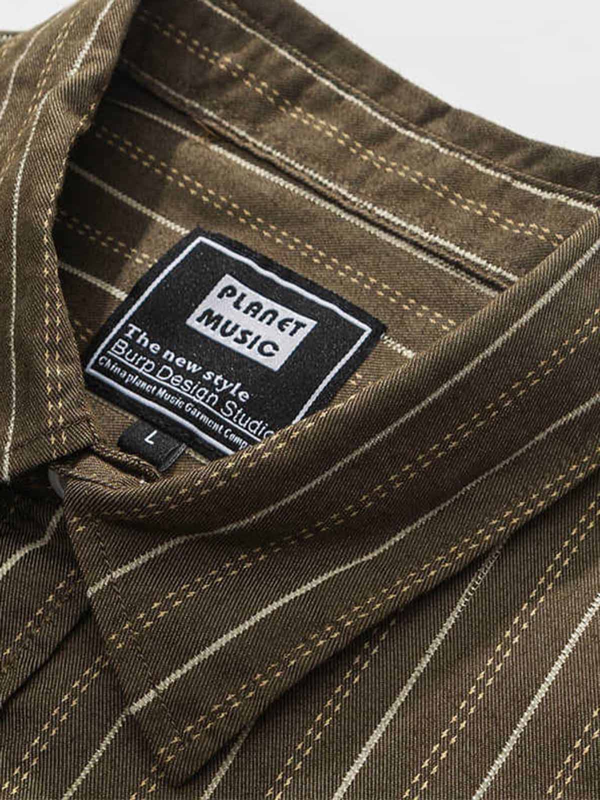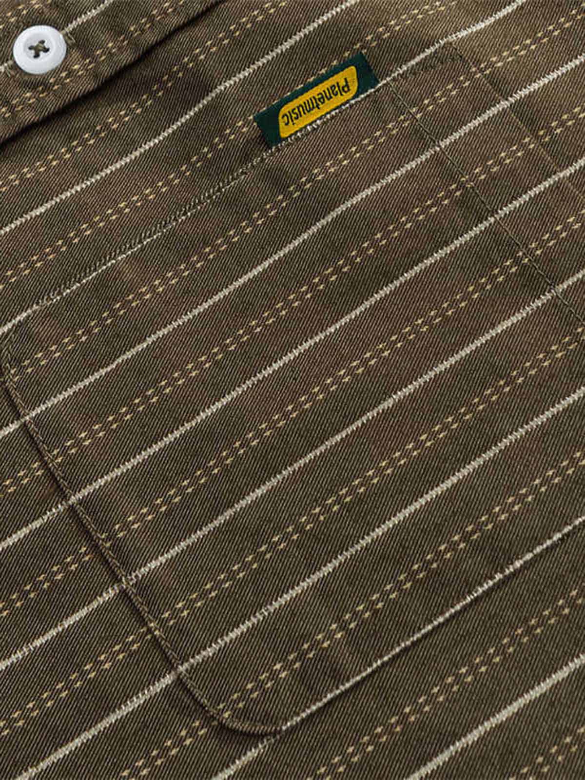 柔らかくストレッチ性のあるストライプ生地(綿65%+ポリエステル33%+スパンデックス2%)を採用。レトロなビジュアルを保ちつつ、日常動作の快適性を確保。ボタンダウンネックとチェストポケットでシティボーイの洗練さを演出。デニムやワイドパンツとの組み合わせで、カジュアルとトレンド感を両立。ユニバーサルなルーズフィット設計で体型を選ばず、オフィスカジュアルからストリートコーデまで幅広く対応。