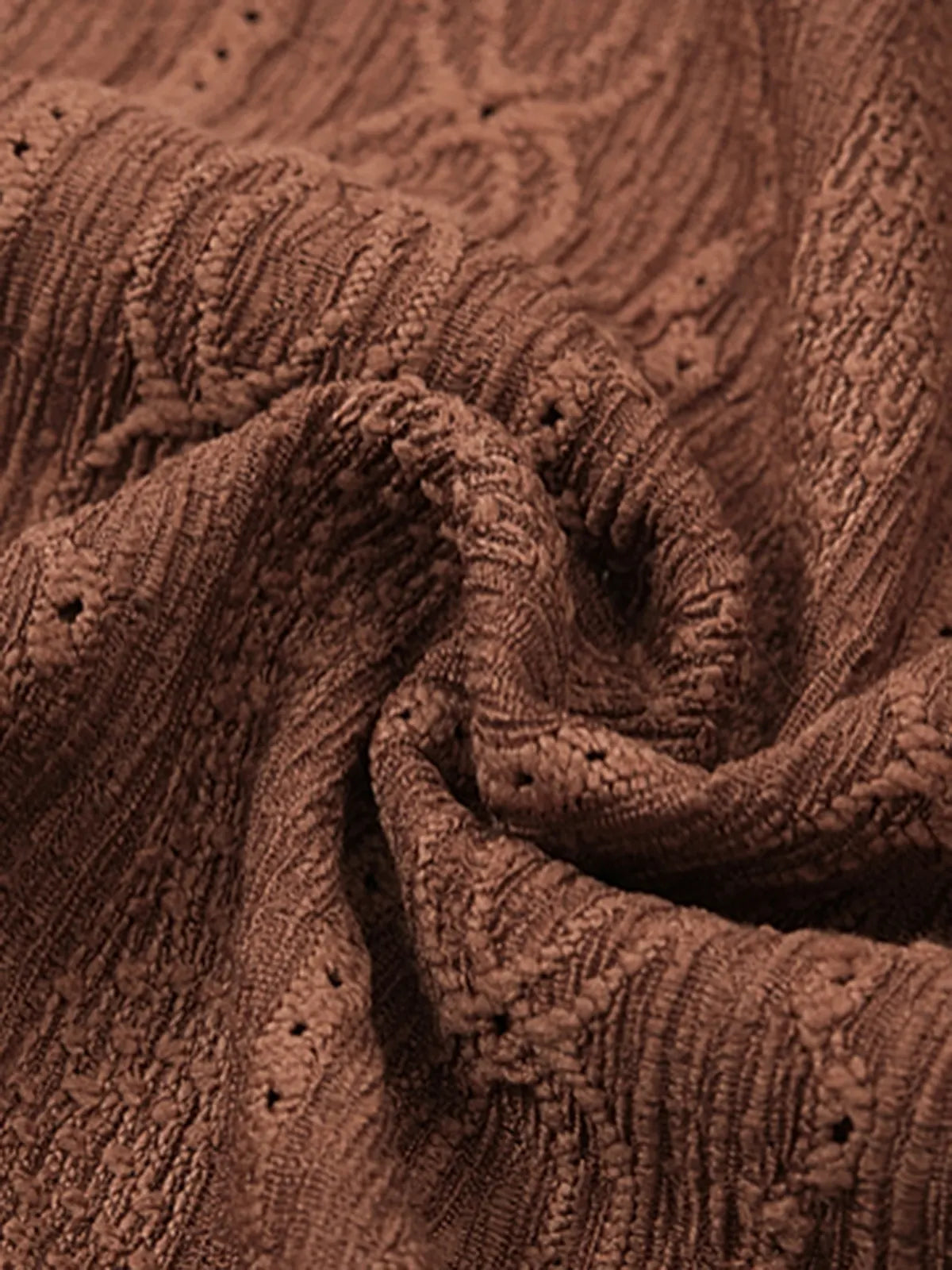 微細なジャカード織りが生む陰影と上品なドレープが、日常に洗練されたヴィンテージムードを添える一着です。