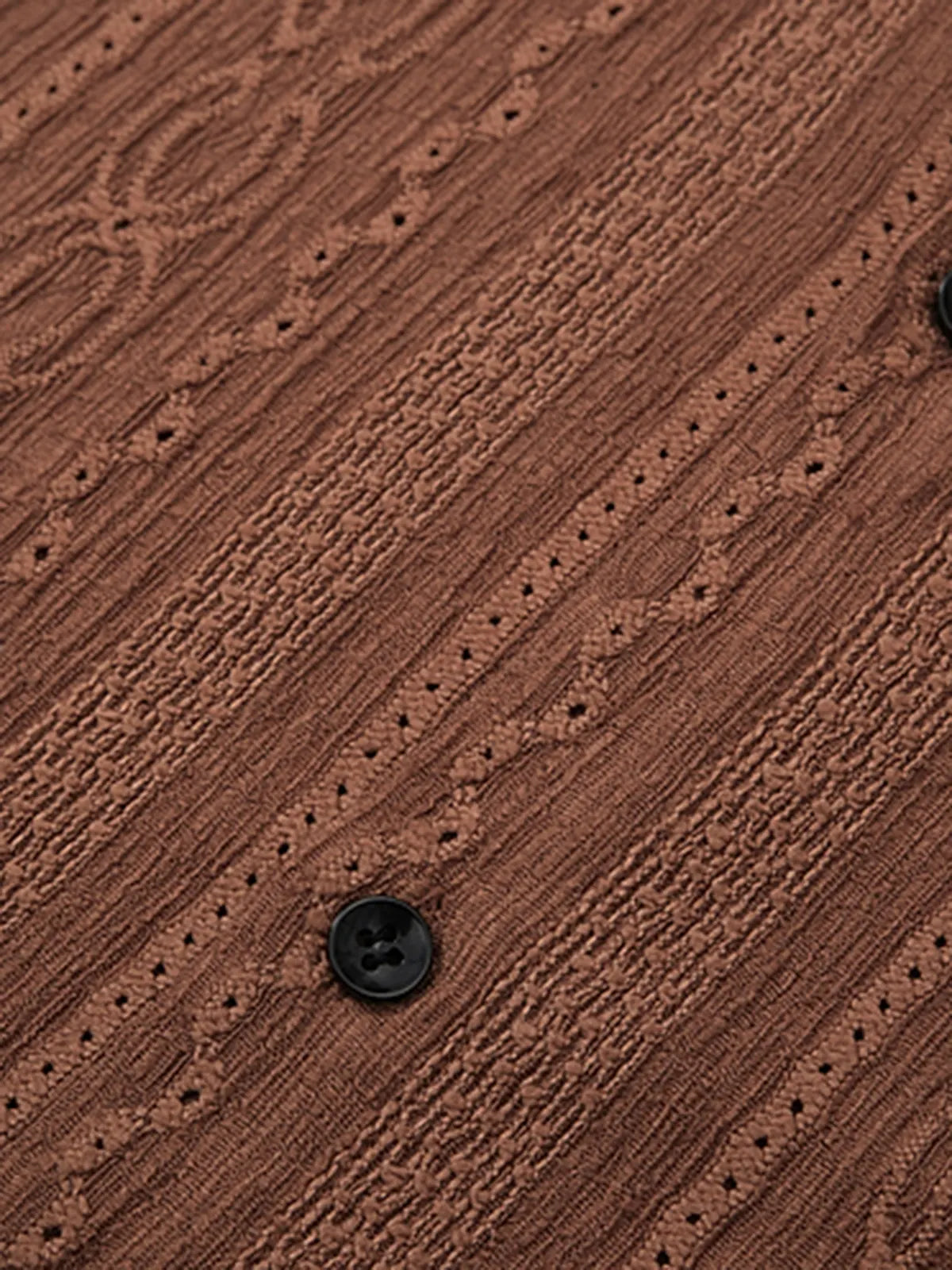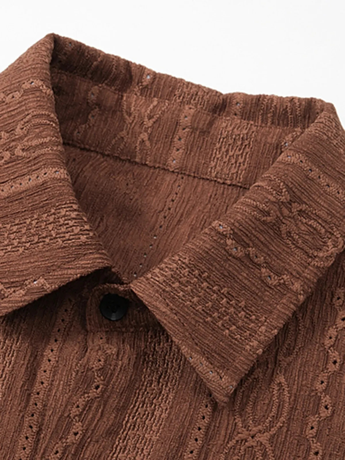 透かしジャカード織りの小紋パターンは1970年代の地中海リゾートシャツに着想を得つつ、現代的にミニマルに再構築。軽量ポリエステルが生むナチュラルな落ち感と微細な凹凸が光を受けて陰影を描き、胸ポケットのないクリーンなボックスシルエットはデニムやチノ、リネンパンツとも相性抜群。アロハシャツやクラブシャツの要素を取り入れたデザインは、夏のカジュアルからドレスダウンシーンまで幅広く活躍し、着るたびにヴィンテージの情緒を楽しめます。