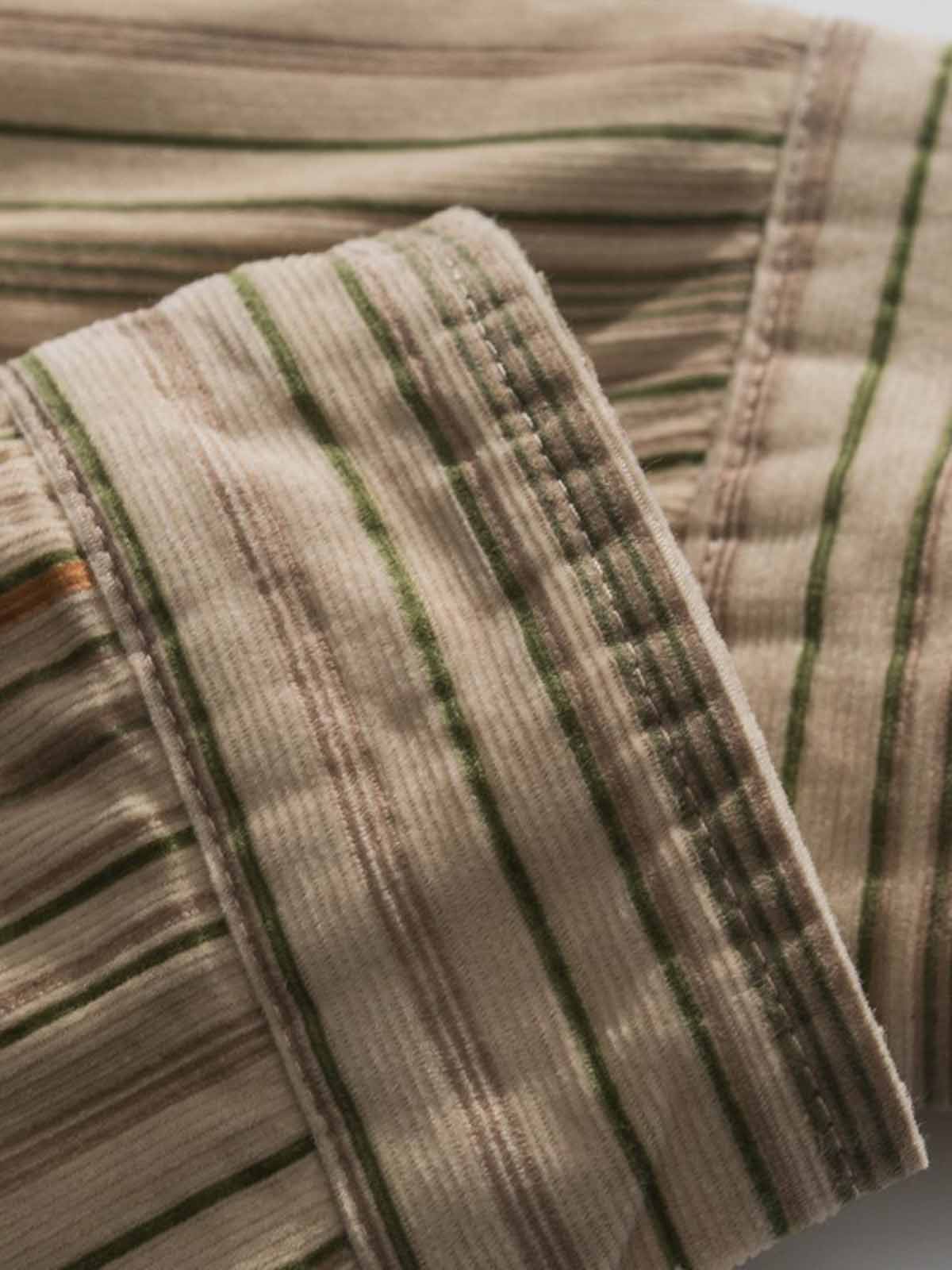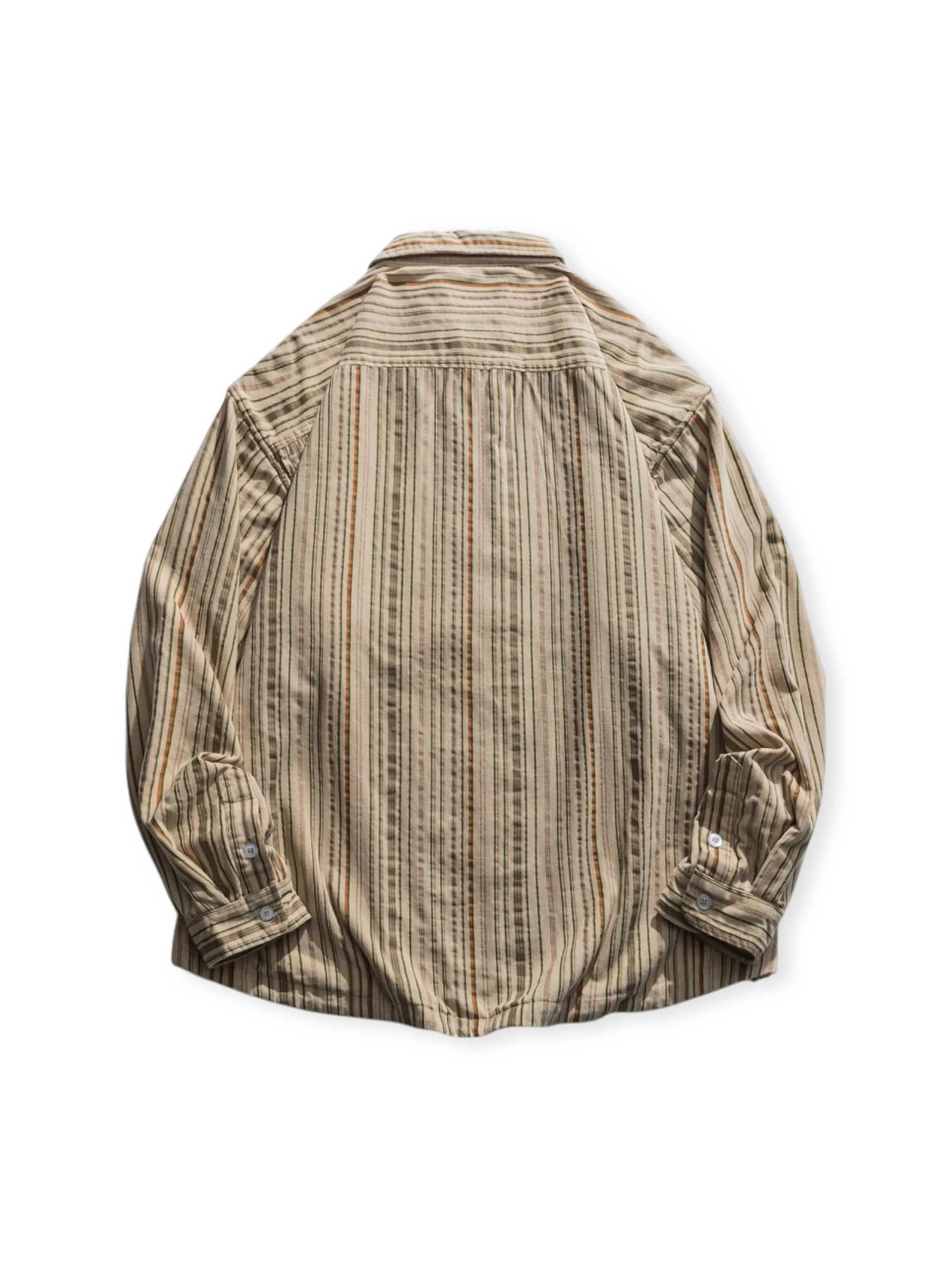 ヴィンテージストライプと暖かなフリース素材を融合した、肌寒い季節でもスタイリッシュで快適に着られるシャツ。