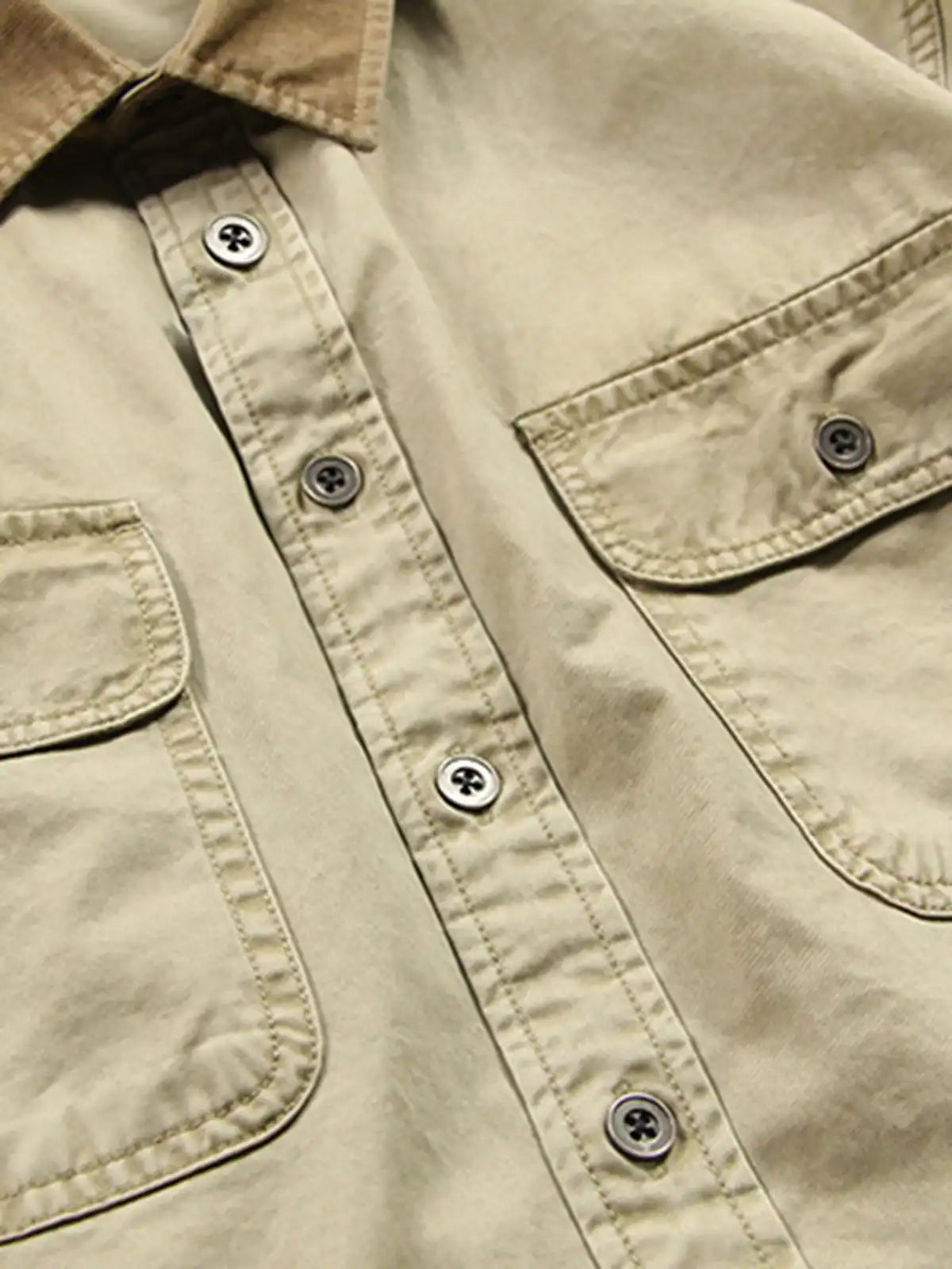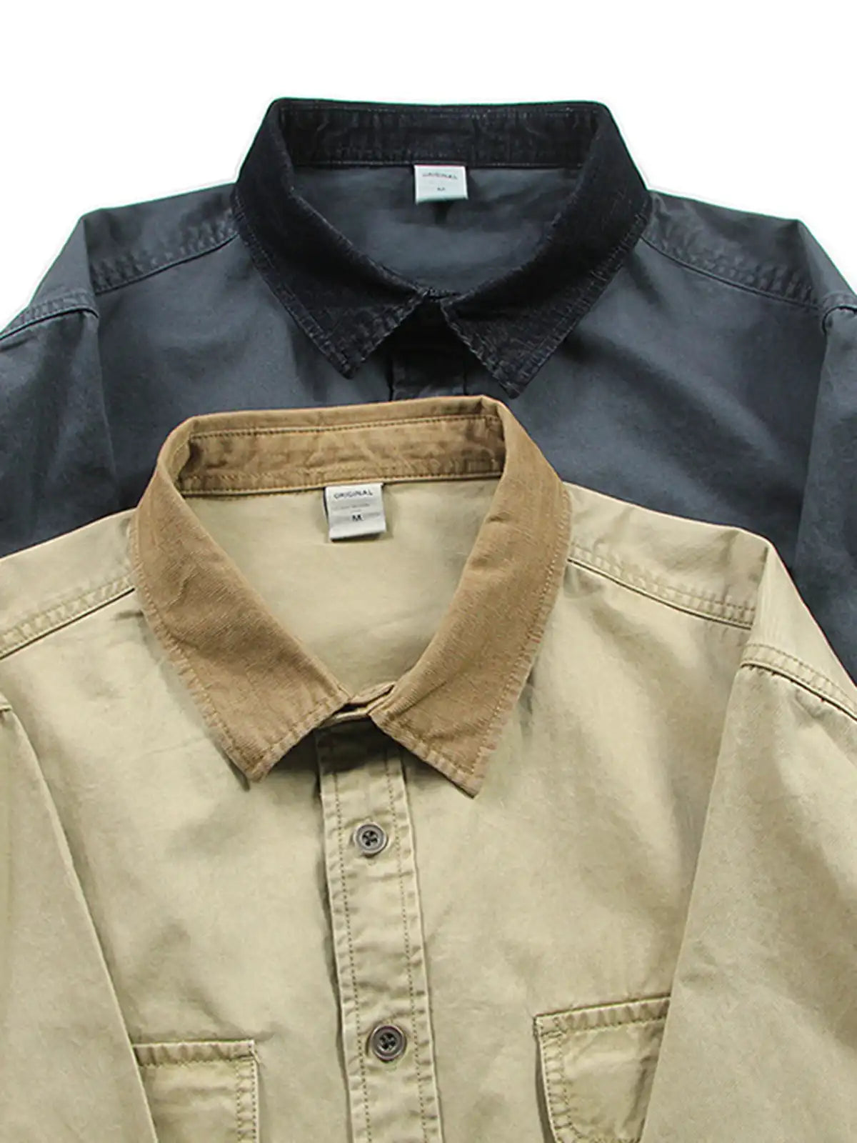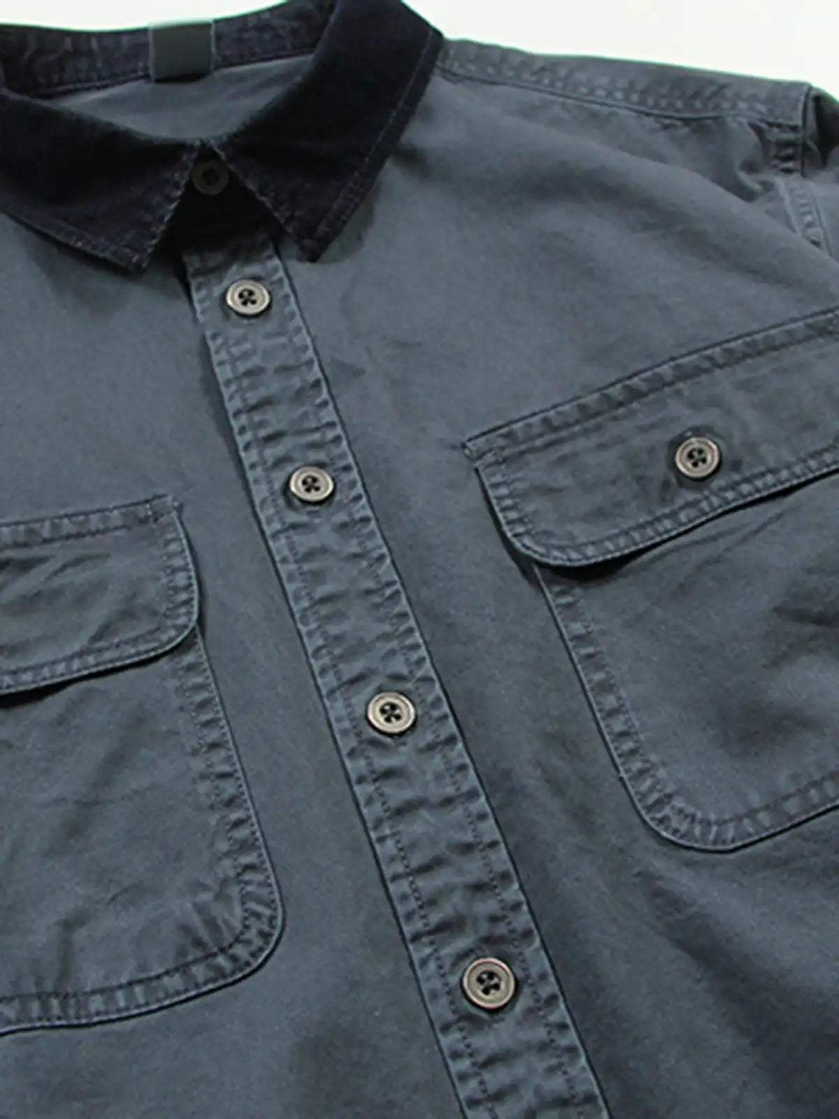 デトロイト発祥のワークシャツを現代的に再解釈し、襟のコーデュロイ切り替えで個性を効かせた一着。