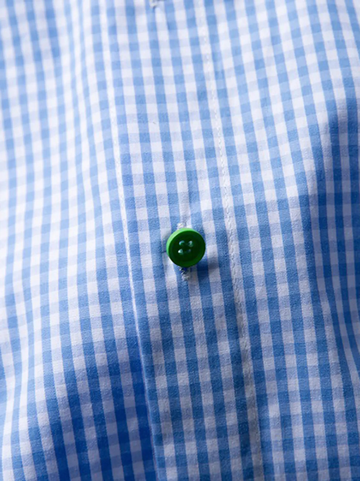 伝統的なギンガムチェックをベースに、各ボタンをピンク・グリーン・イエロー・レッドなどのカラフルな配色で仕立てた遊び心溢れるデザインが印象的。胸ポケットにはジップを内蔵しており、スマートフォンや財布などの小物を安心して収納できる実用性を確保。100%ポリエステル素材は速乾性と軽快な着心地を備えつつ、清涼感のあるハリと適度なドレープが夏のコーディネートを格上げ。ワイドフィットのボックスシルエットはレイヤードに最適で、ショーツやワイドパンツと合わせるだけでゆったりとしたリラックスムードを楽しめる。